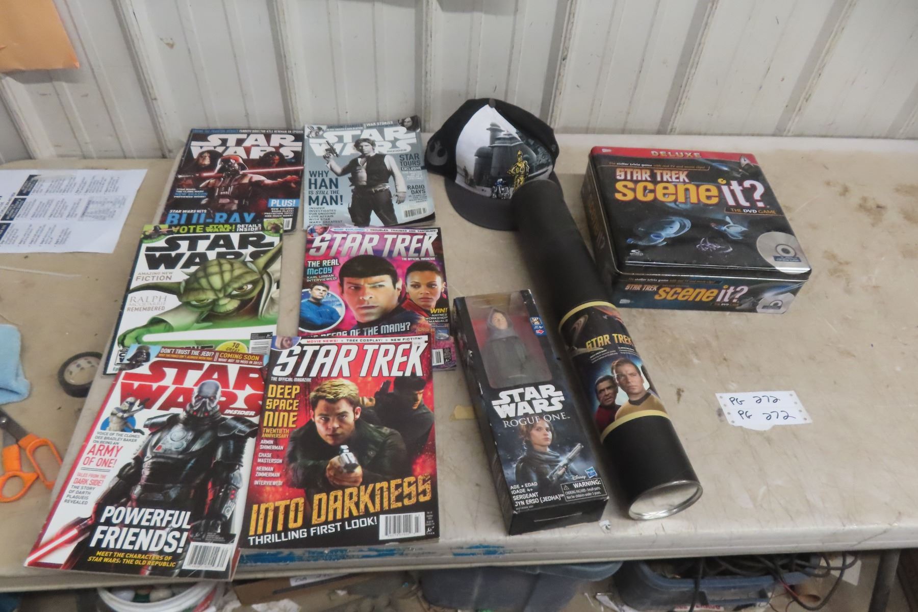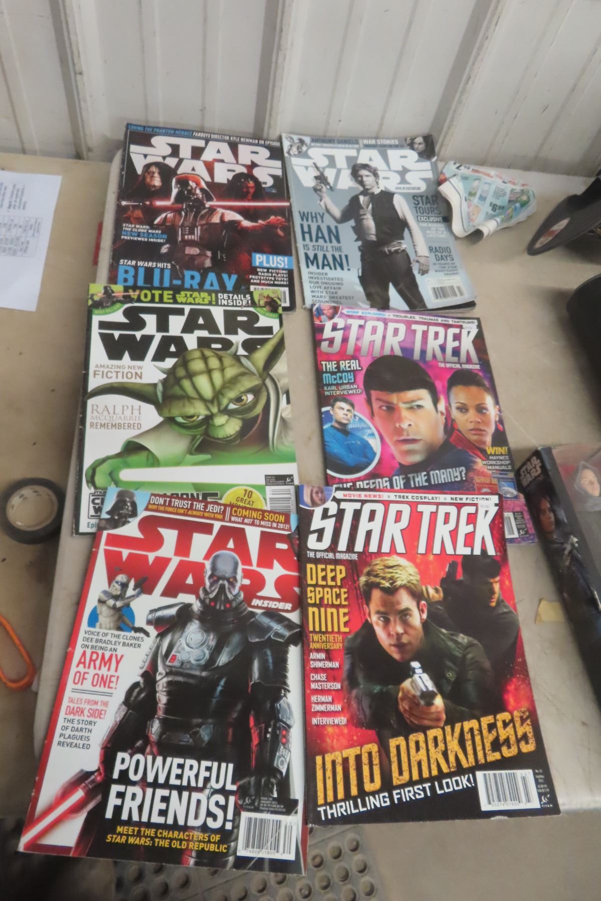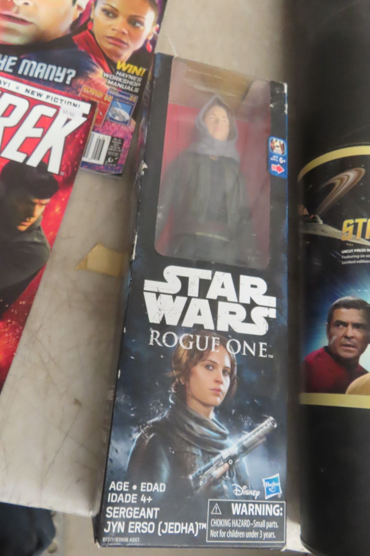 Star Wars Figurine in Box, Hat, Magazines, Star Trek Game and Poster