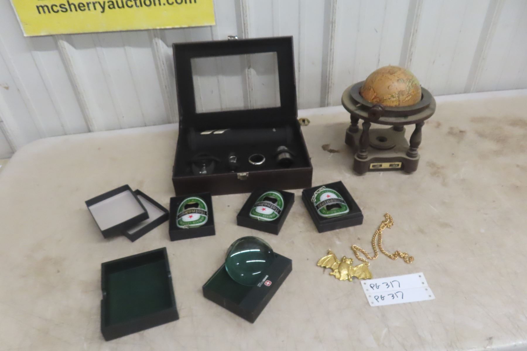 Globe Transistor Radio , Oster Mixer, Magnified Glass, Bottle Opener