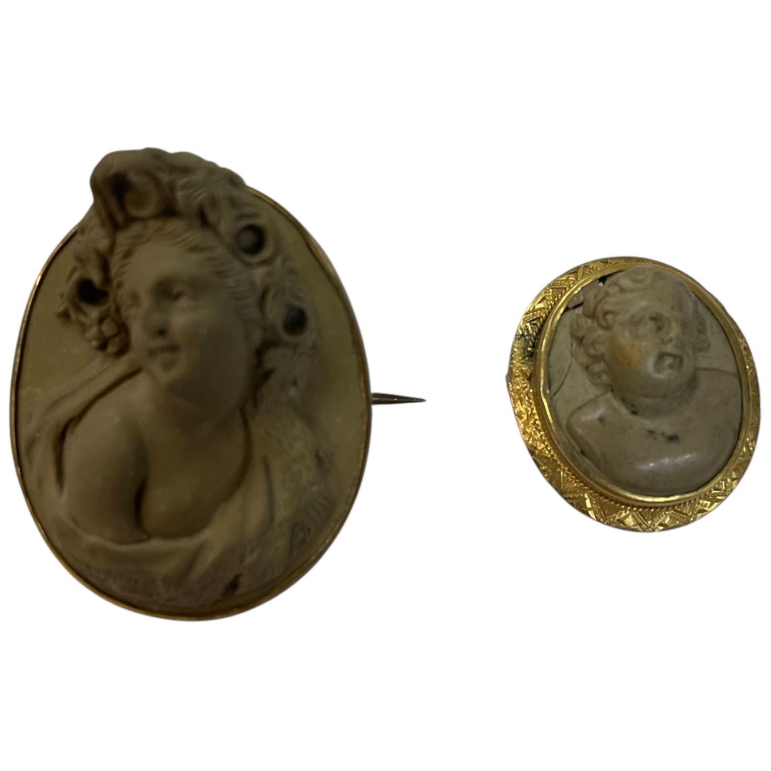 Lot 160g 2 Antique Victorian Lava Cameo Brooches * The larger brooch is 15 x 27 x 32 mm