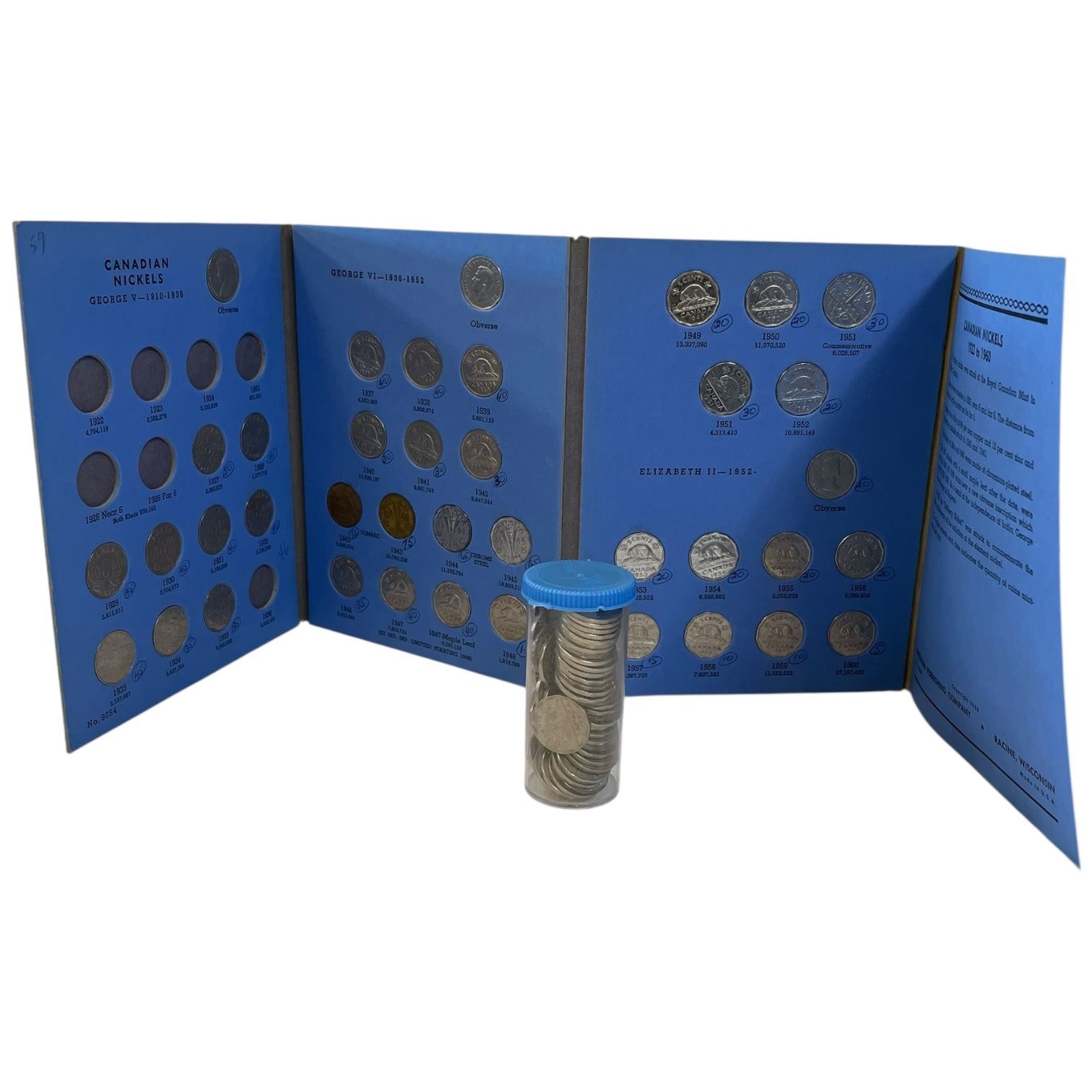 1 Canadian & Tube of 40+ Canadian Nickles from 1930s to 1950s (majority are 1940s)