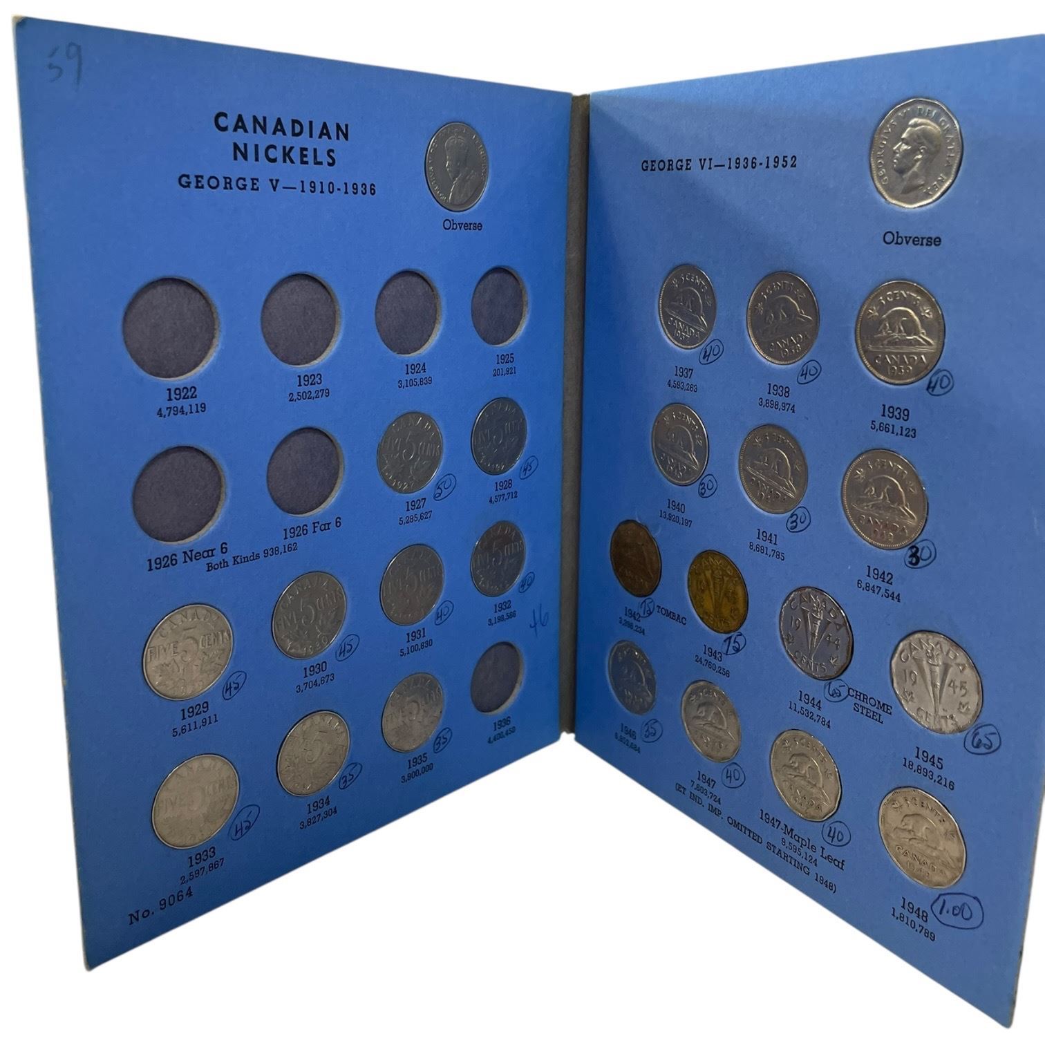 Lot 160j 1 Canadian & Tube of 40+ Canadian Nickles from 1930s to 1950s (majority are 1940s)