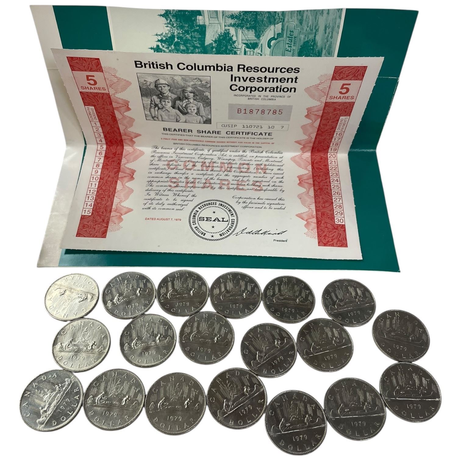 1979 BRIC Share and 20 Canadian 1979 One Dollar Coins