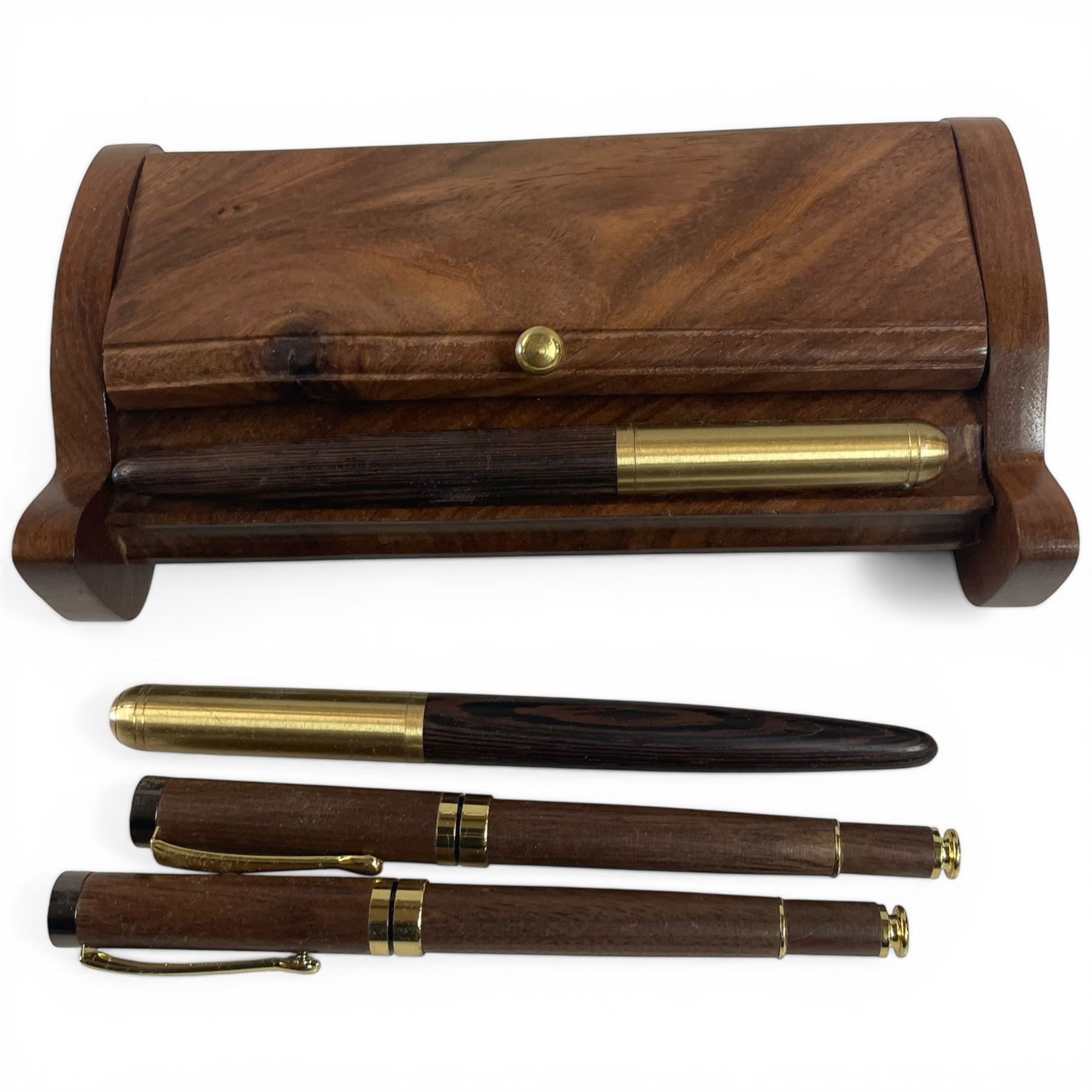 Lot 456B 7" Wood Inkwell with 4 Calligraphy Pens