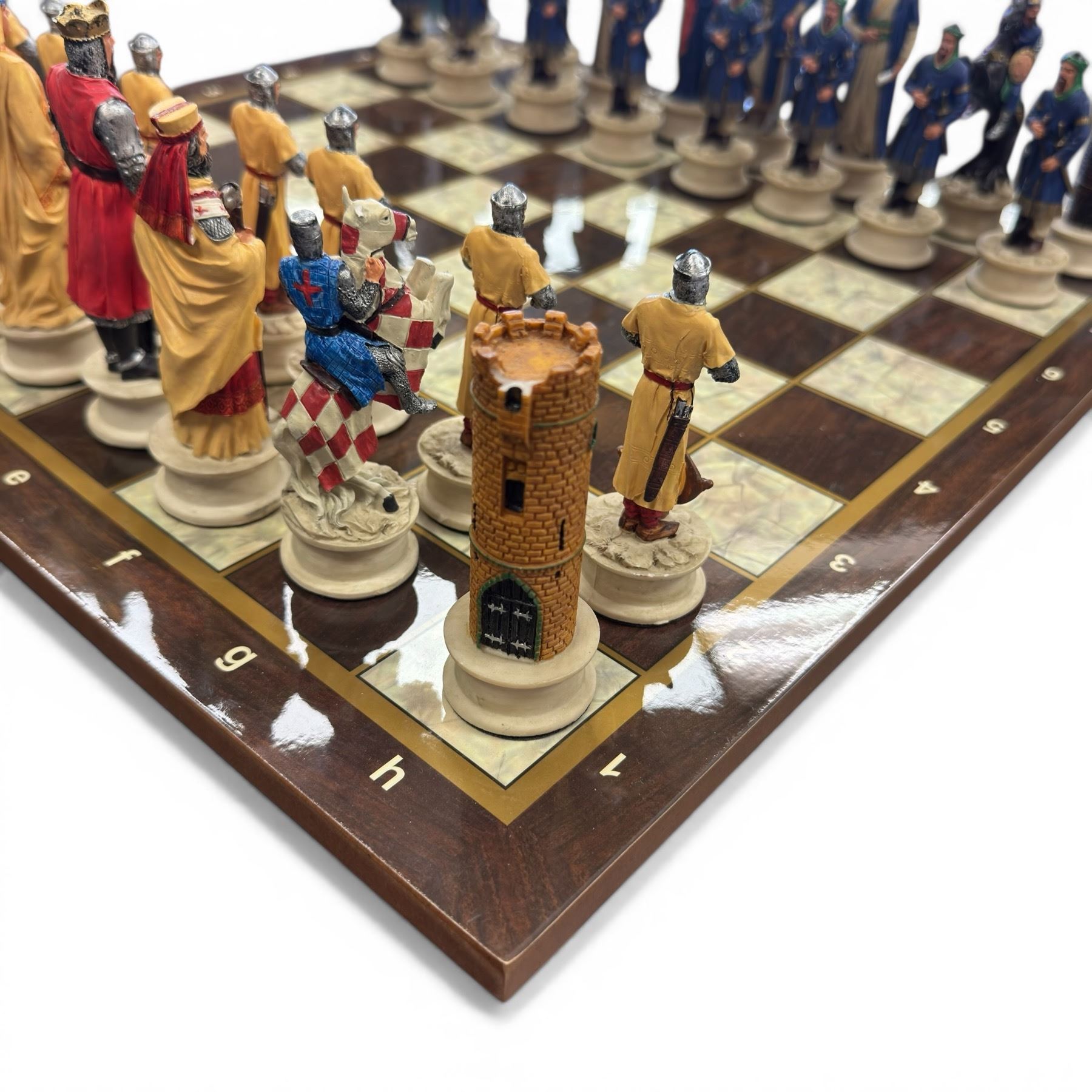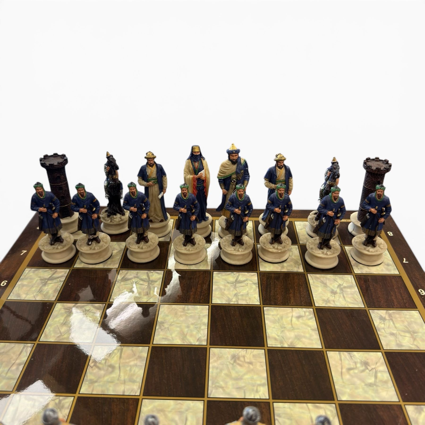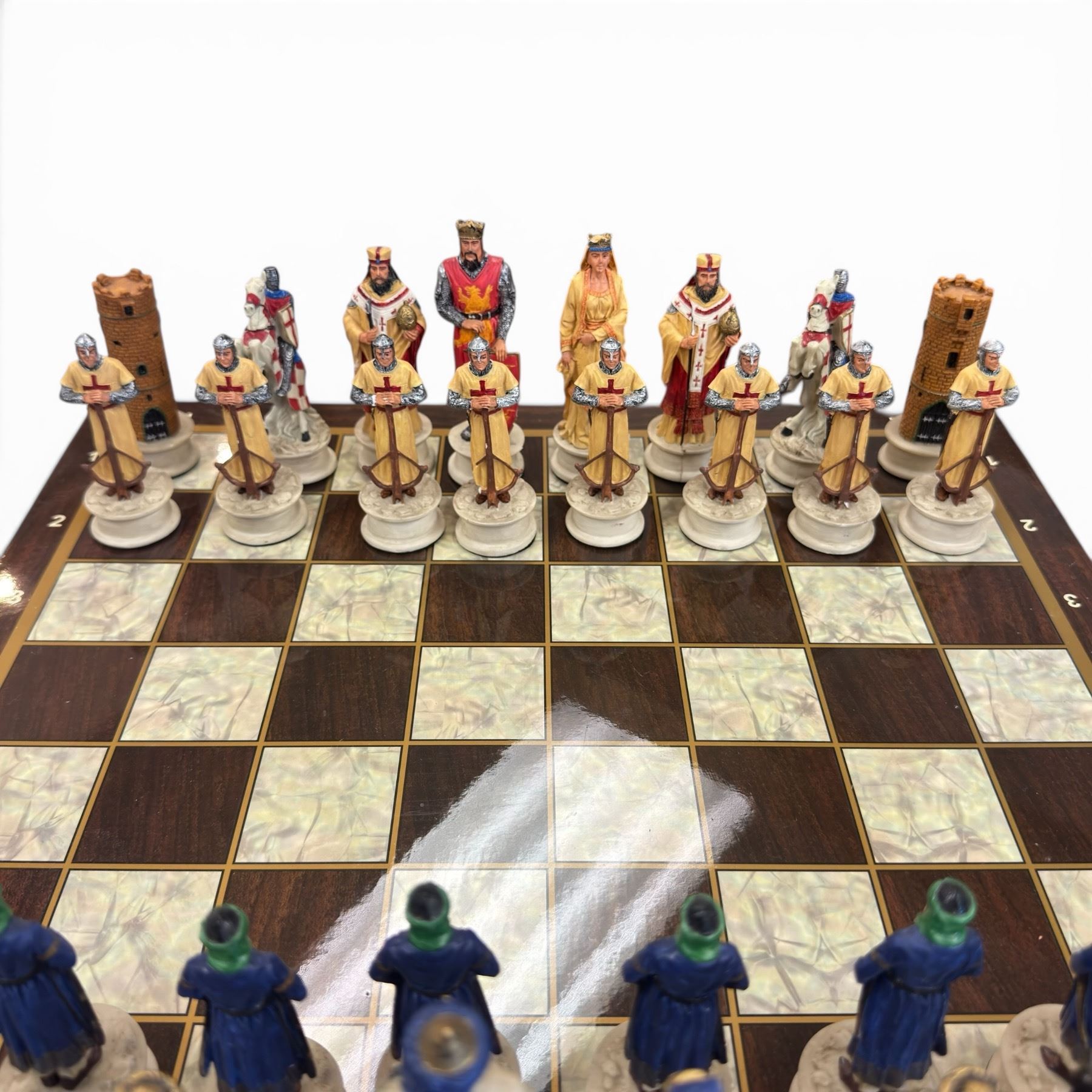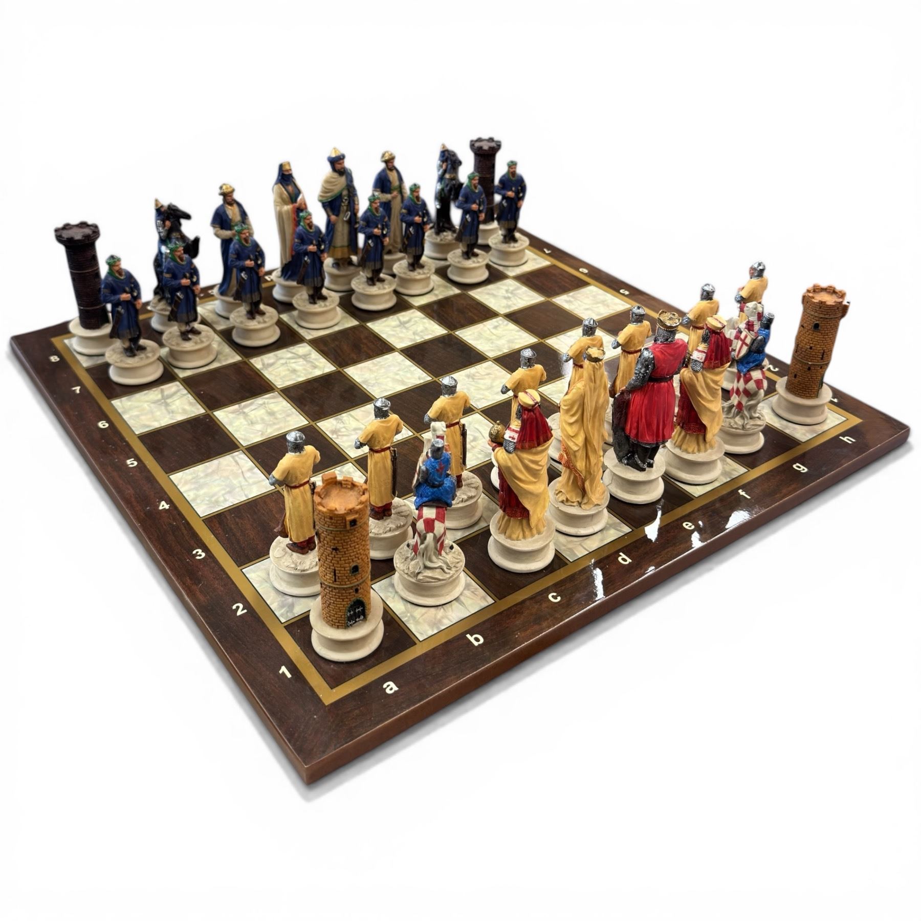Lot 456E Saladin Vs Crusaders Chess Set: Historical Resin Figures 18x18"