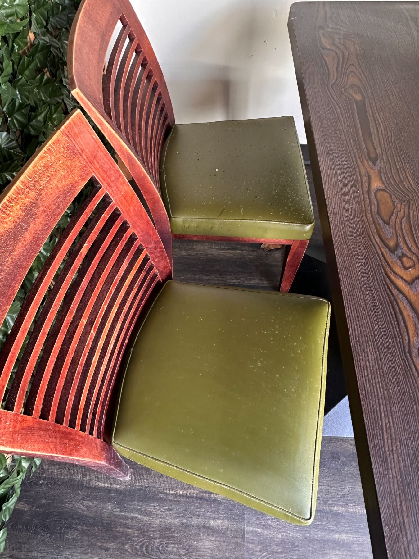 Lot 2 Rectangular Table 48" x 24" x 30"H w/ 4 Wooden Chairs w/ Slatted Backs 17" x 16" x 33.5"