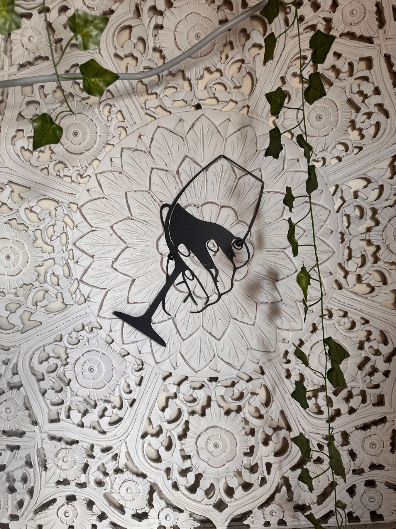 Framed Floral Cut-Out Design Panel w/ Wine Glass Motif 38" x 38"