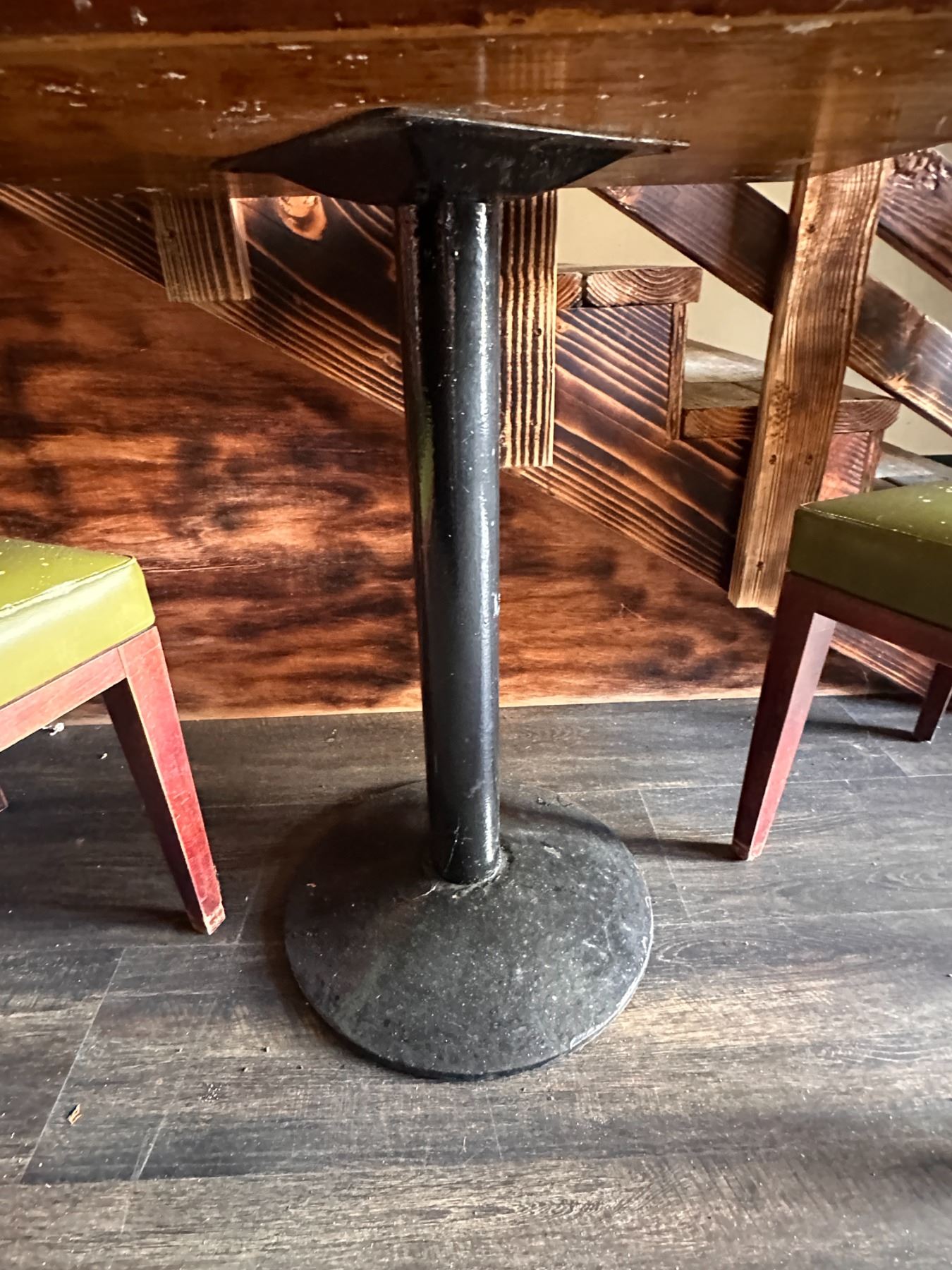 Lot 7 Rectangular Table 29" x 23" x 30"H w/ 4 Wooden Chairs w/ Slatted Backs 17" x 16" x 33.5"