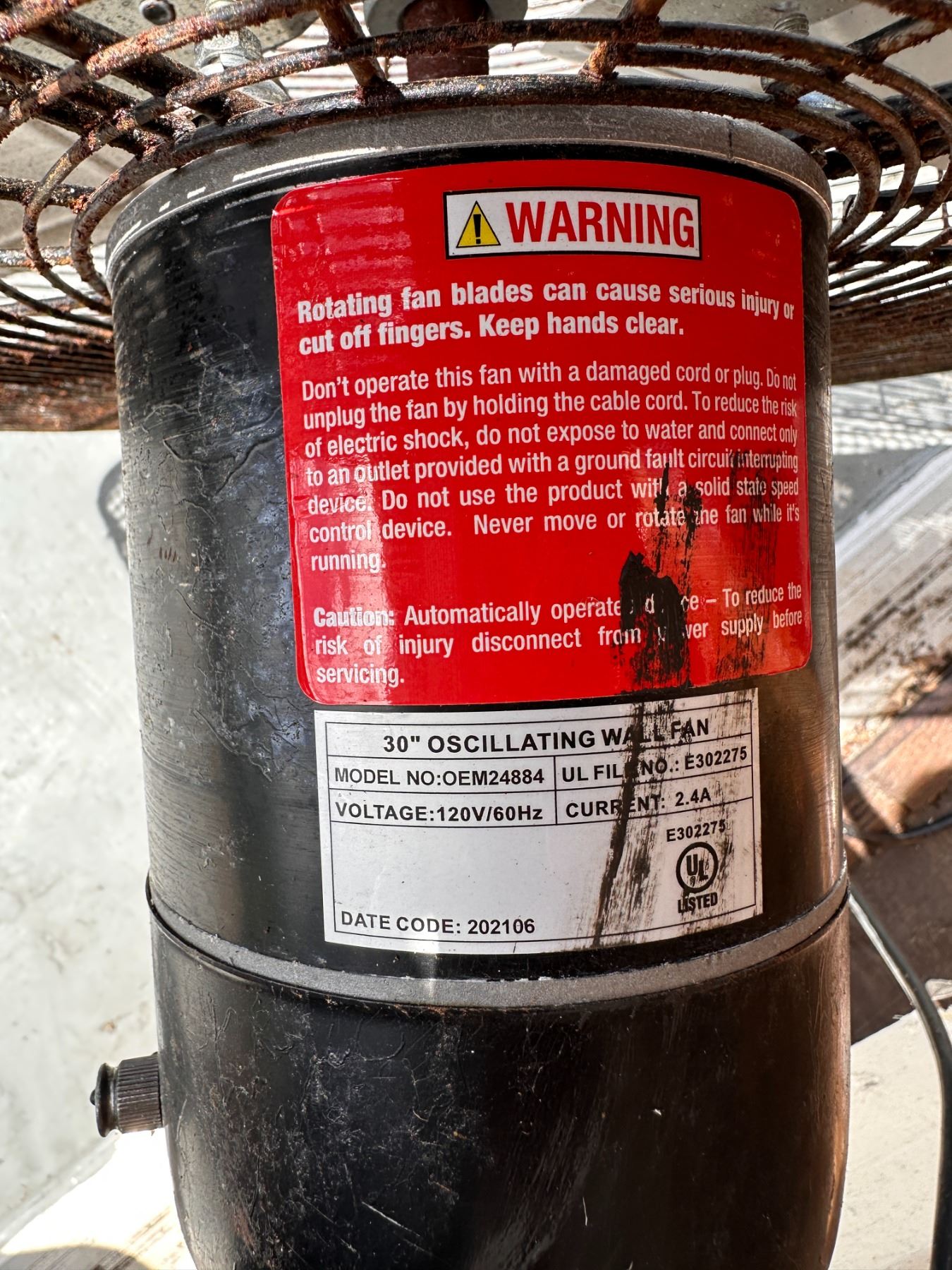 OEM Tools MSI-750-12060 Oscillating 30" Wall Fan