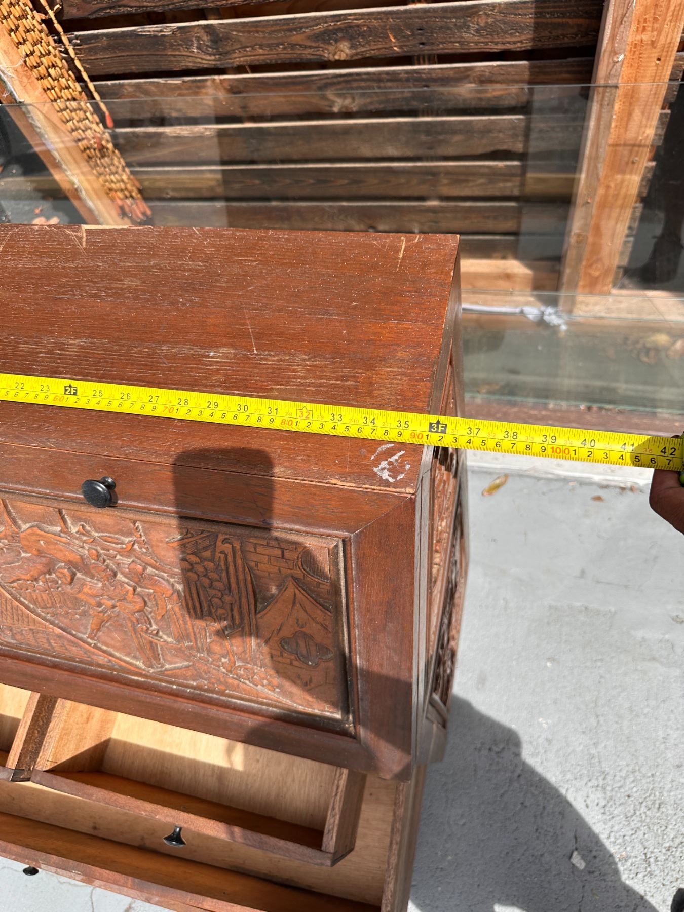 Wooden Drop Leaf Secretary Desk w/ Carved Grape Motif & 4 Drawers 36" x 16" x 42"H