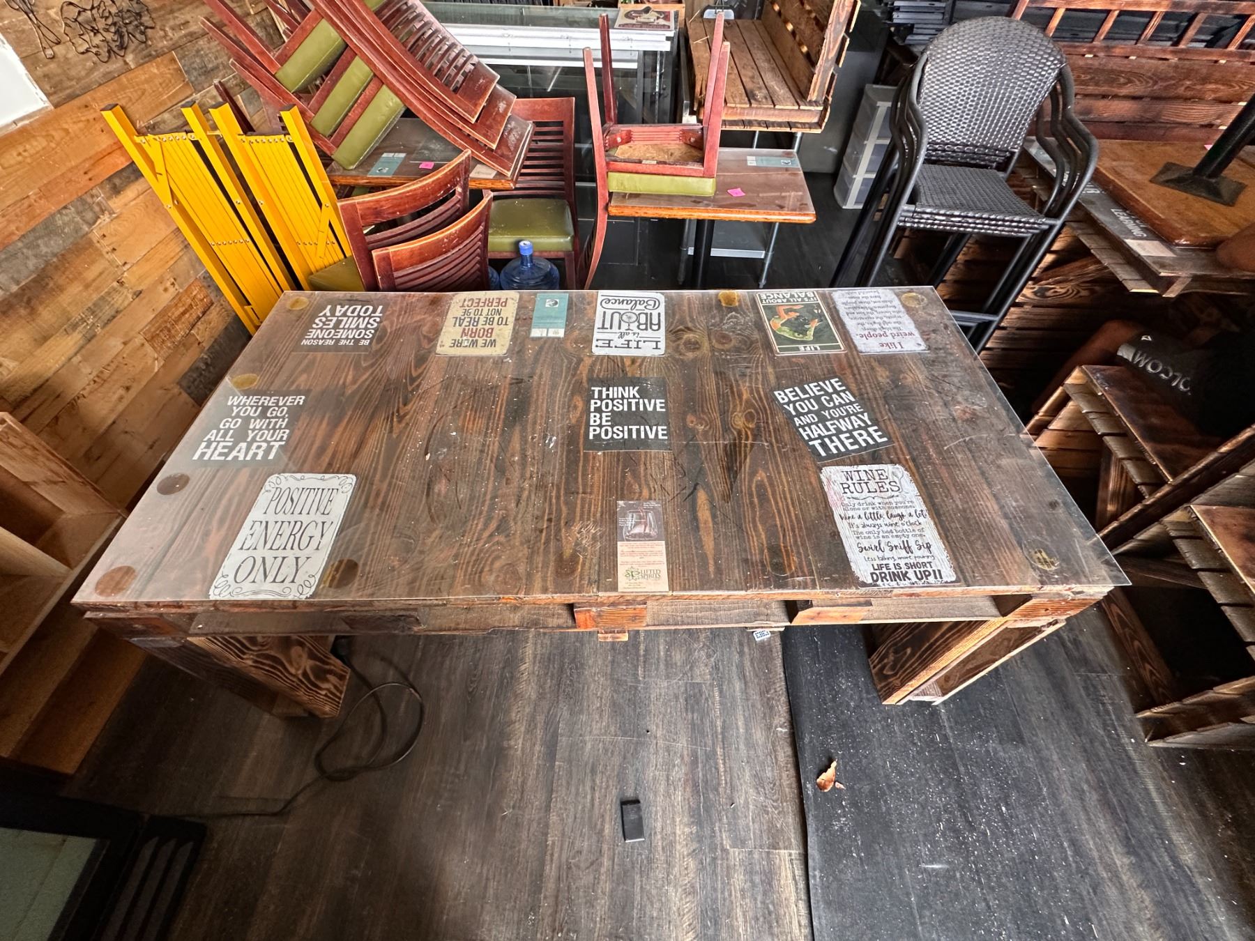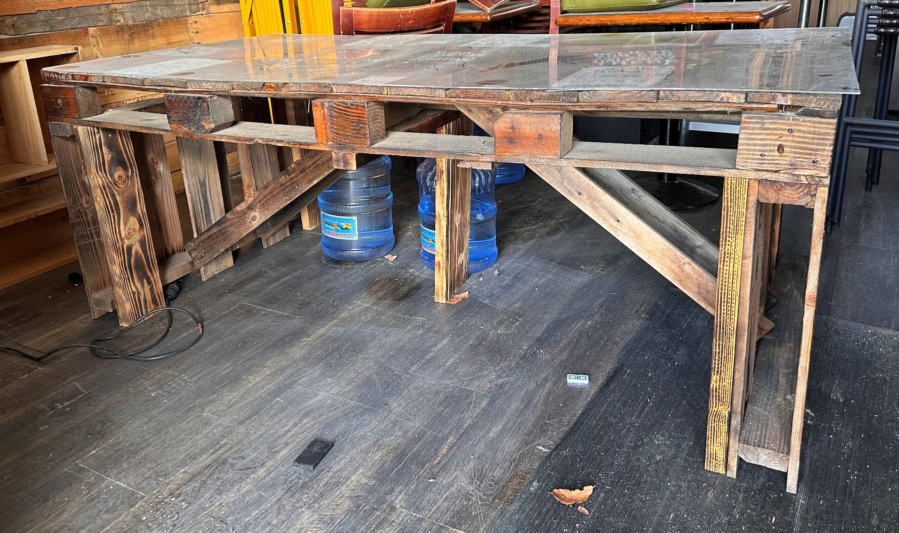 Wooden Farm Table w/ Clear Top 77" x 40" x 30"H