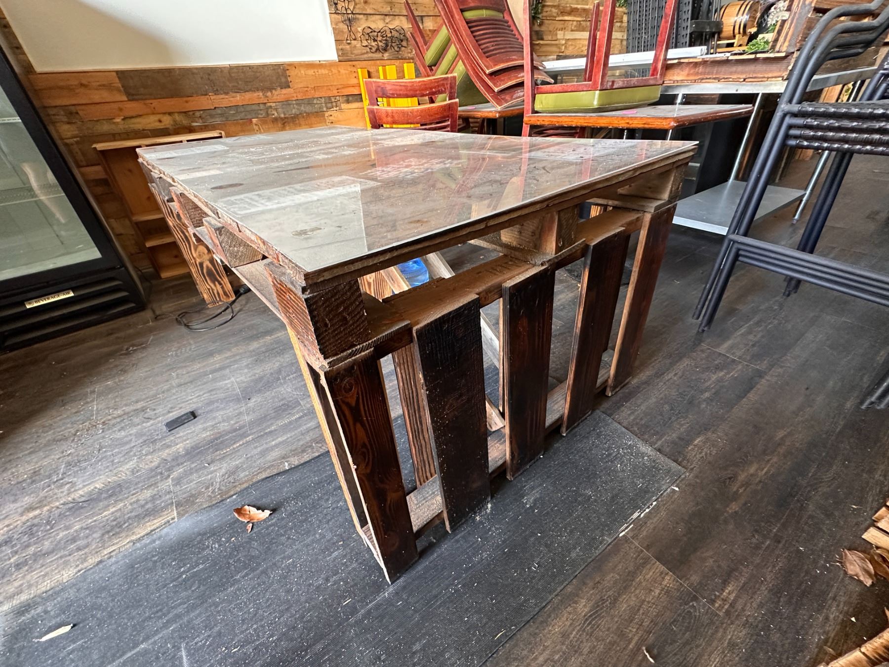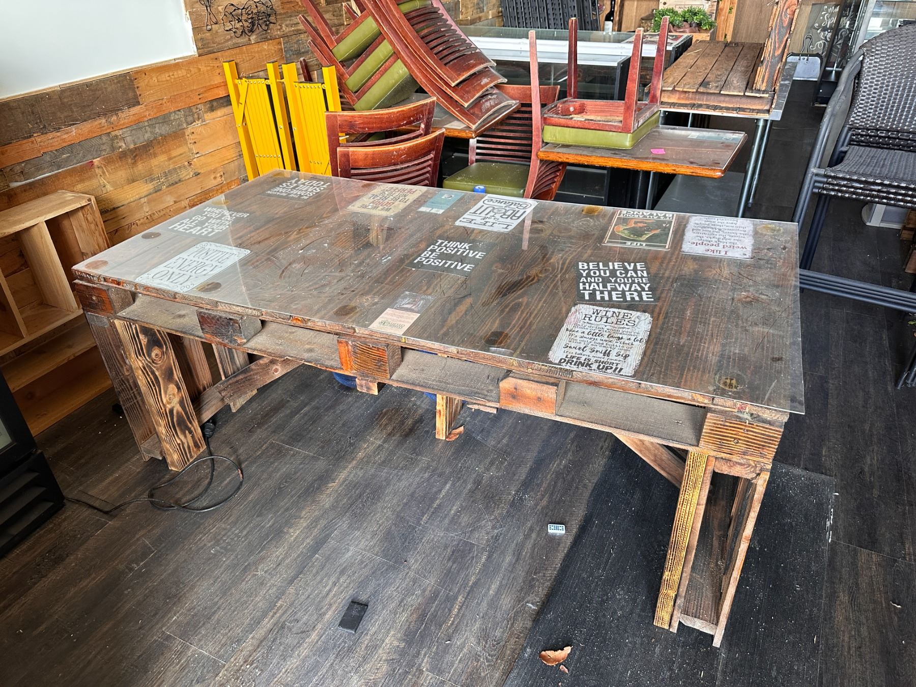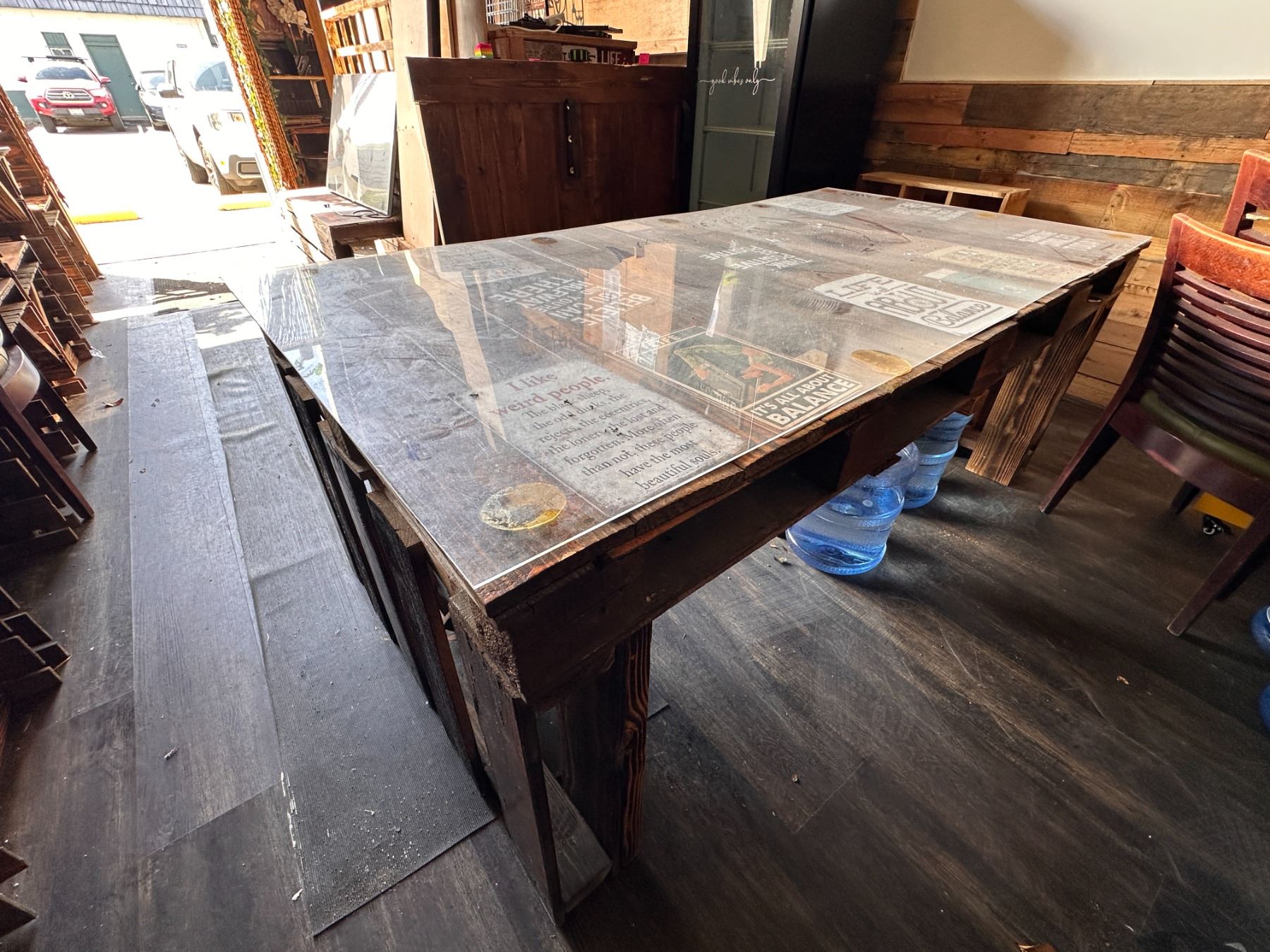 Wooden Farm Table w/ Clear Top 77" x 40" x 30"H