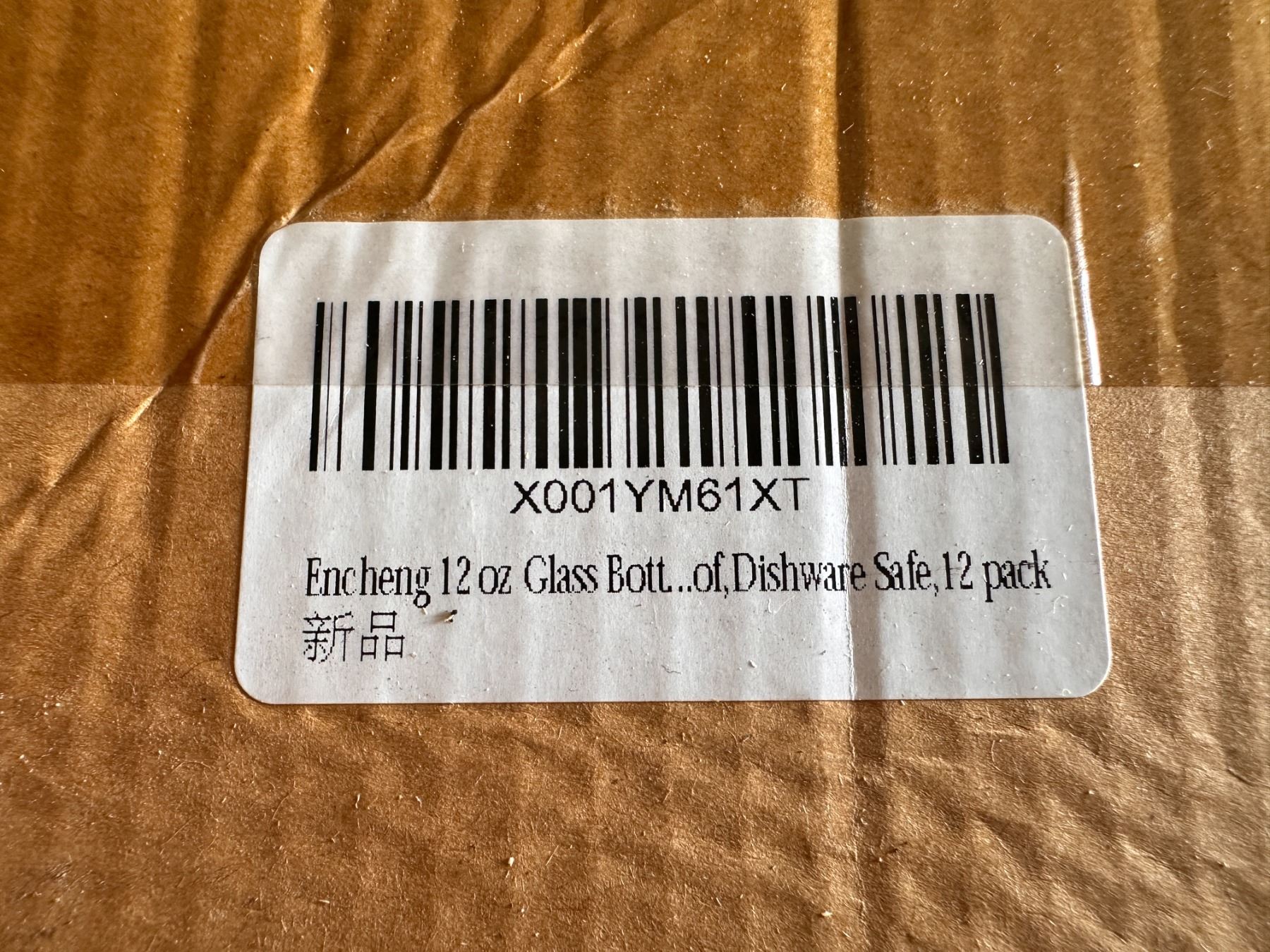 Qty 2 Boxes of 4 & 2 Boxes of 12 (total 32) Encheng Empty 12 oz Glass Bottles w/ Corks