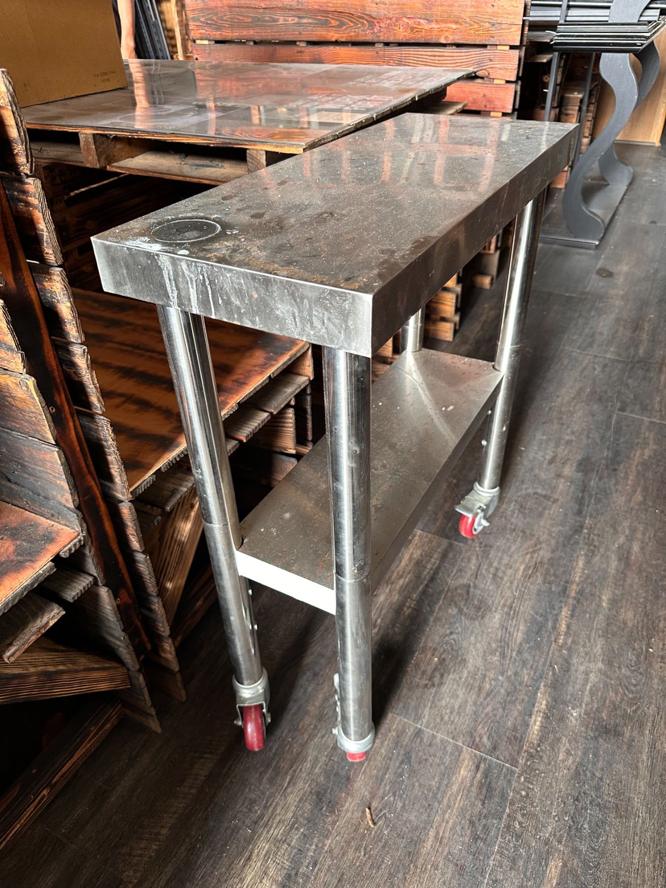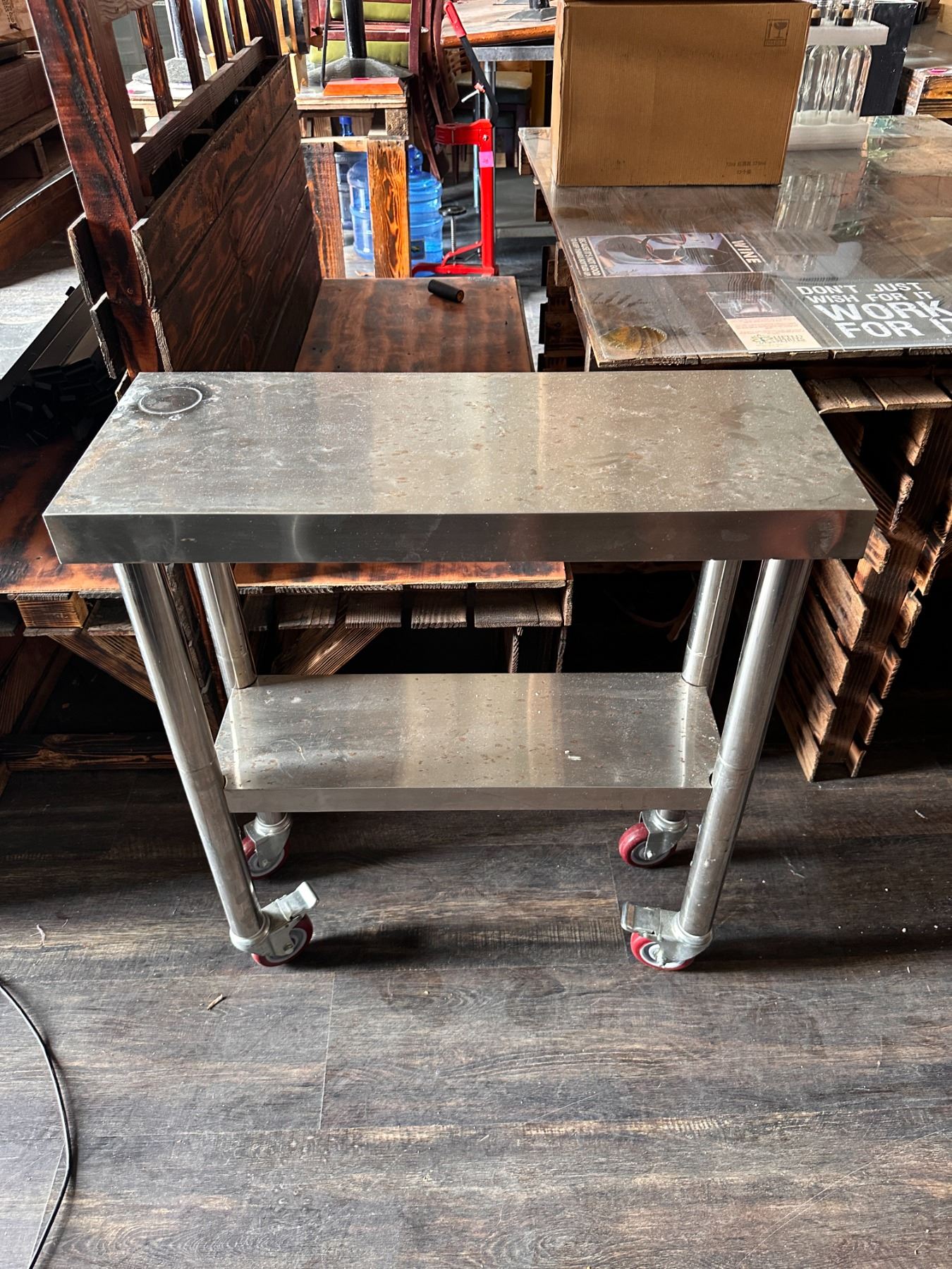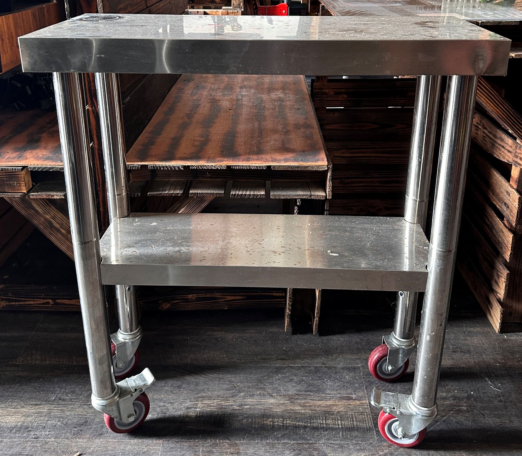 Lot 34 Rolling Metal Kitchen Work Table w/ Undershelf 30" x 12" x 34"H
