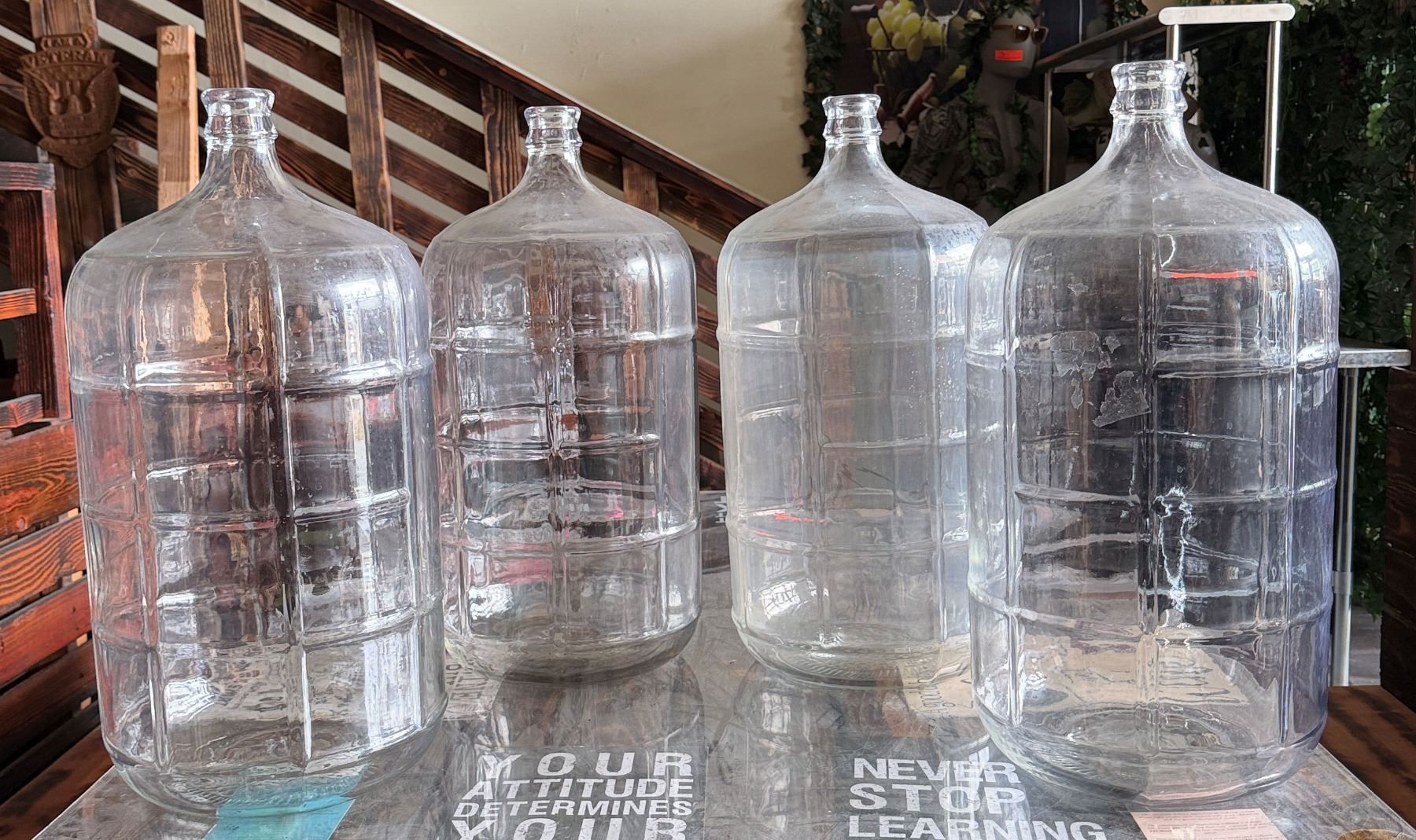 Qty 4 Glass Carboy Bottles 10" Dia, 20"H