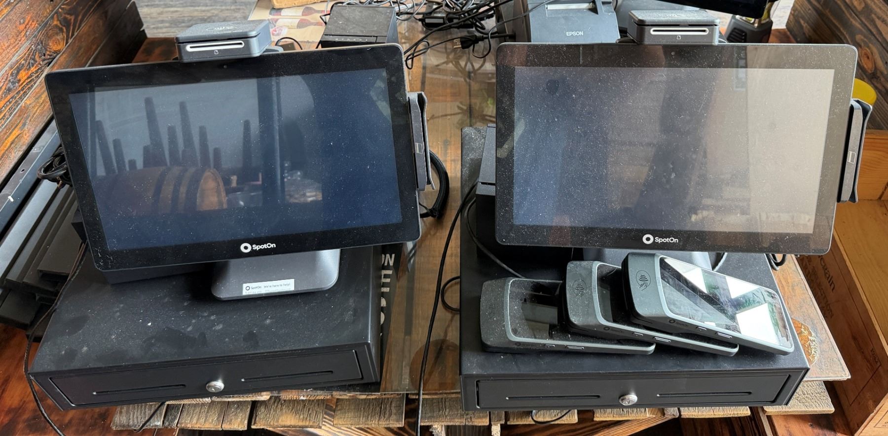Spot On POS System w/ 2 Displays & Cash Drawers, 3 Pagers & Receipt Printer