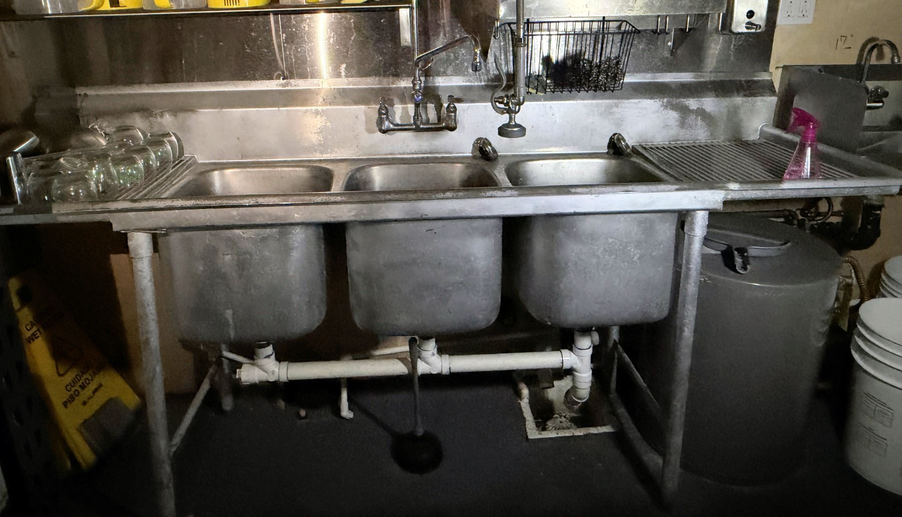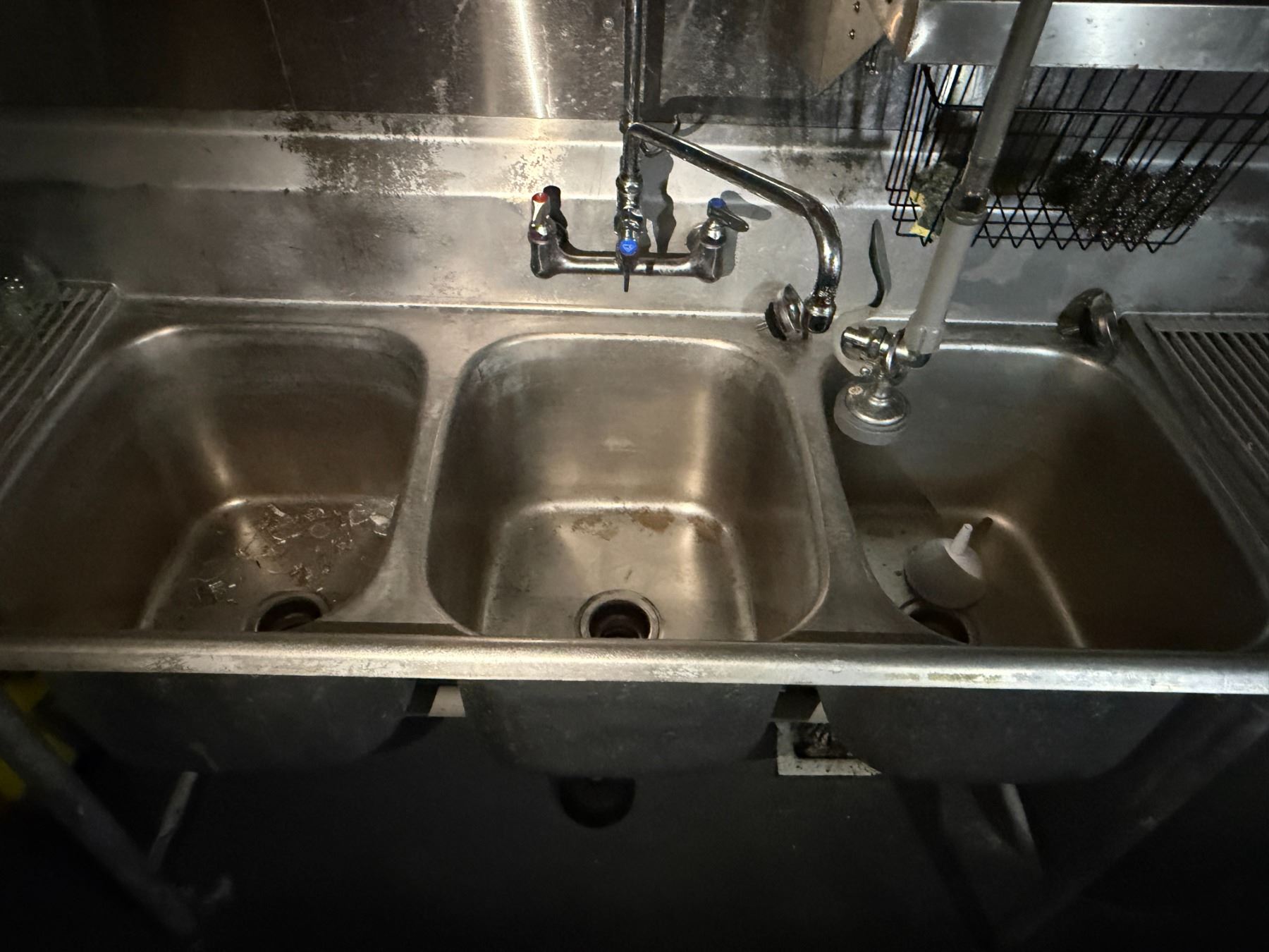 Lot 60 Eagle 3-Basin Stainless Steel Sink w/ Double Drainboards 90" x 26" x 44"H