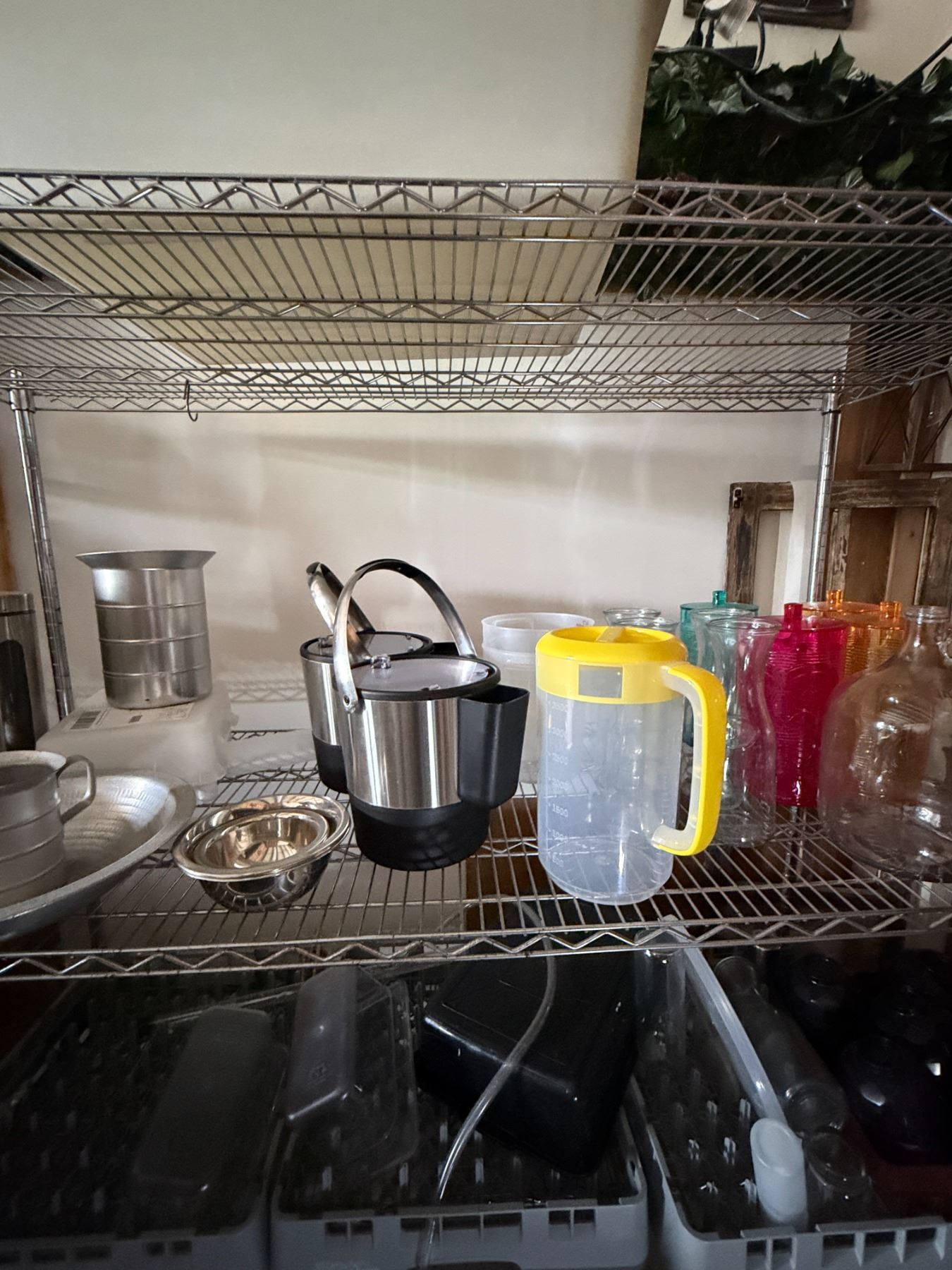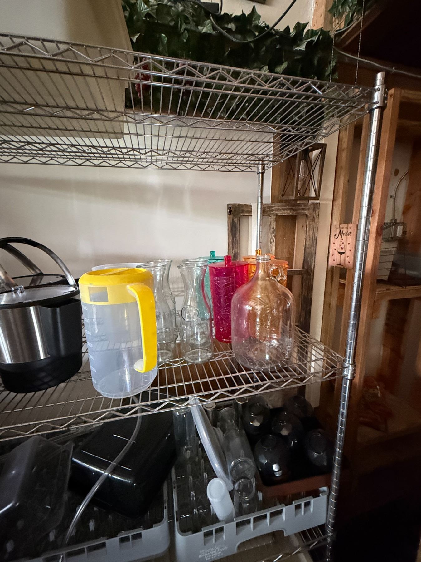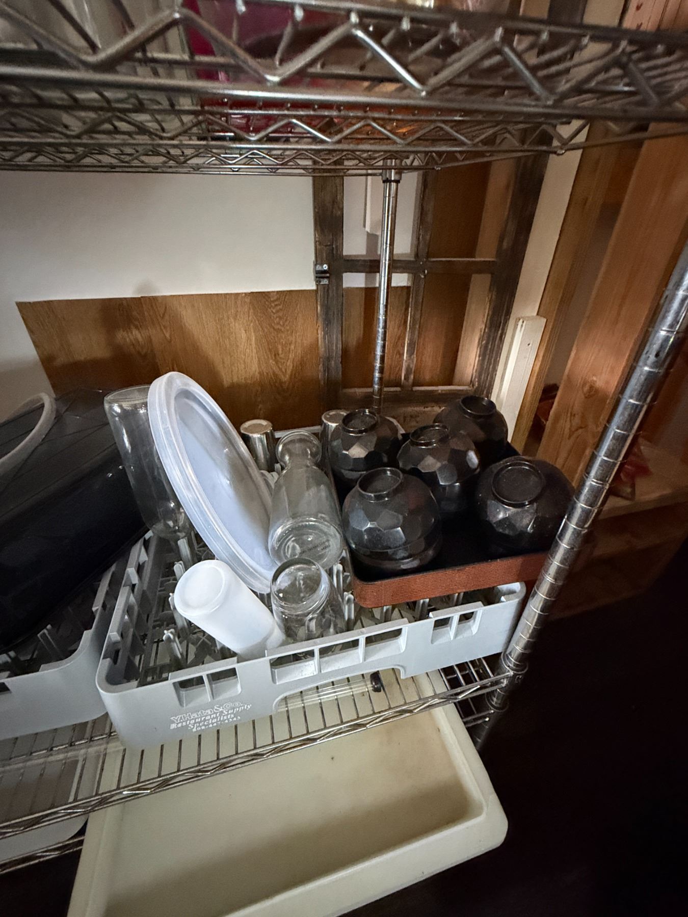 Contents of Shelving Unit: Carafes, Carboys, Pitchers, Bowls, Ice Buckets, etc (shelf not included)