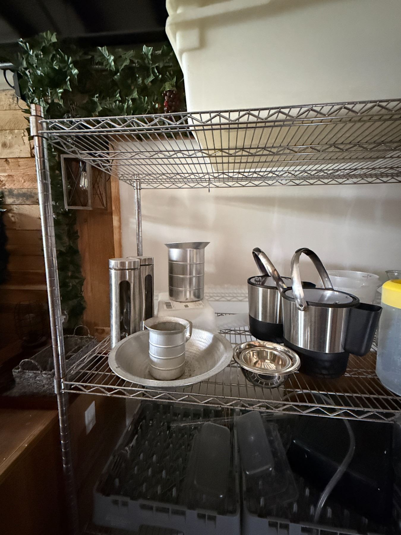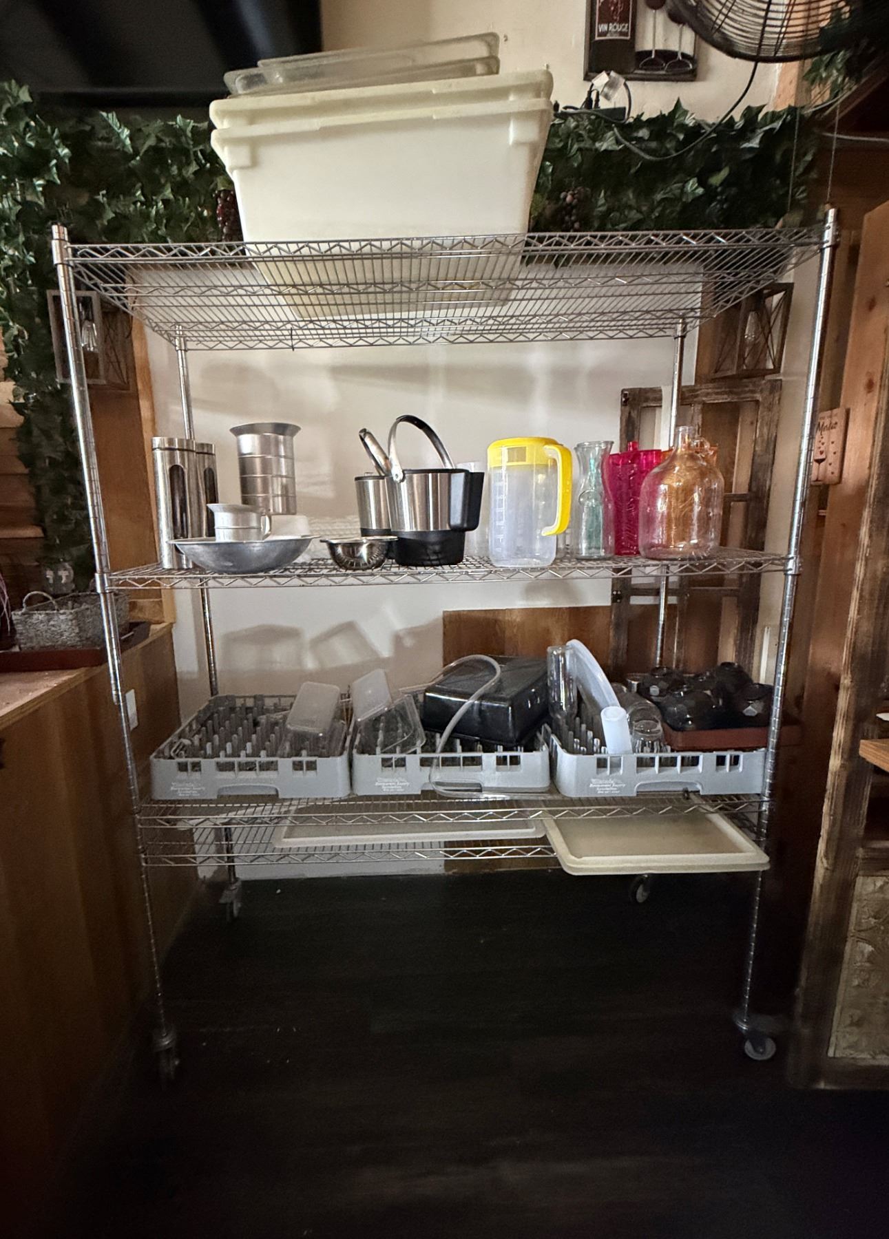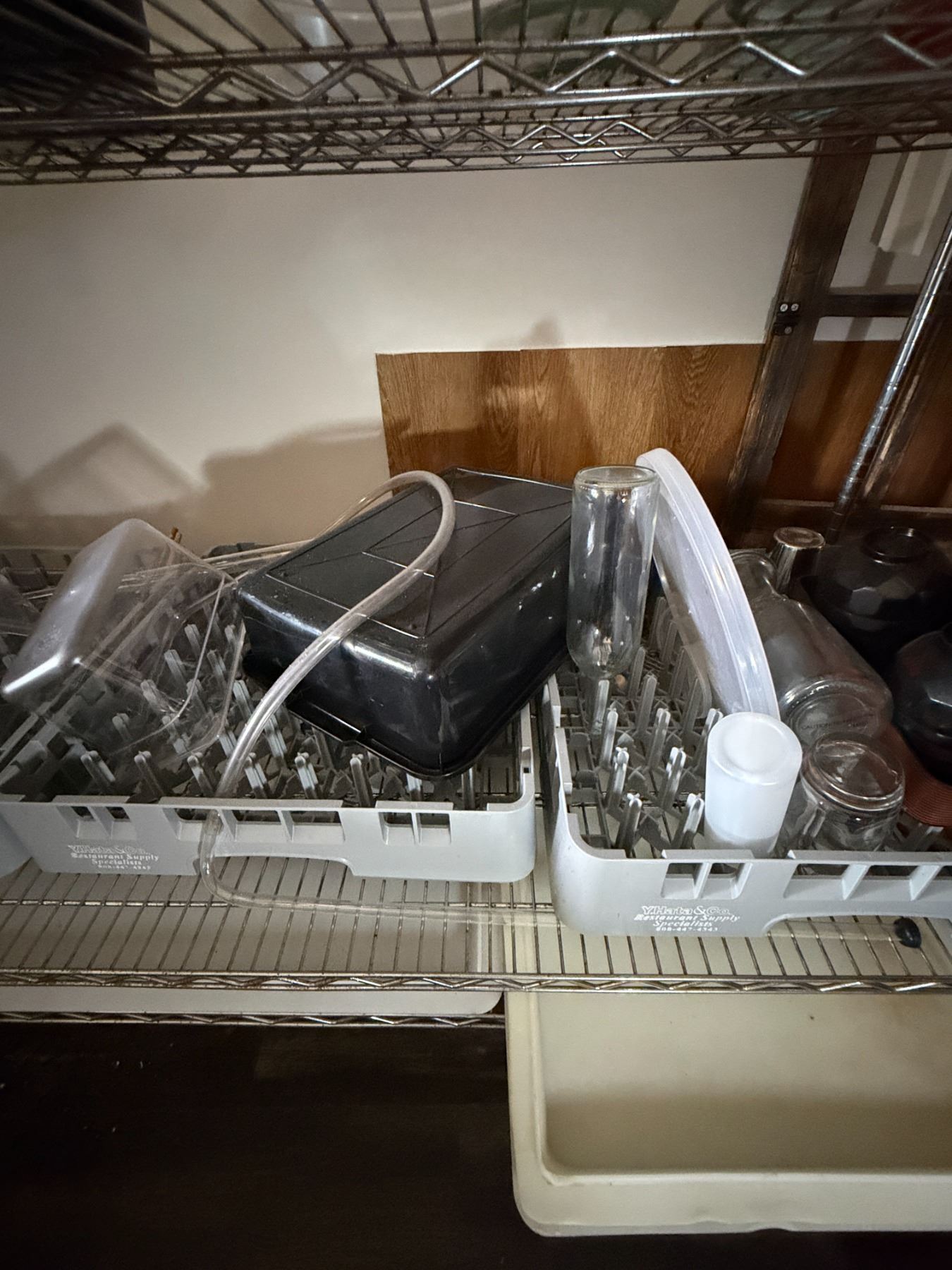 Contents of Shelving Unit: Carafes, Carboys, Pitchers, Bowls, Ice Buckets, etc (shelf not included)