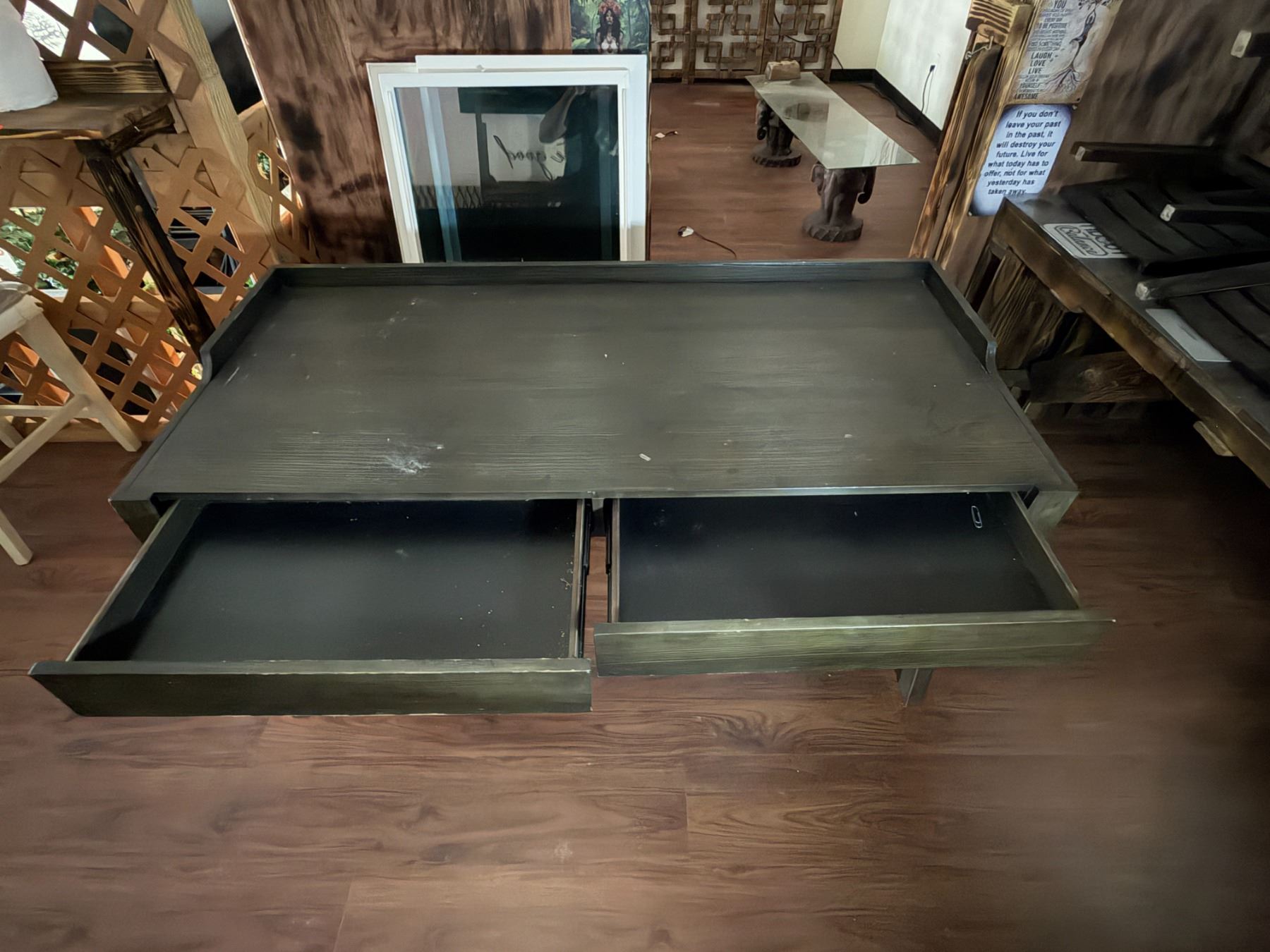 Lot 86 Rectangular Wooden Table w/ Metal Legs & 2 Drawers 60" x 27" x 31"H