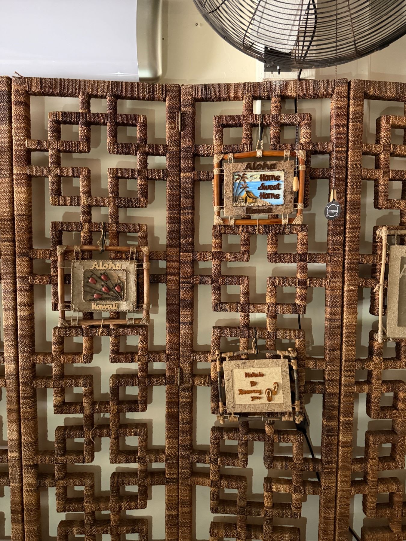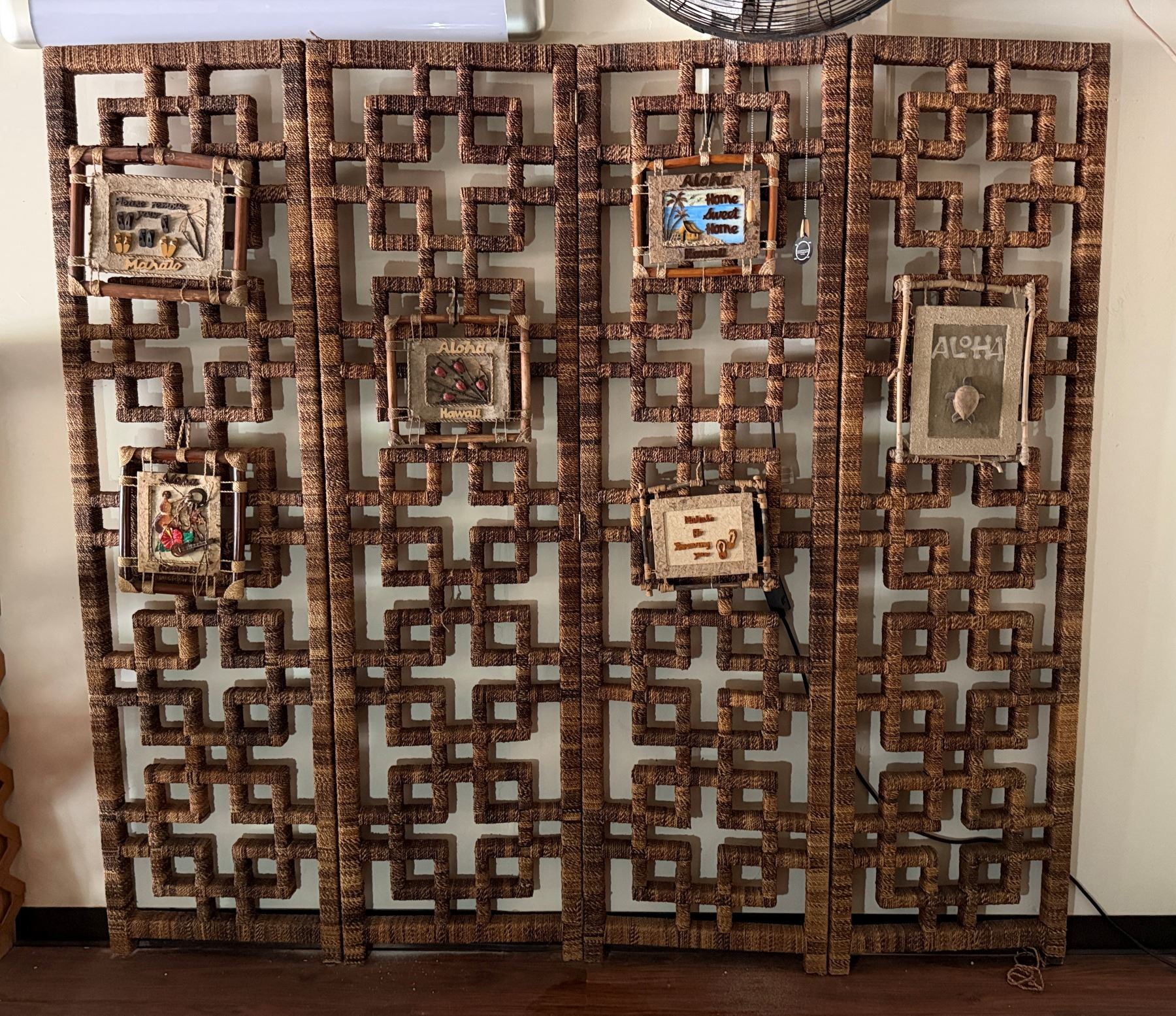 Lot 92 Woven 4-Panel Screen w/ Misc Artwork 96" x 87"