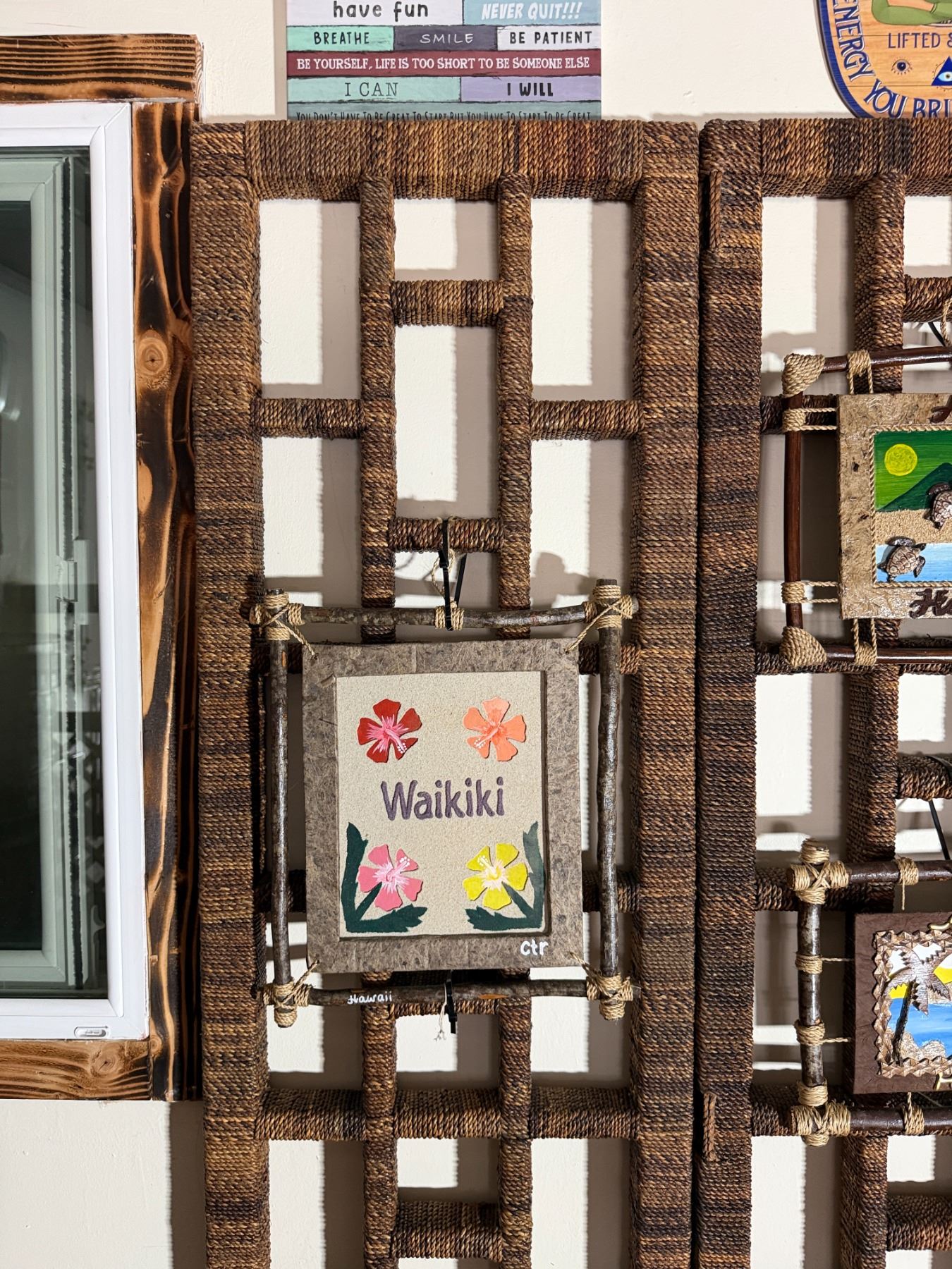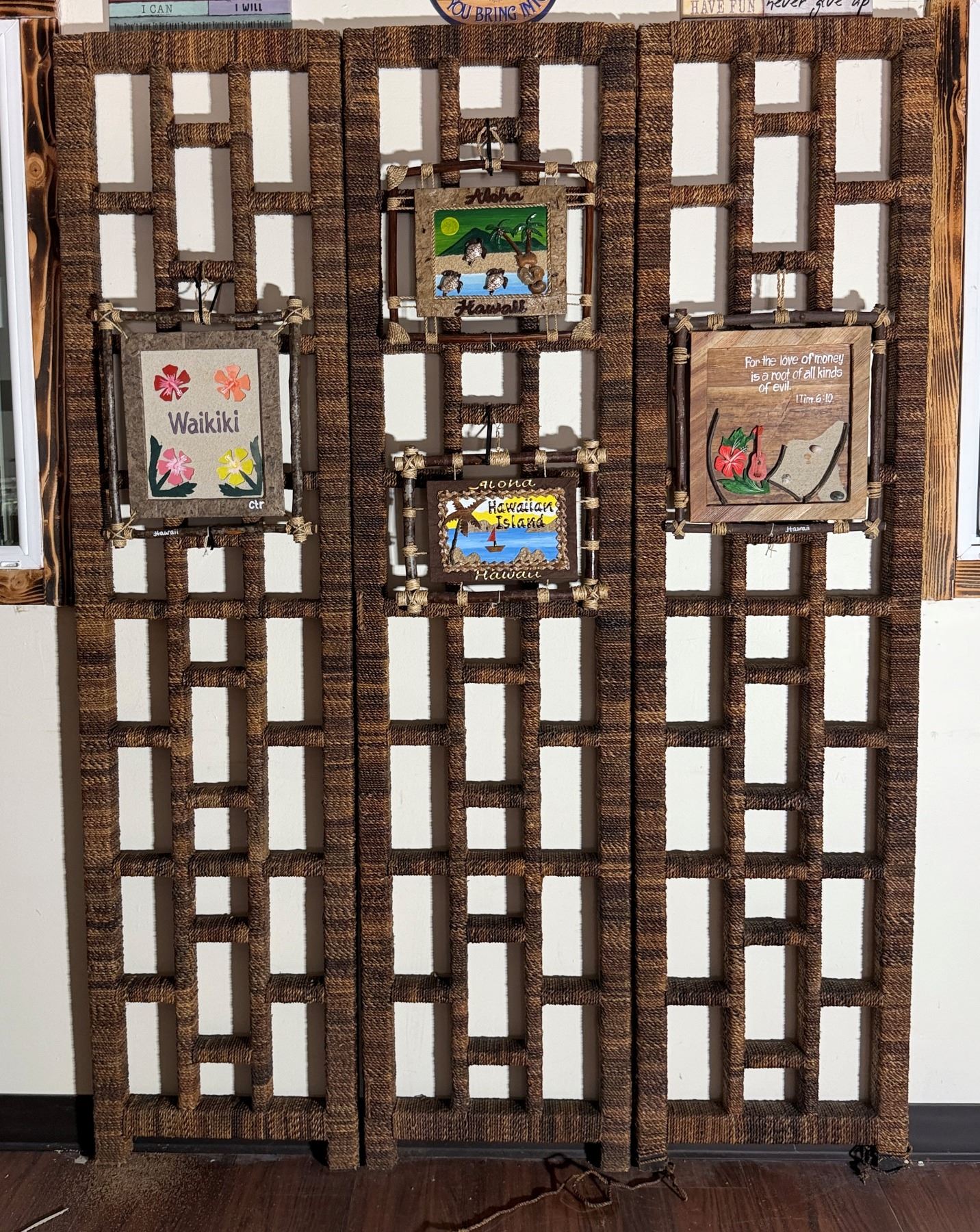 Lot 97 Woven 3-Panel Screen w/ Misc Artwork 55" x 76"