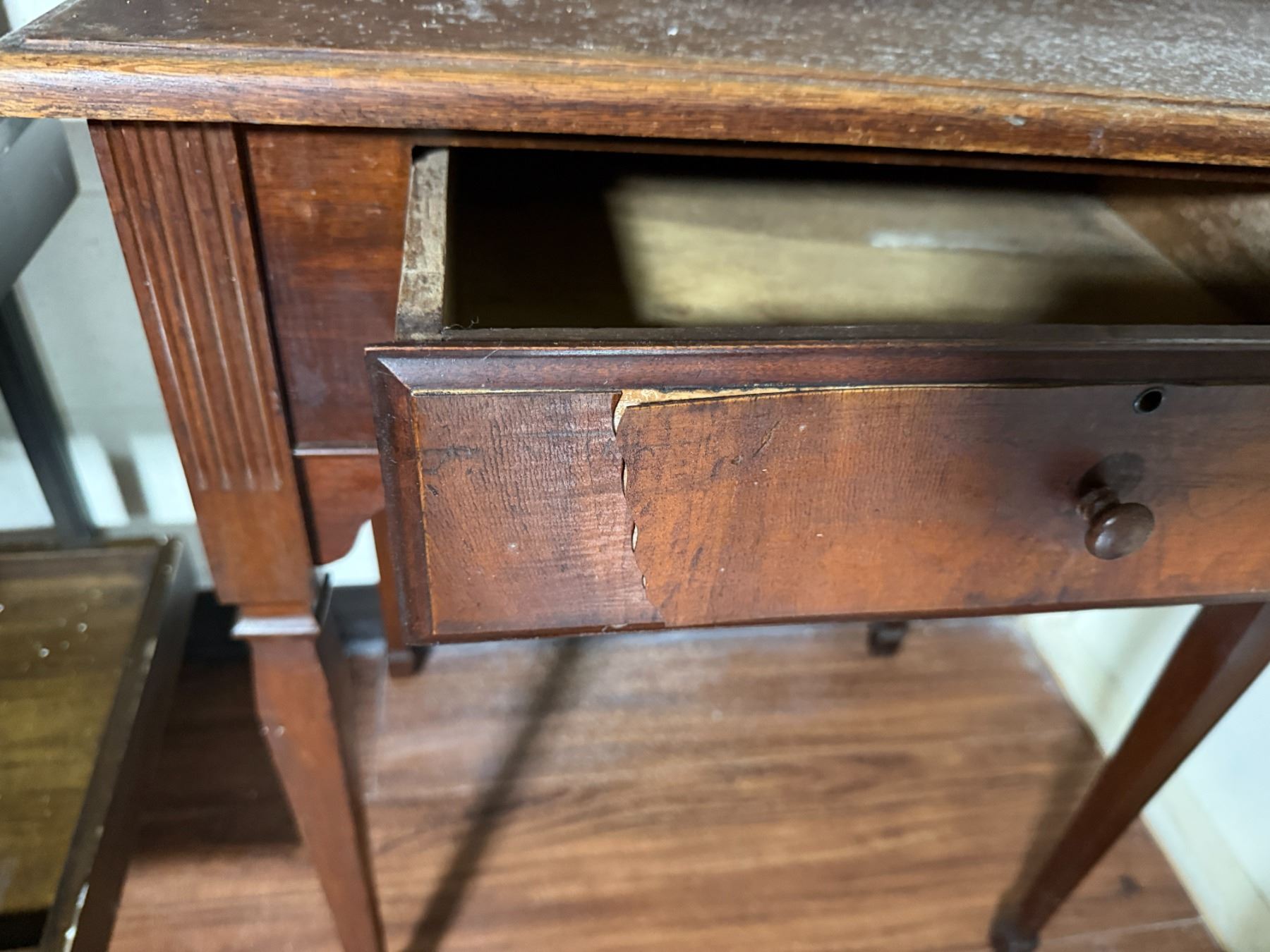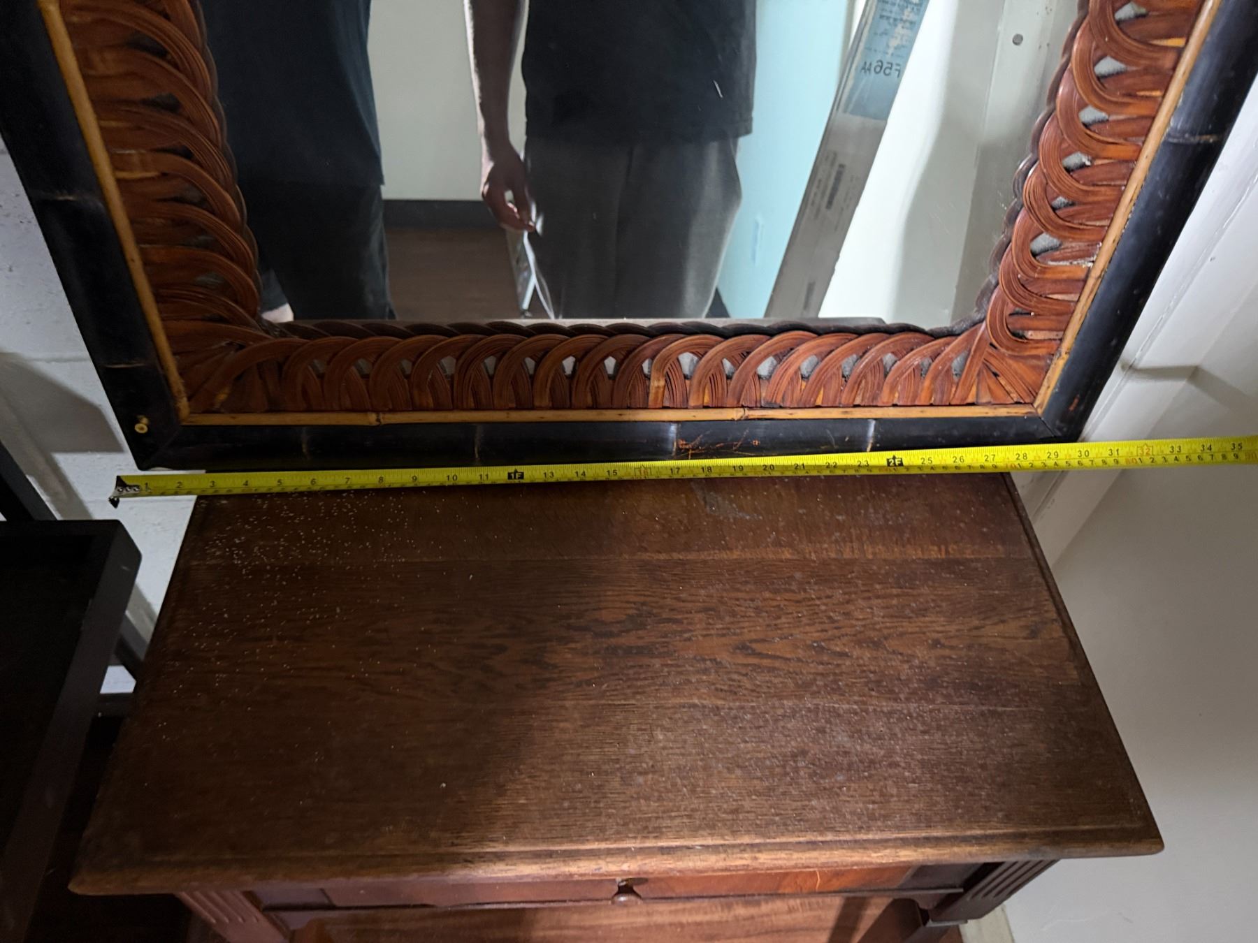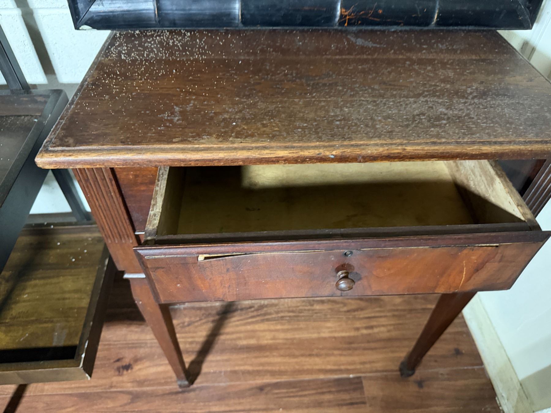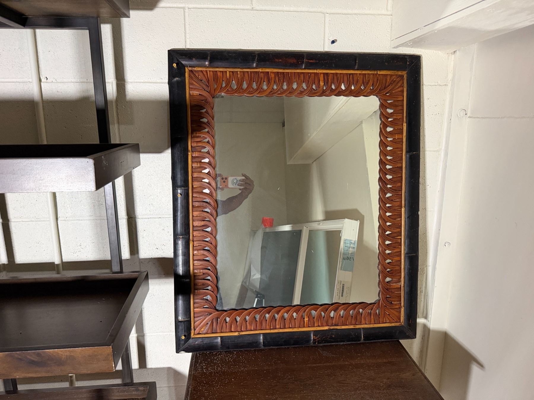 Lot 101 Wooden 5-Tier Shelving Unit, Table w/ Drawer (cracked) & Framed Wall Mirror, Misc Sizes
