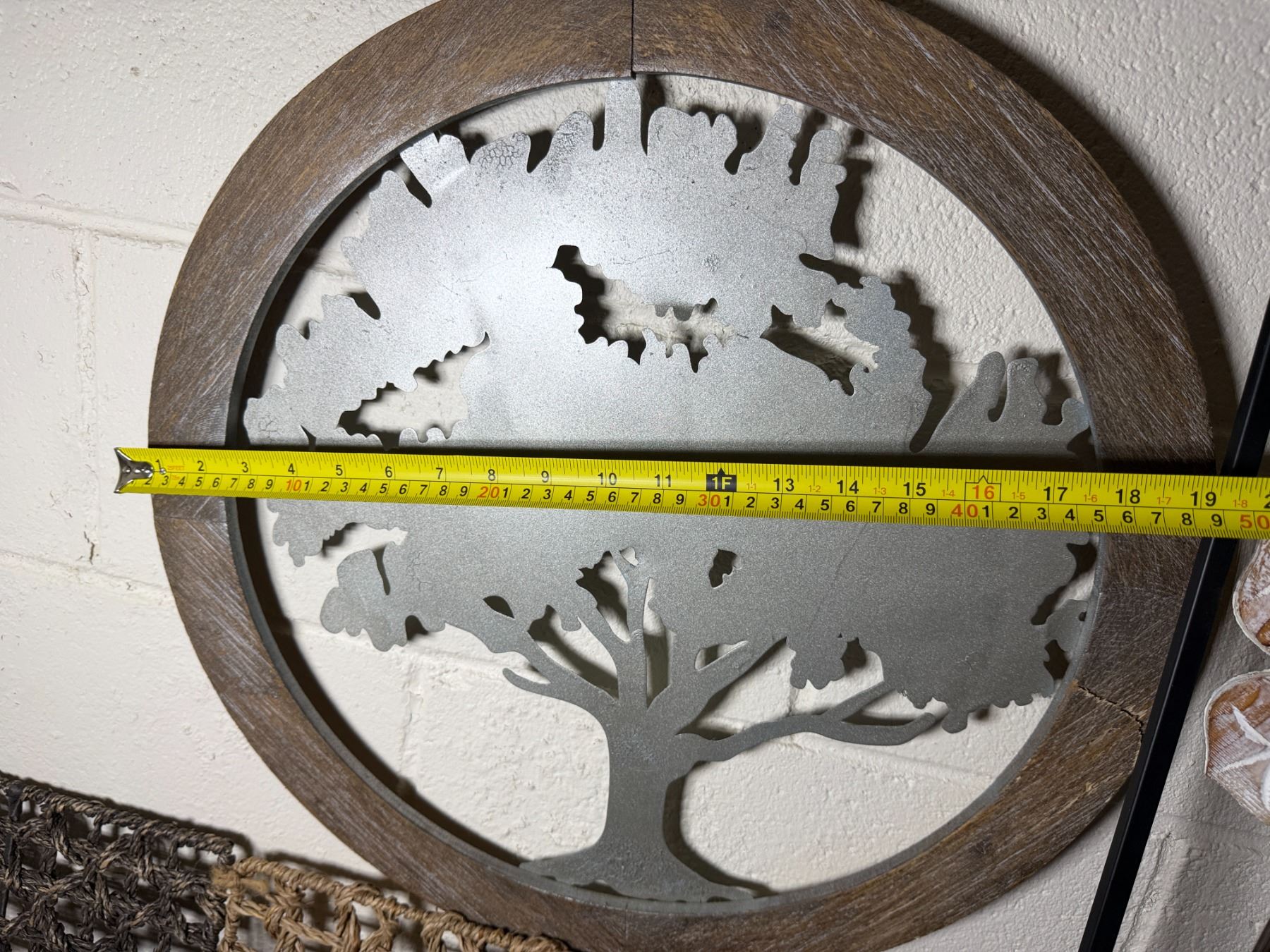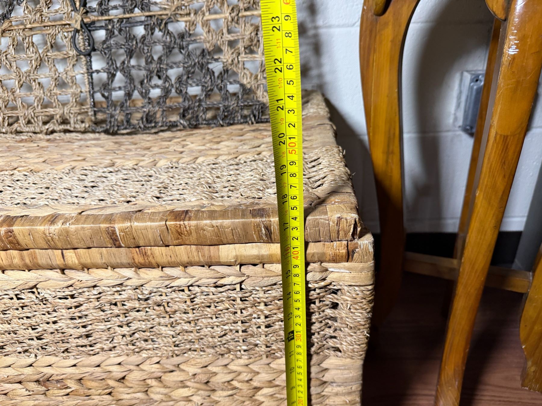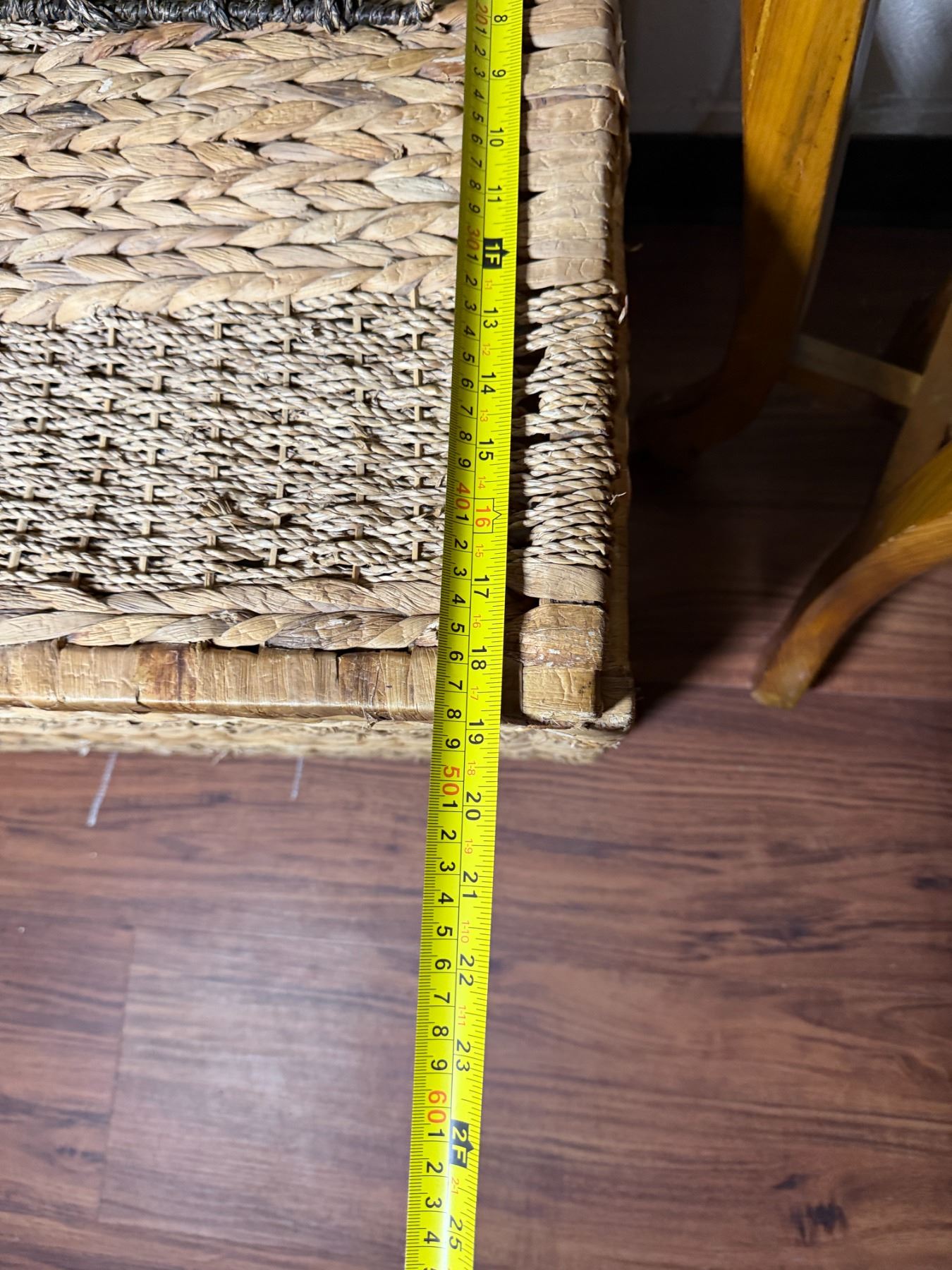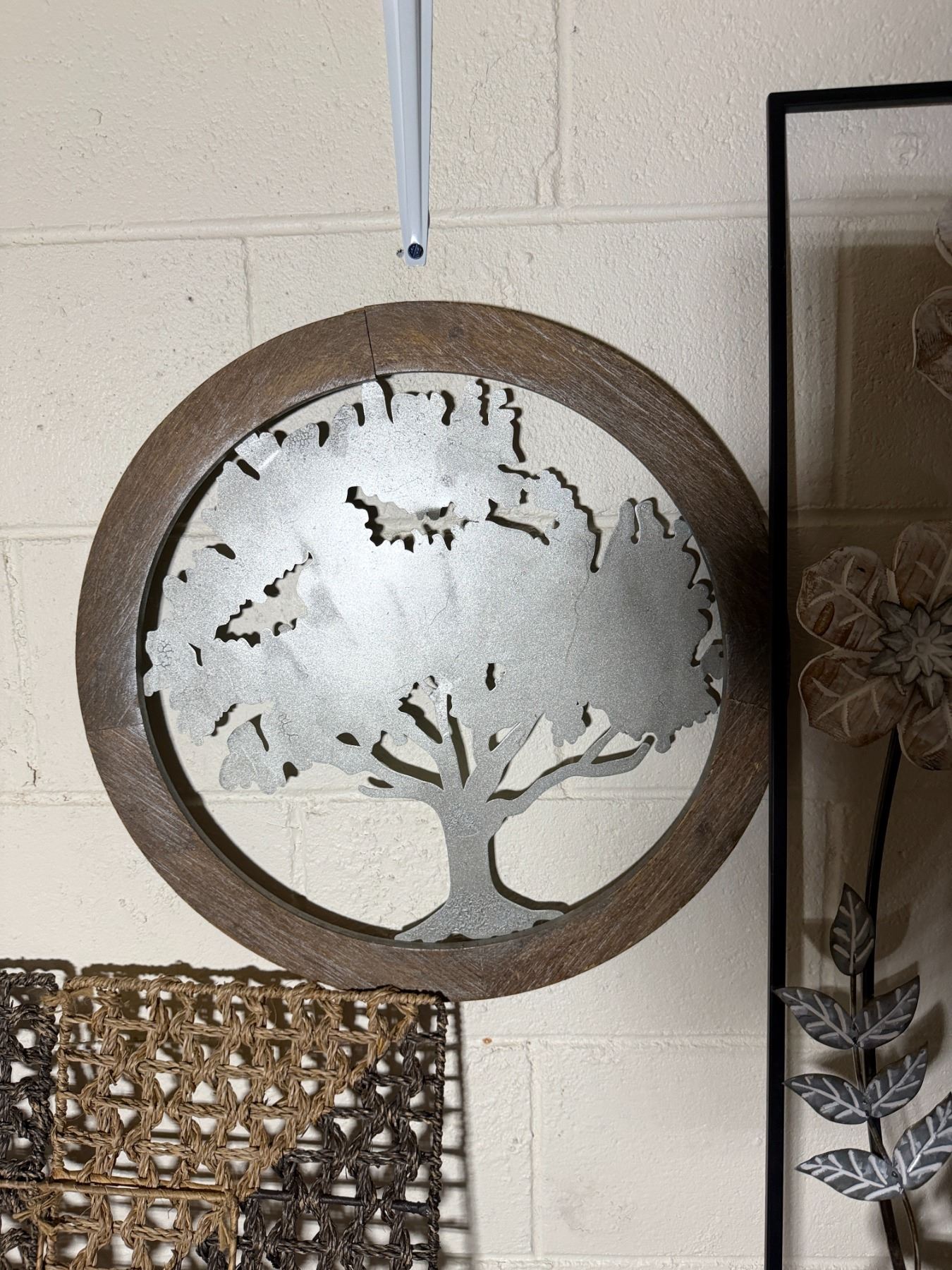 Lot 107 Woven Chest, 3 Misc Wall Hangings & Round Table w/ Cabriole Legs, Misc Sizes