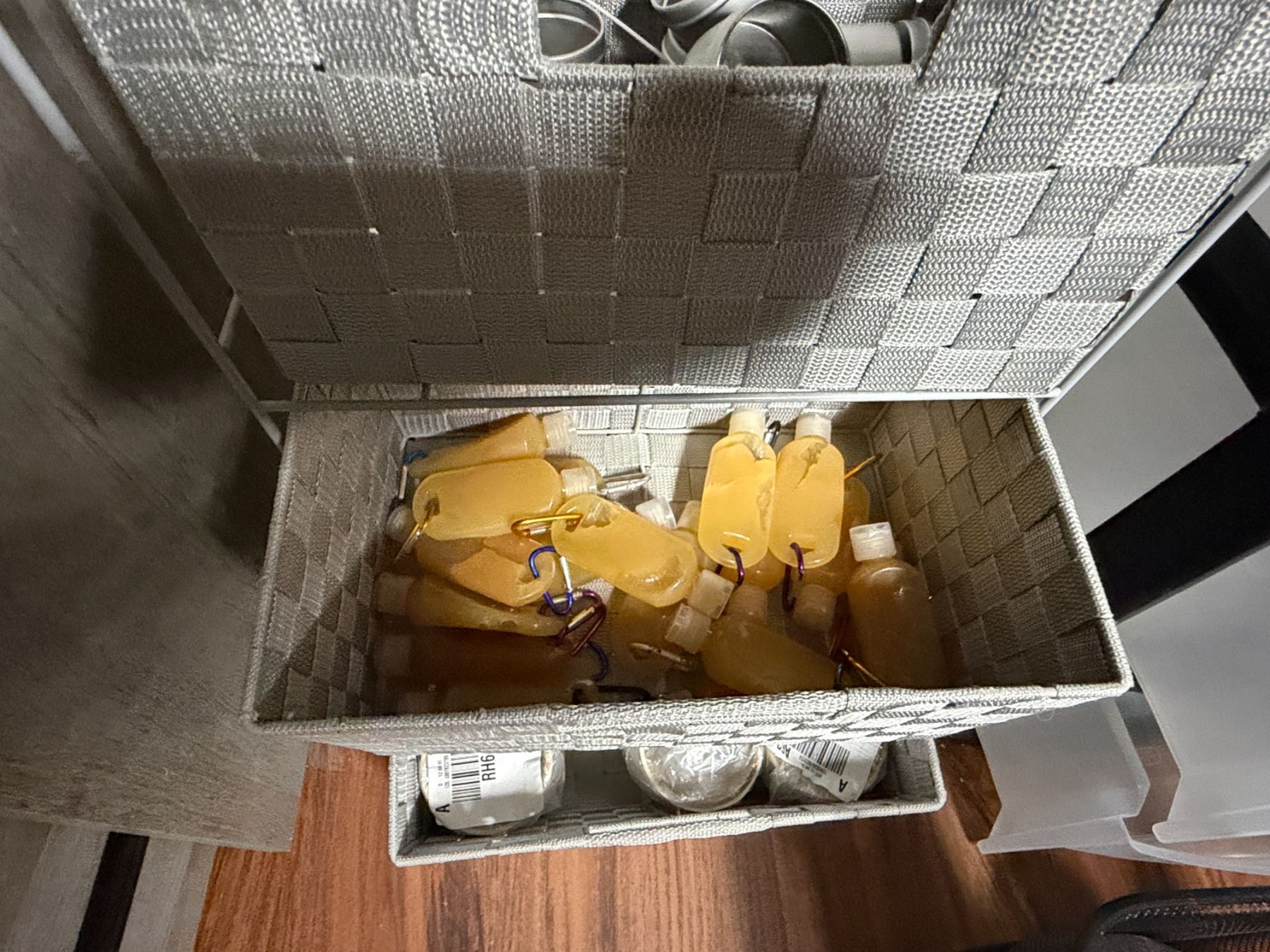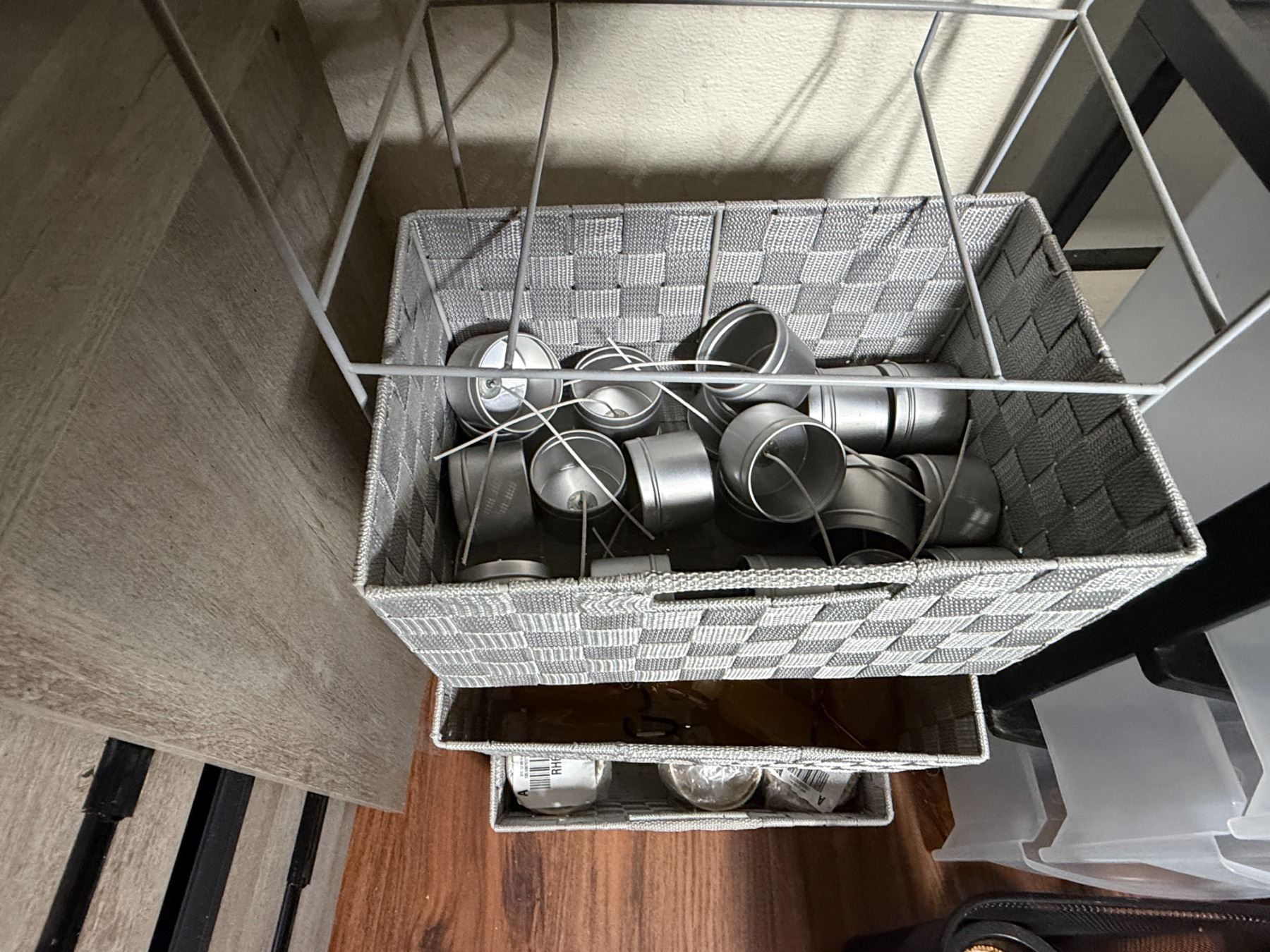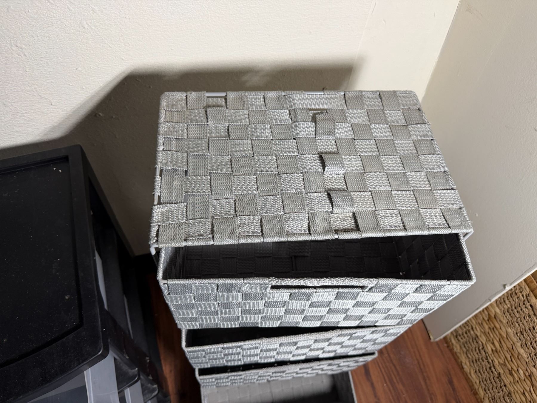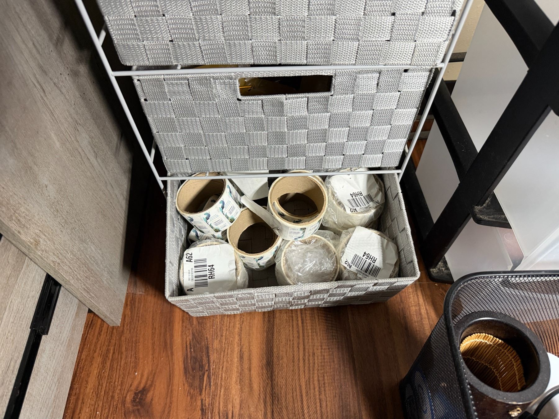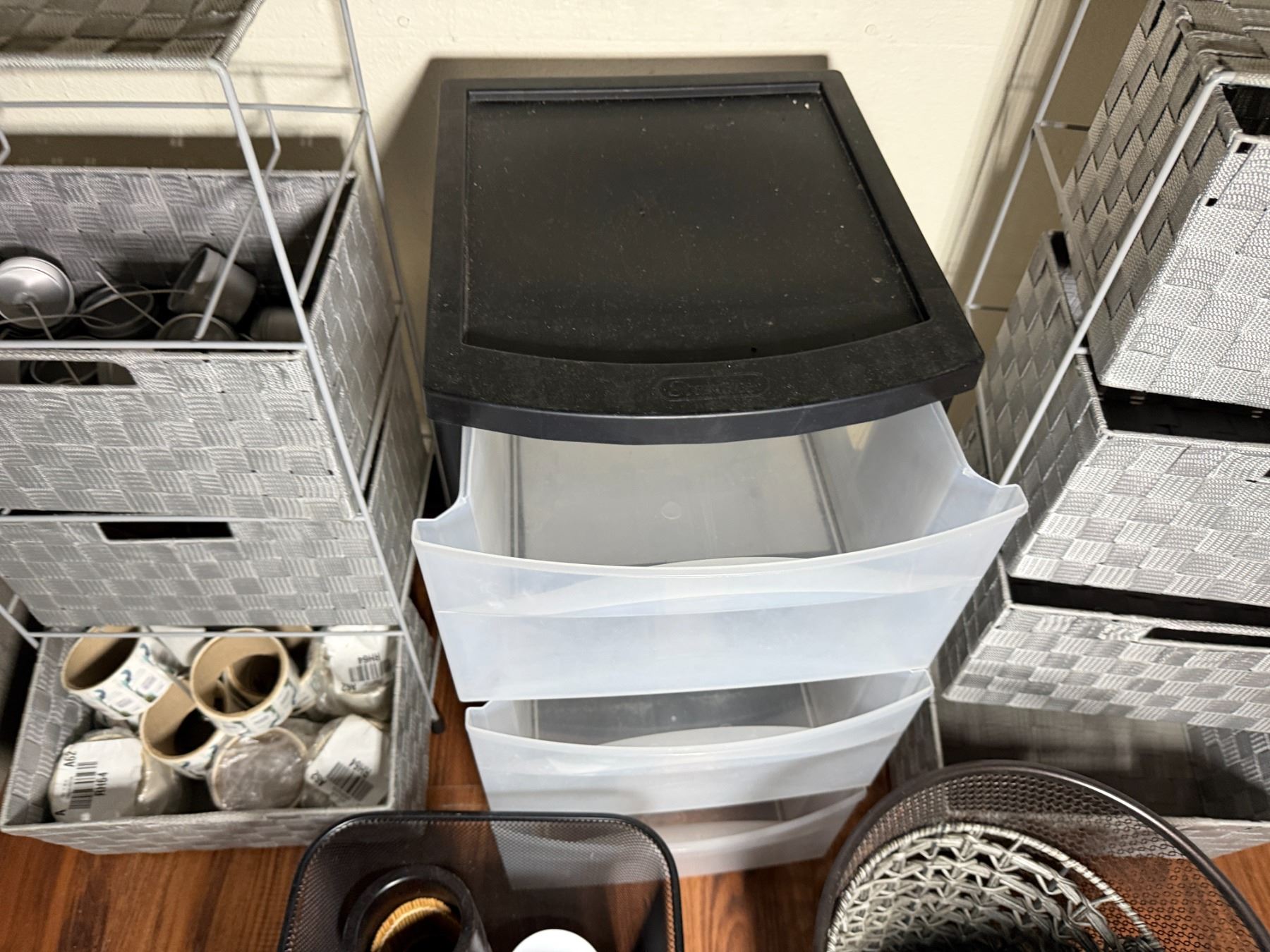 Multiple Storage Containers, Artificial Potted Palm, Misc Supplies, etc