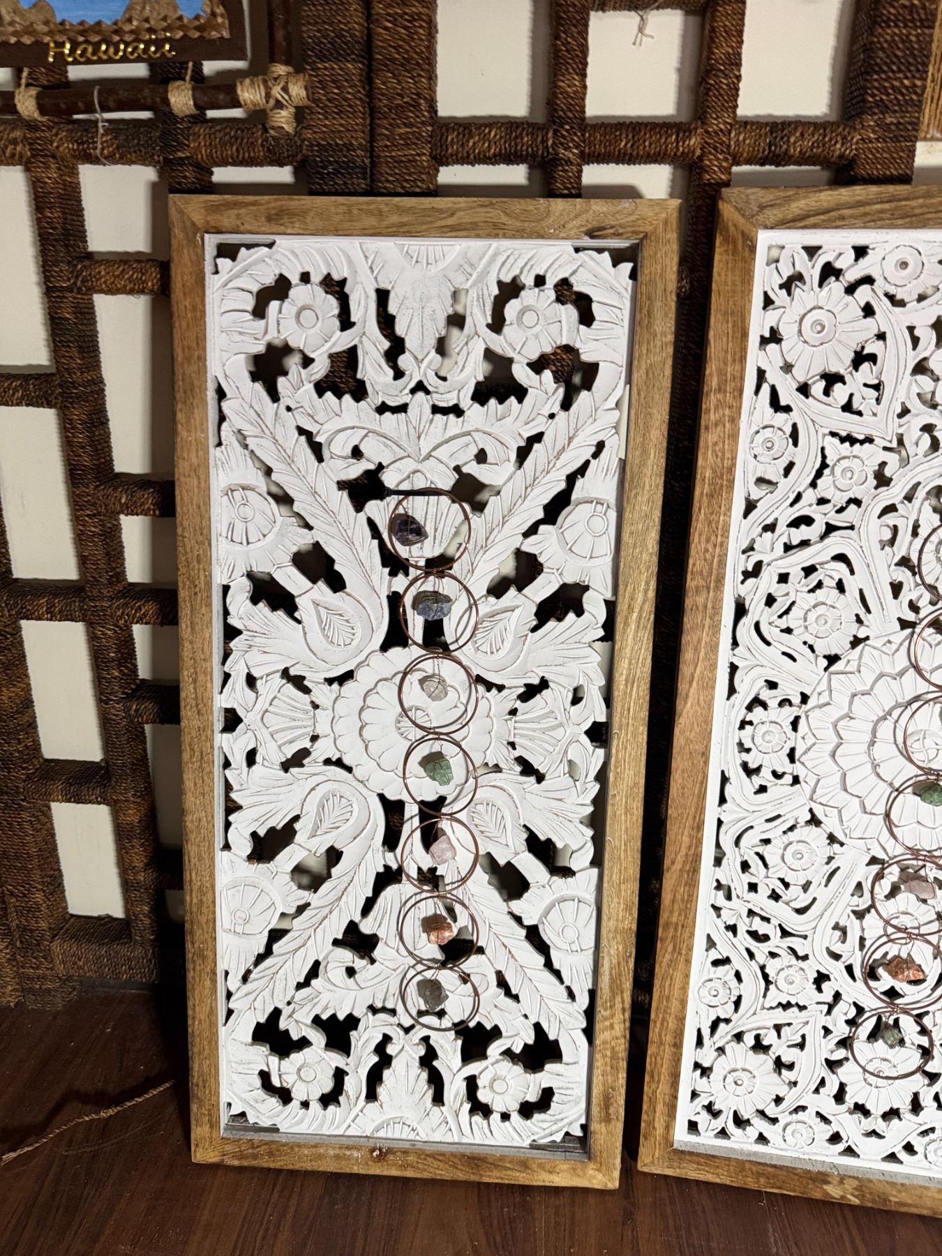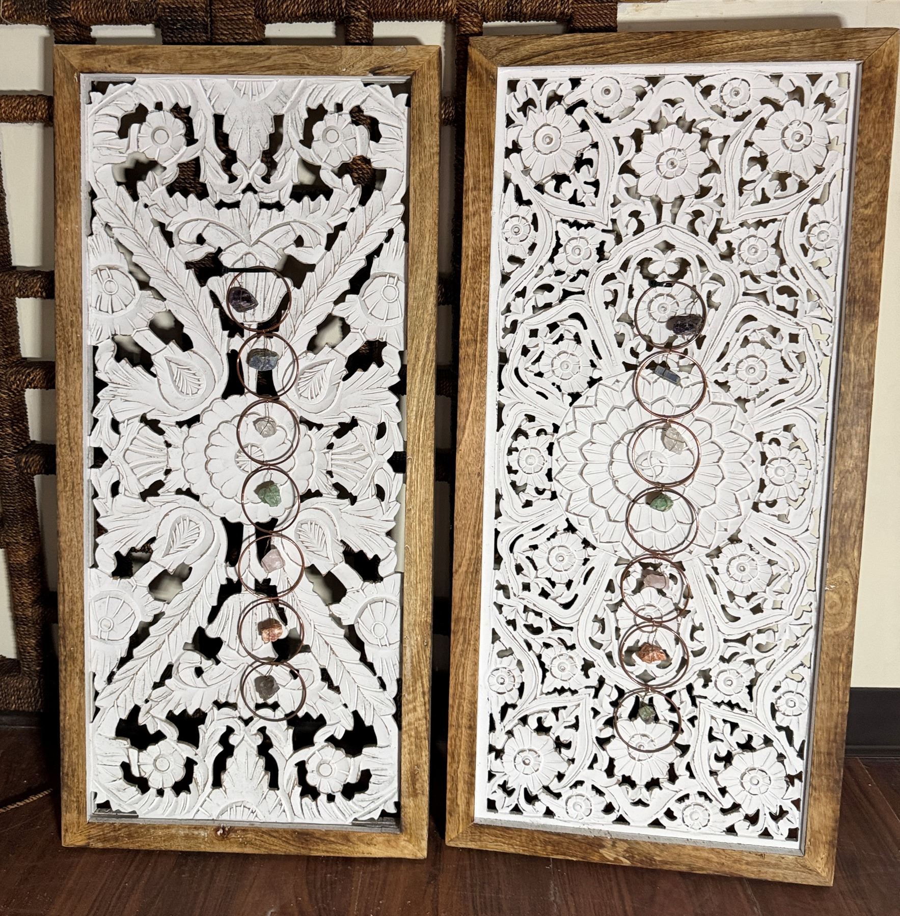 Qty 2 Framed Floral Cut-Out Design Panels 18" x 38"