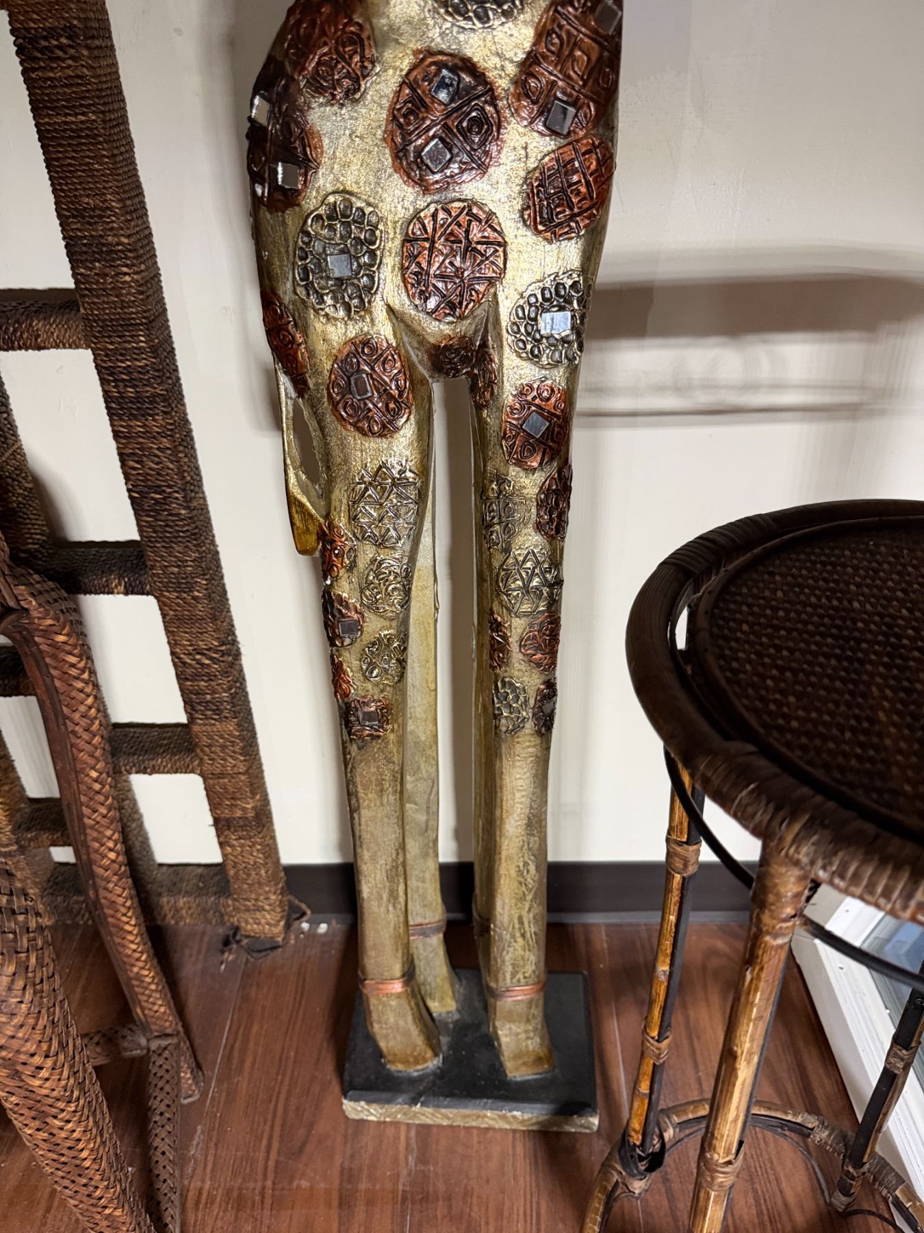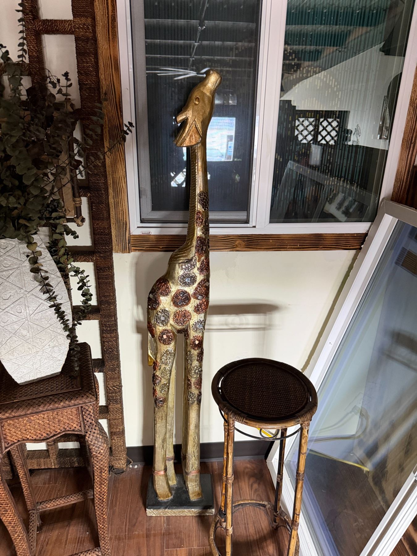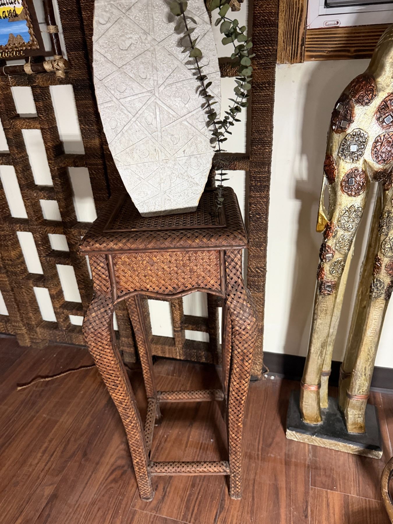 Qty 2 Plant Stands, Artificial Potted Plant, Bowl & Giraffe Statue, Misc Sizes