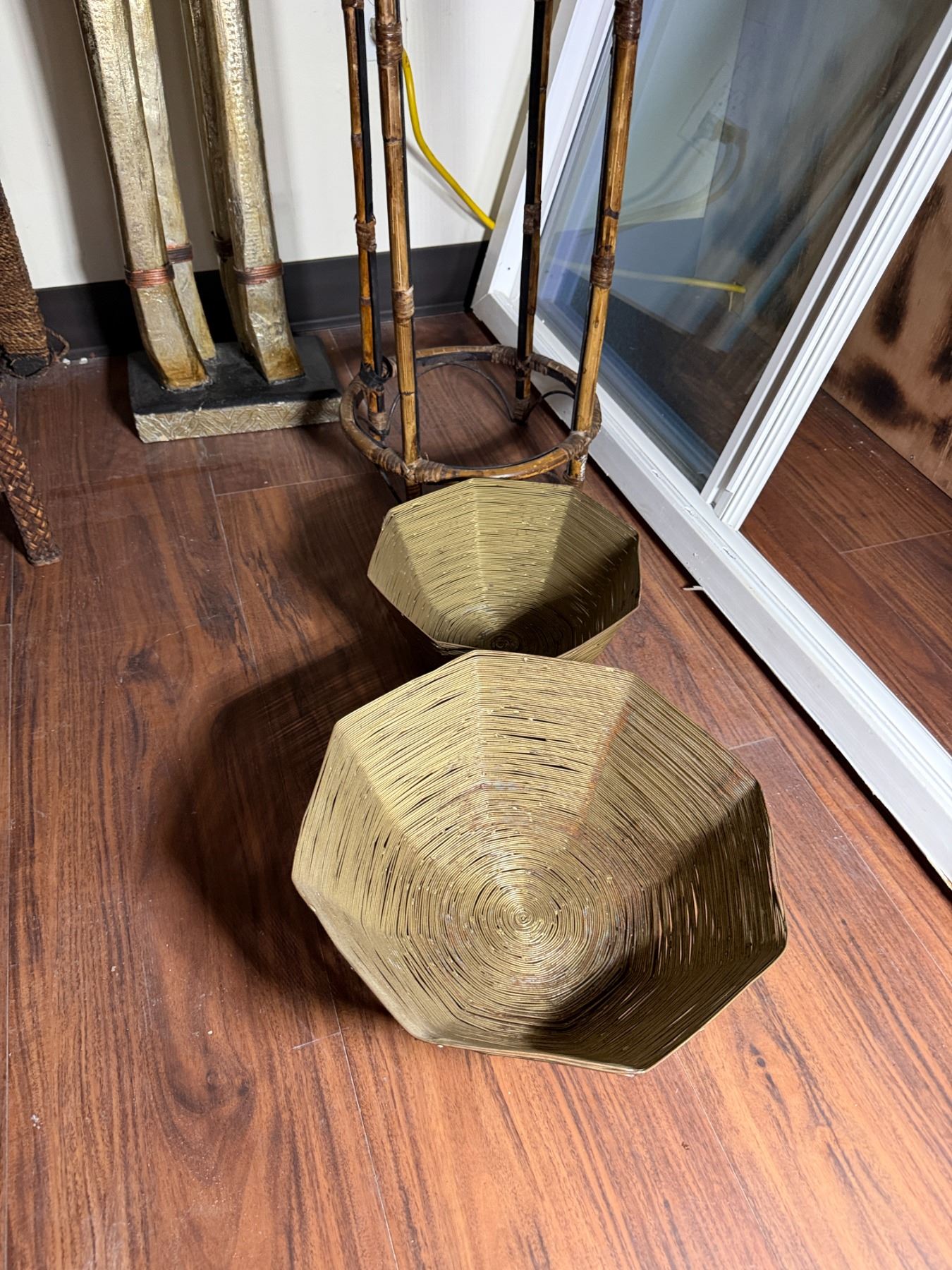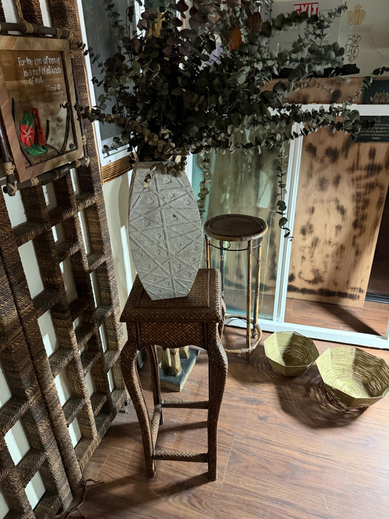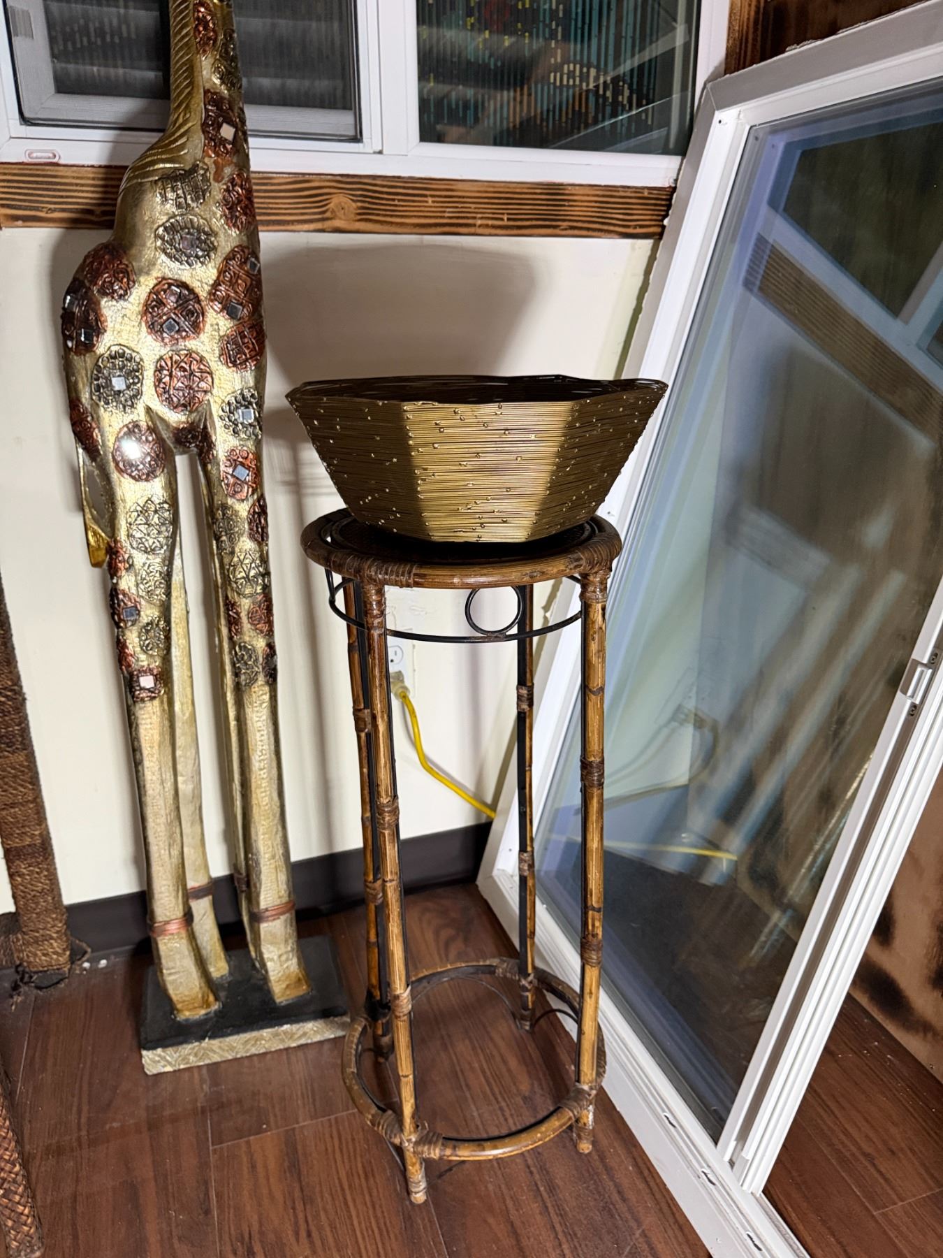 Lot 111 Qty 2 Plant Stands, Artificial Potted Plant, Bowl & Giraffe Statue, Misc Sizes