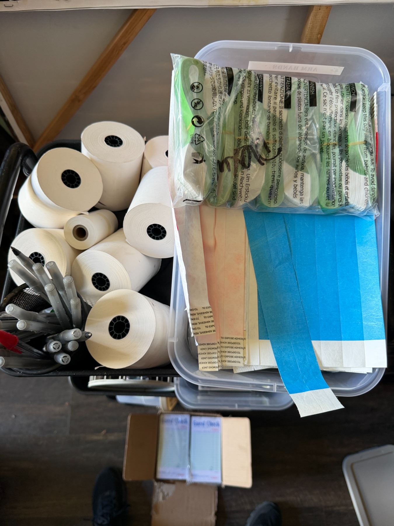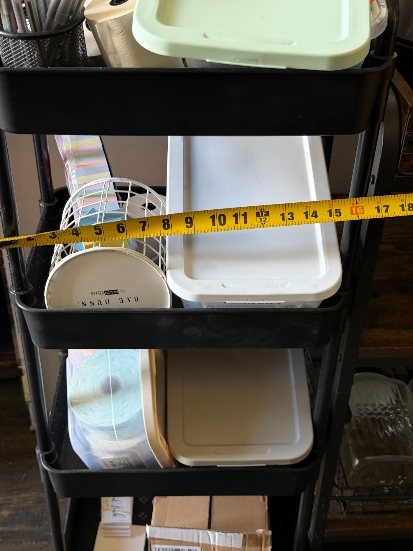 Lot 126 Qty 3 Shelving Units Misc Sizes & Contents: Baskets, Anvil Bucket Fermenter, Cards, Paper Rolls, etc