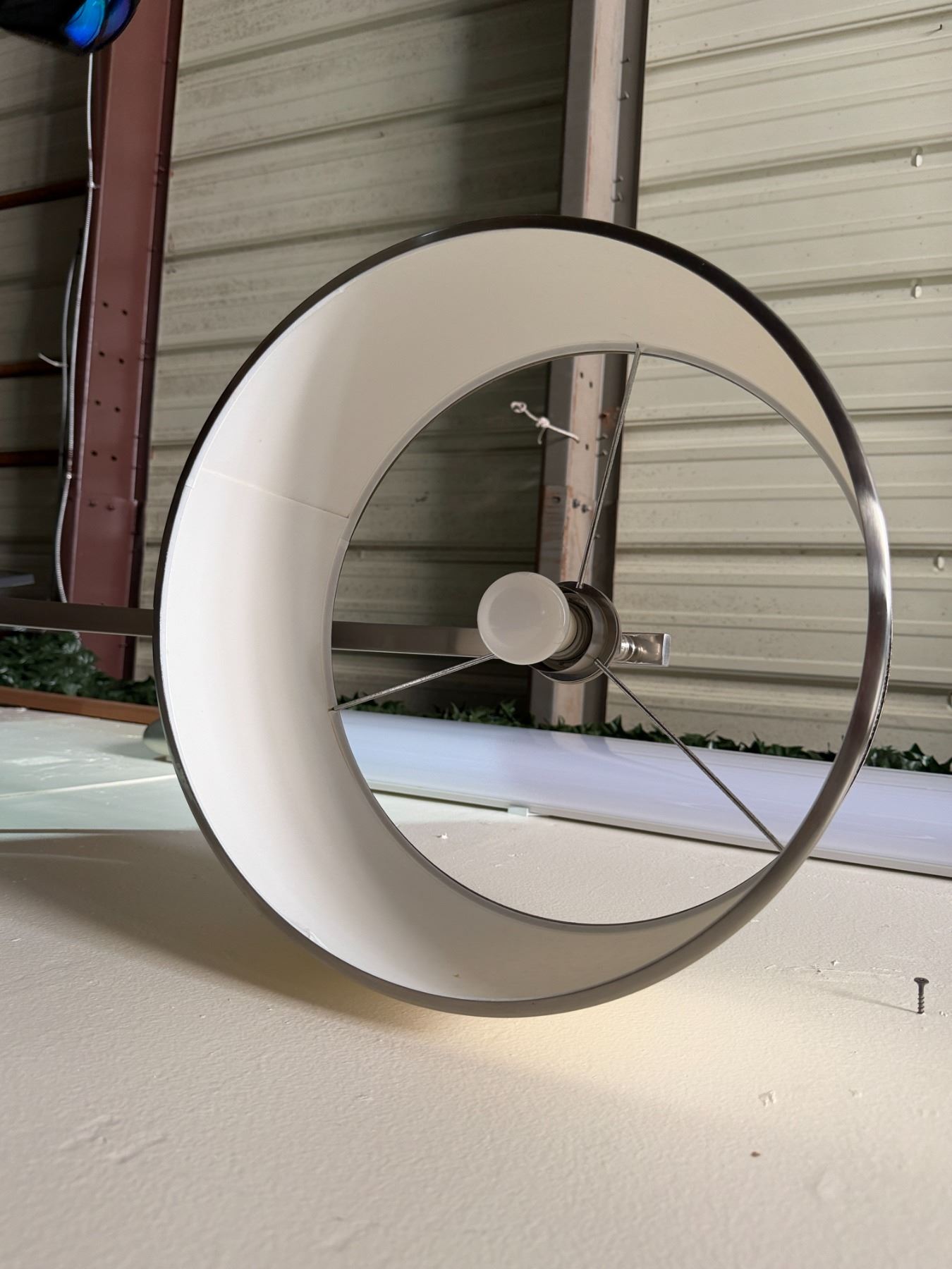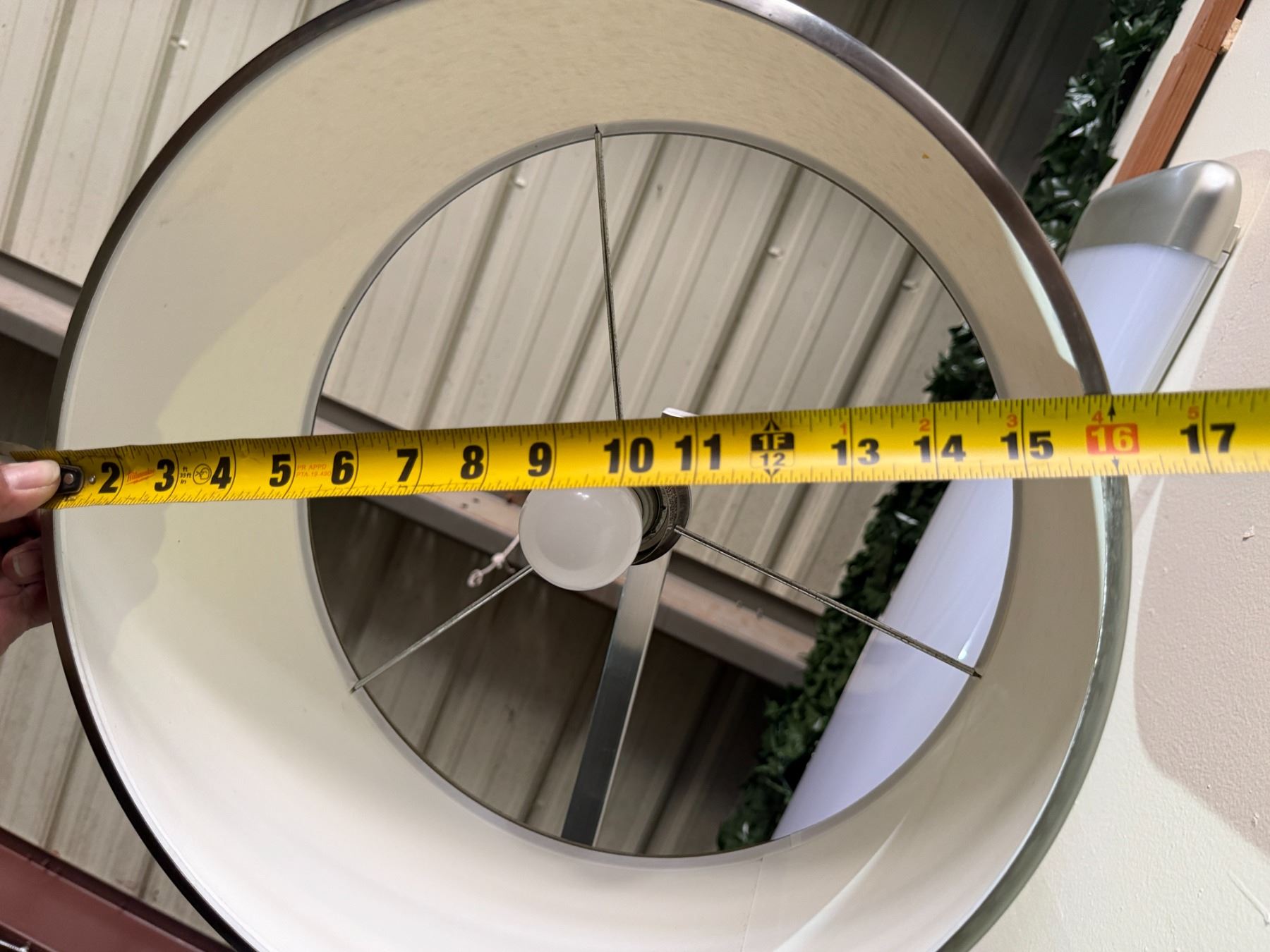 Lot 135 Metal Curved Arc Floor Lamp w/ Drum Shade on Wooden Base 16" Dia, 72"H