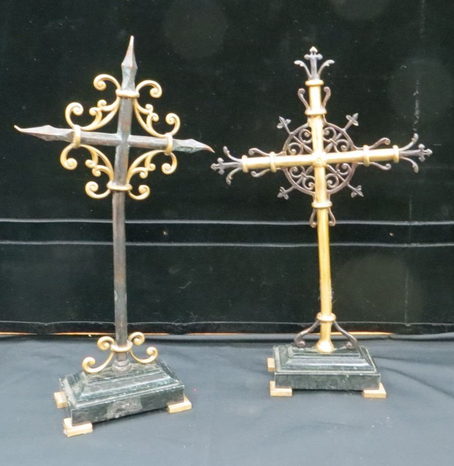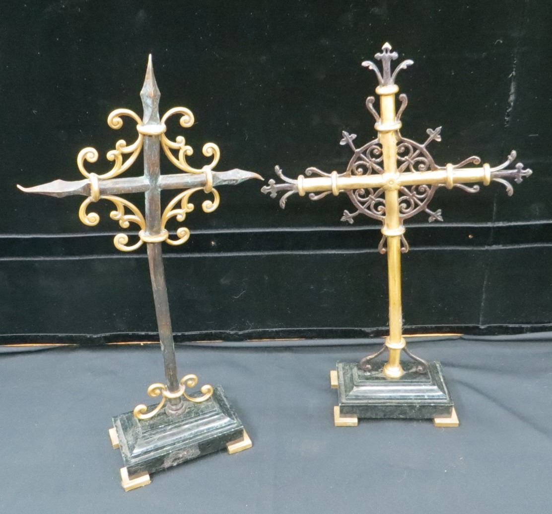 Lot 12 2 Maitland-Smith Vintage Hand Made Brass & Iron Crosses 16" Tall