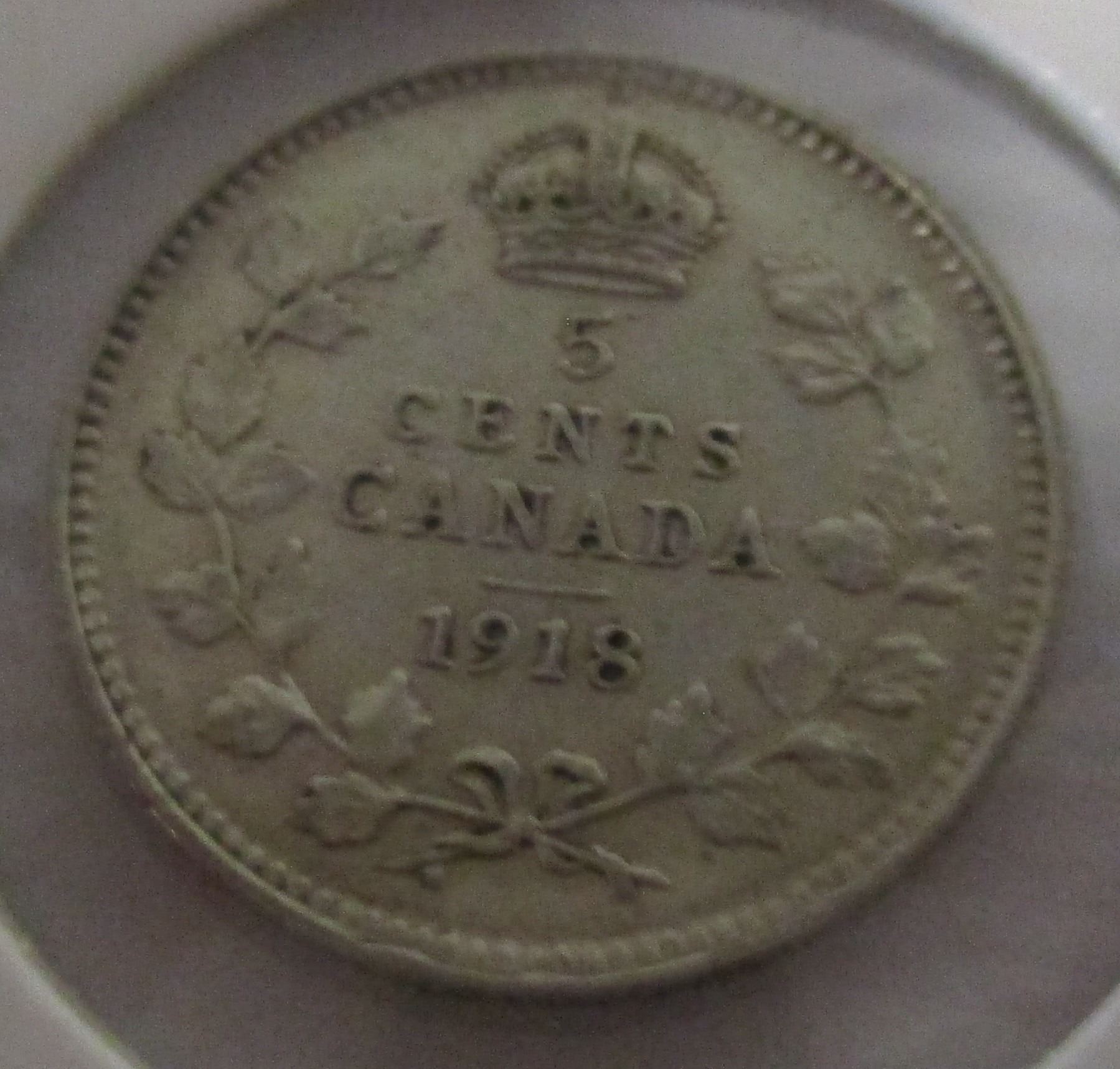 Lot 12 1918 CANADA KING GEORGE V SILVER FIVE CENT
