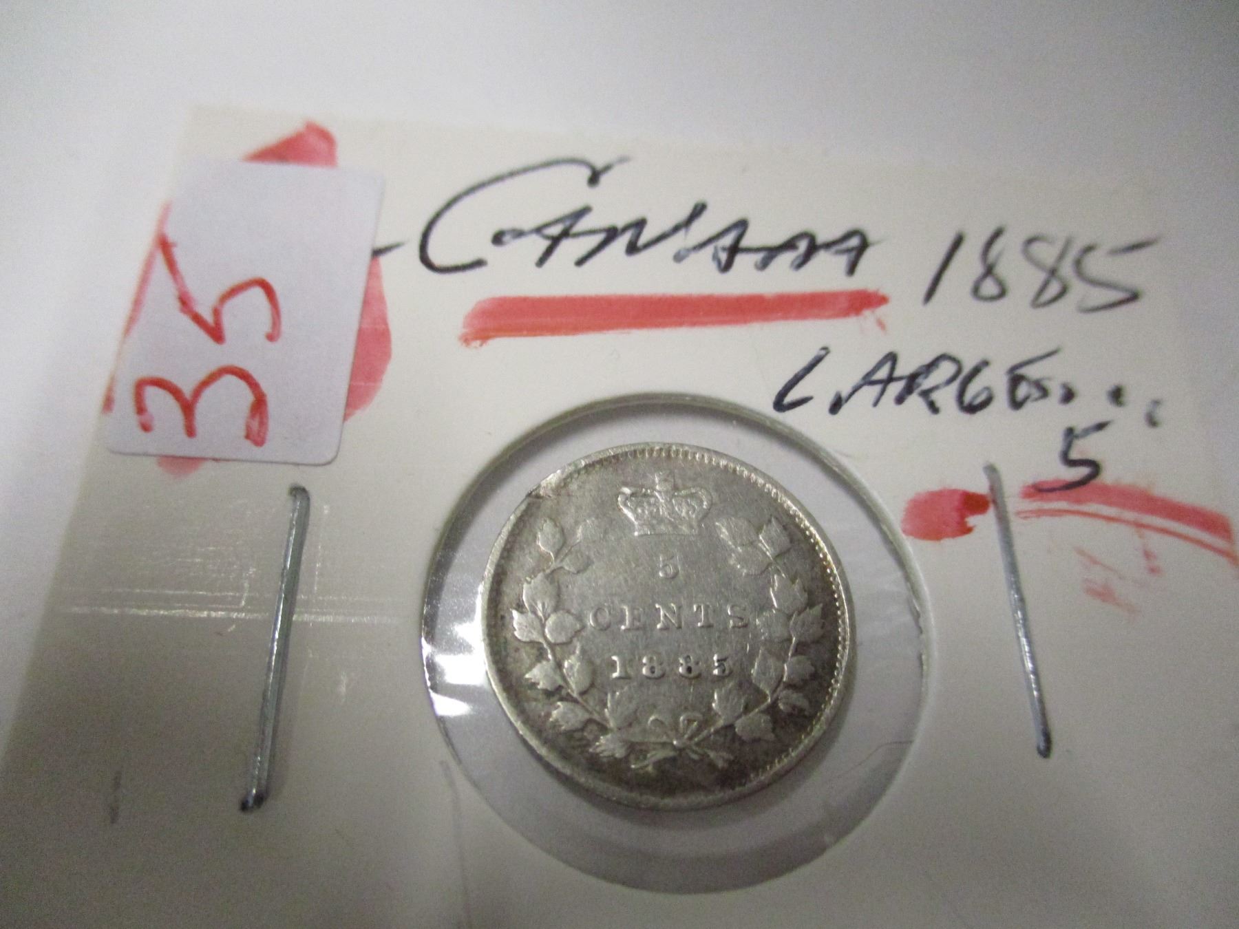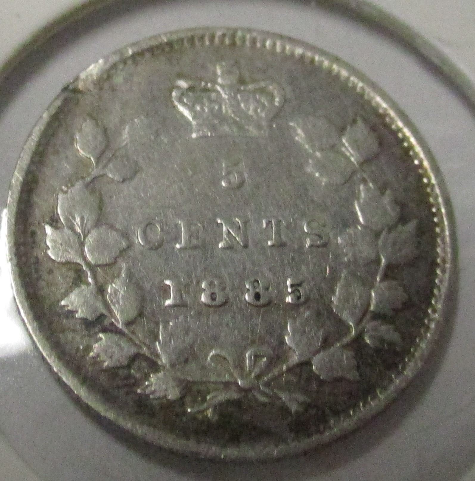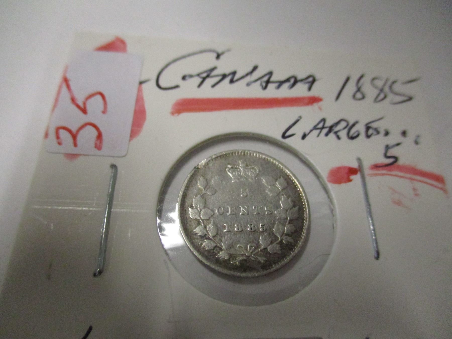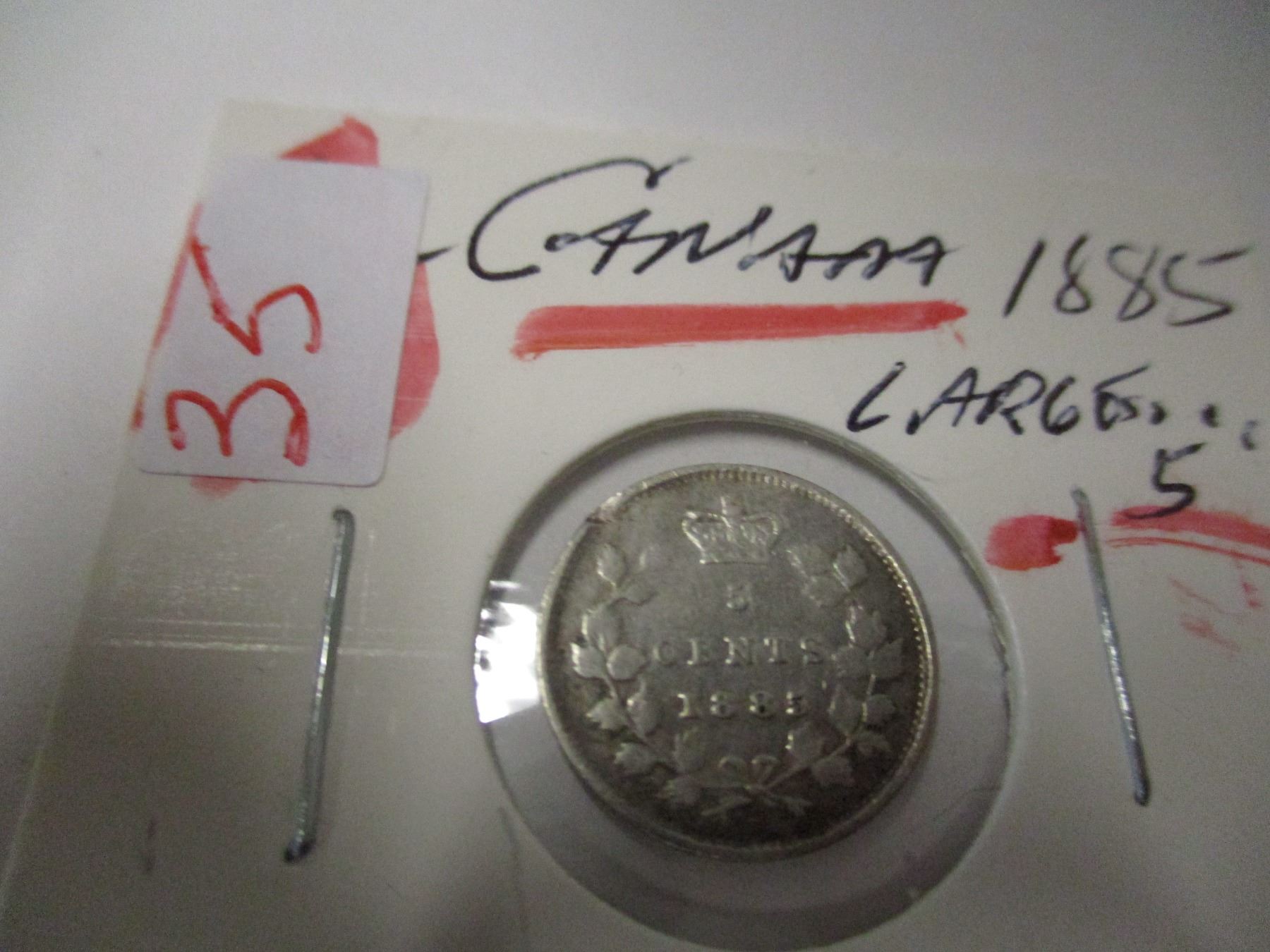 Lot 35 1885 (LARGE 5) CANADA VICTORIAN SILVER FIVE CENT