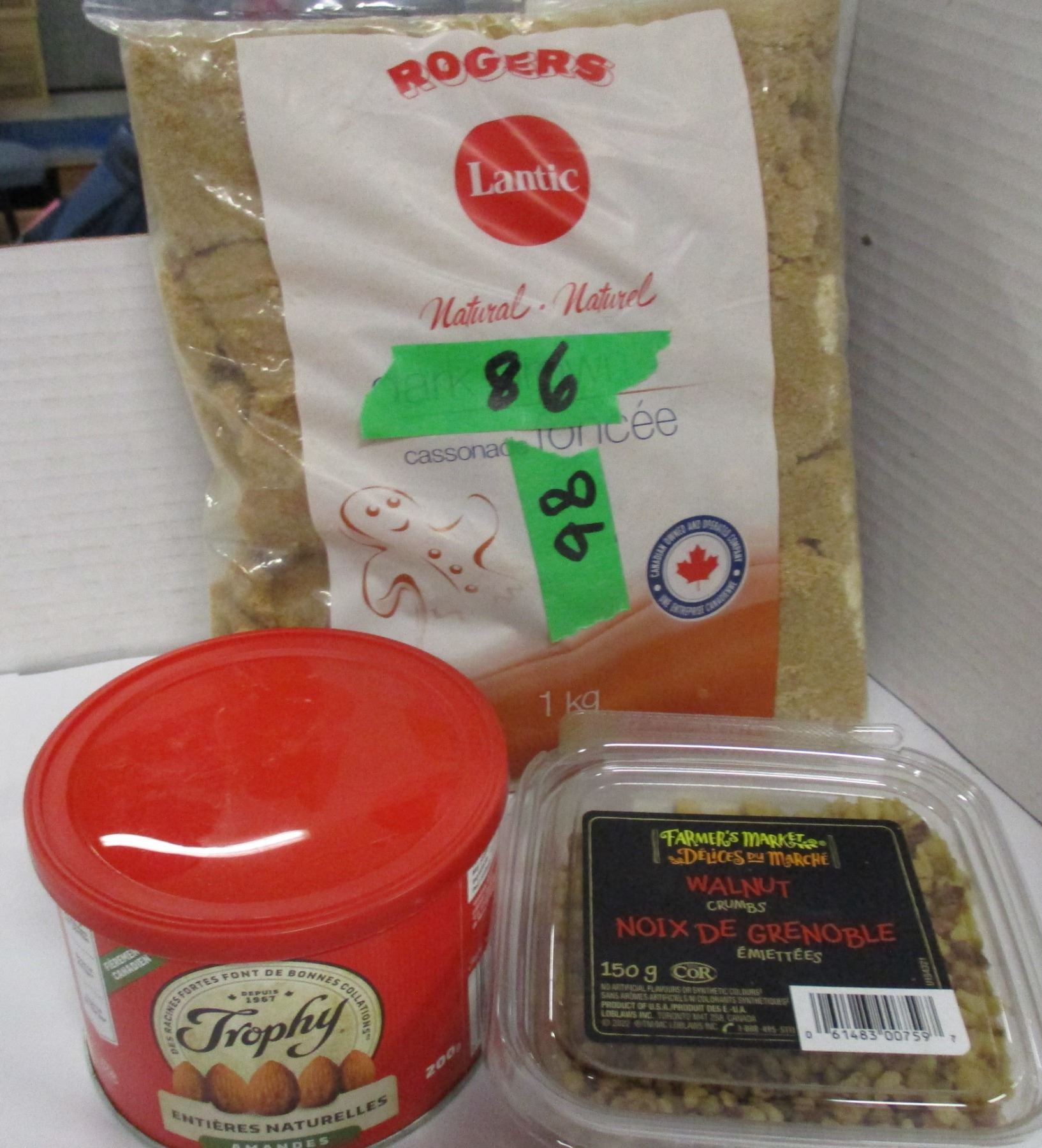 SHELF PULLS (AS IS): WALNUTS (150G), ALMOND NUTS (200G), BROWN SUGAR (HARD) (1 KG)
