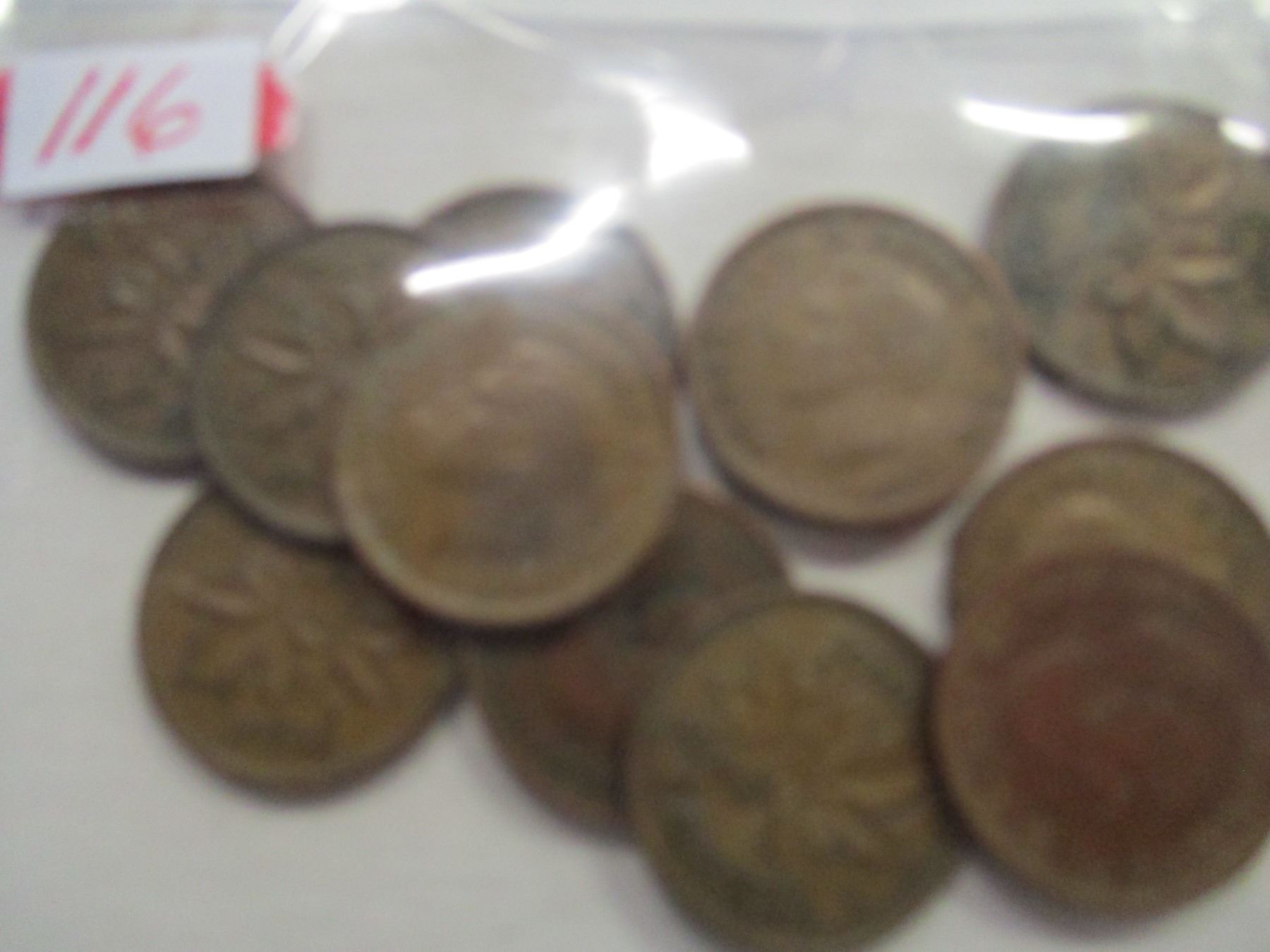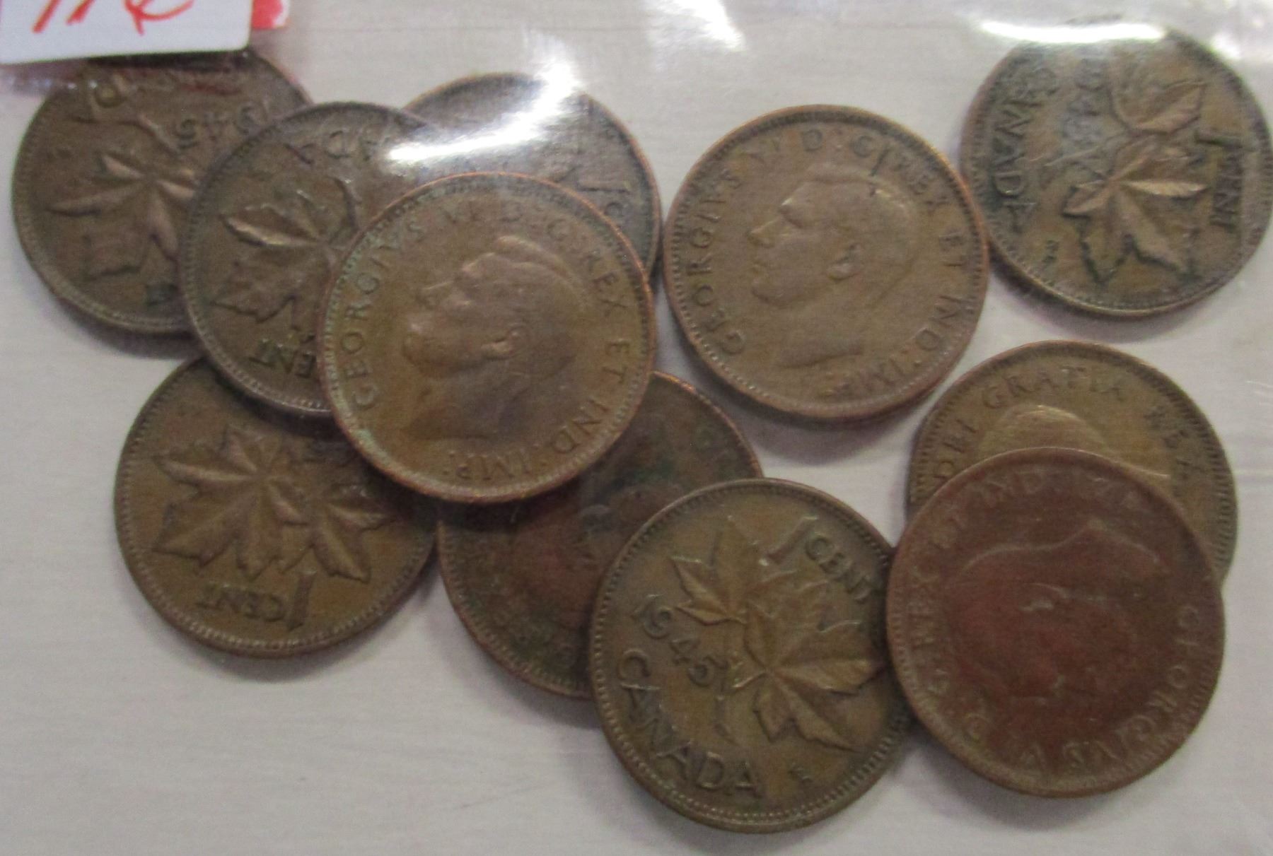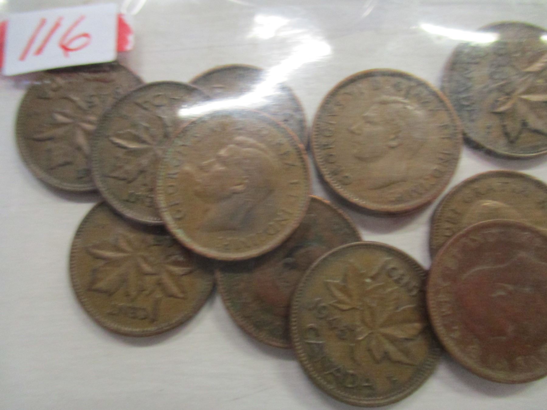 Lot 116 LOT OF 12 LAST OF CANADA KING GEORGE VI MIXED DATE PENNIES