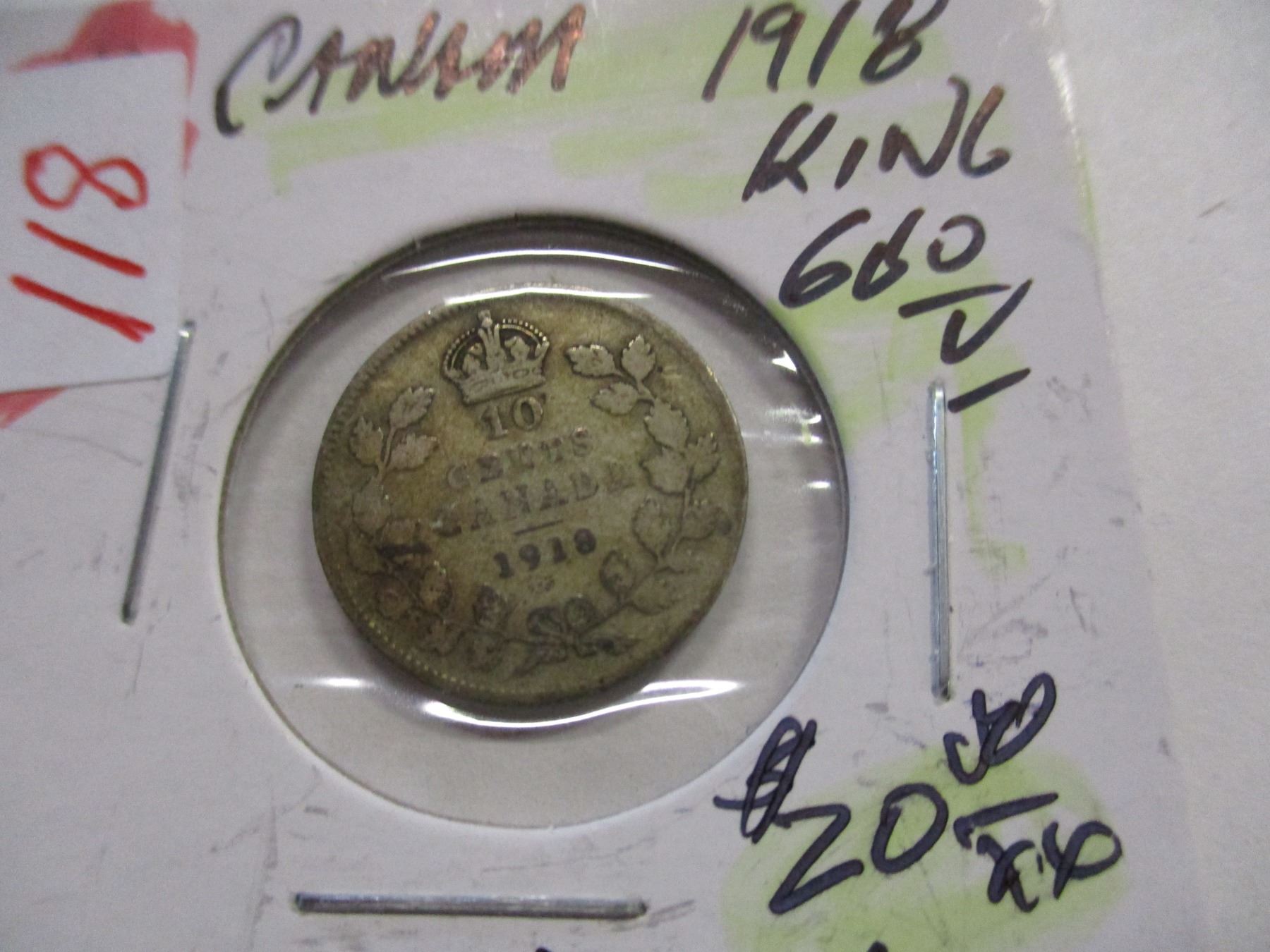 Lot 118 1918 CANADA KING GEORGE V SILVER DIME
