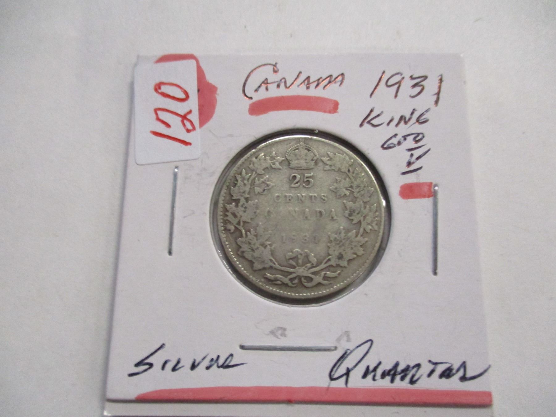 Lot 120 1931 CANADA KING GEORGE V SILVER QUARTER