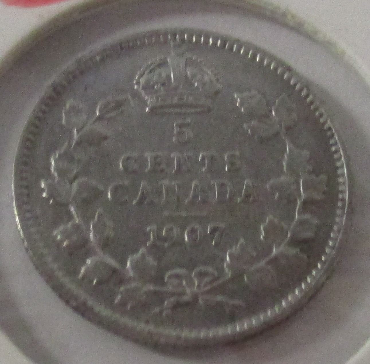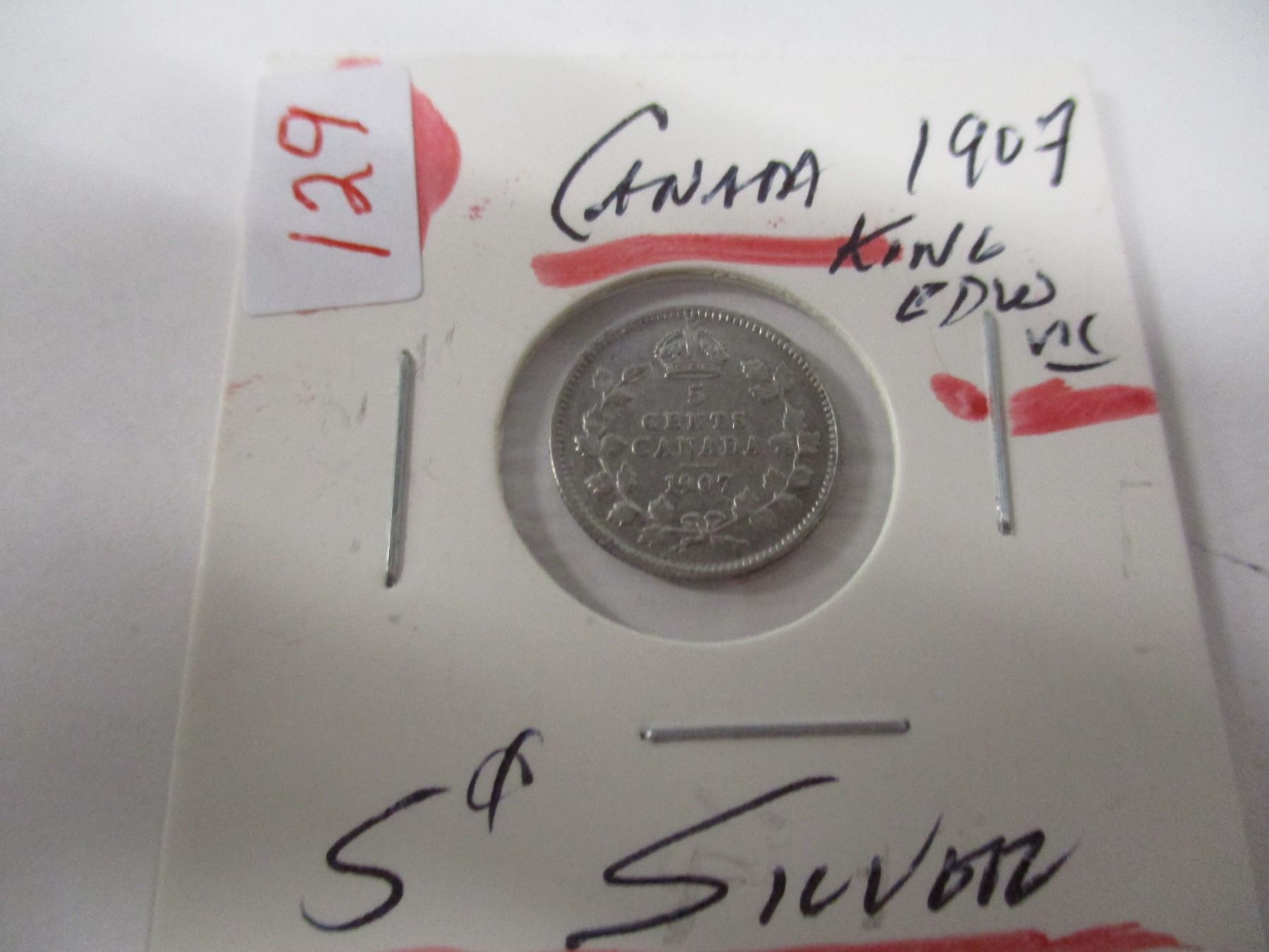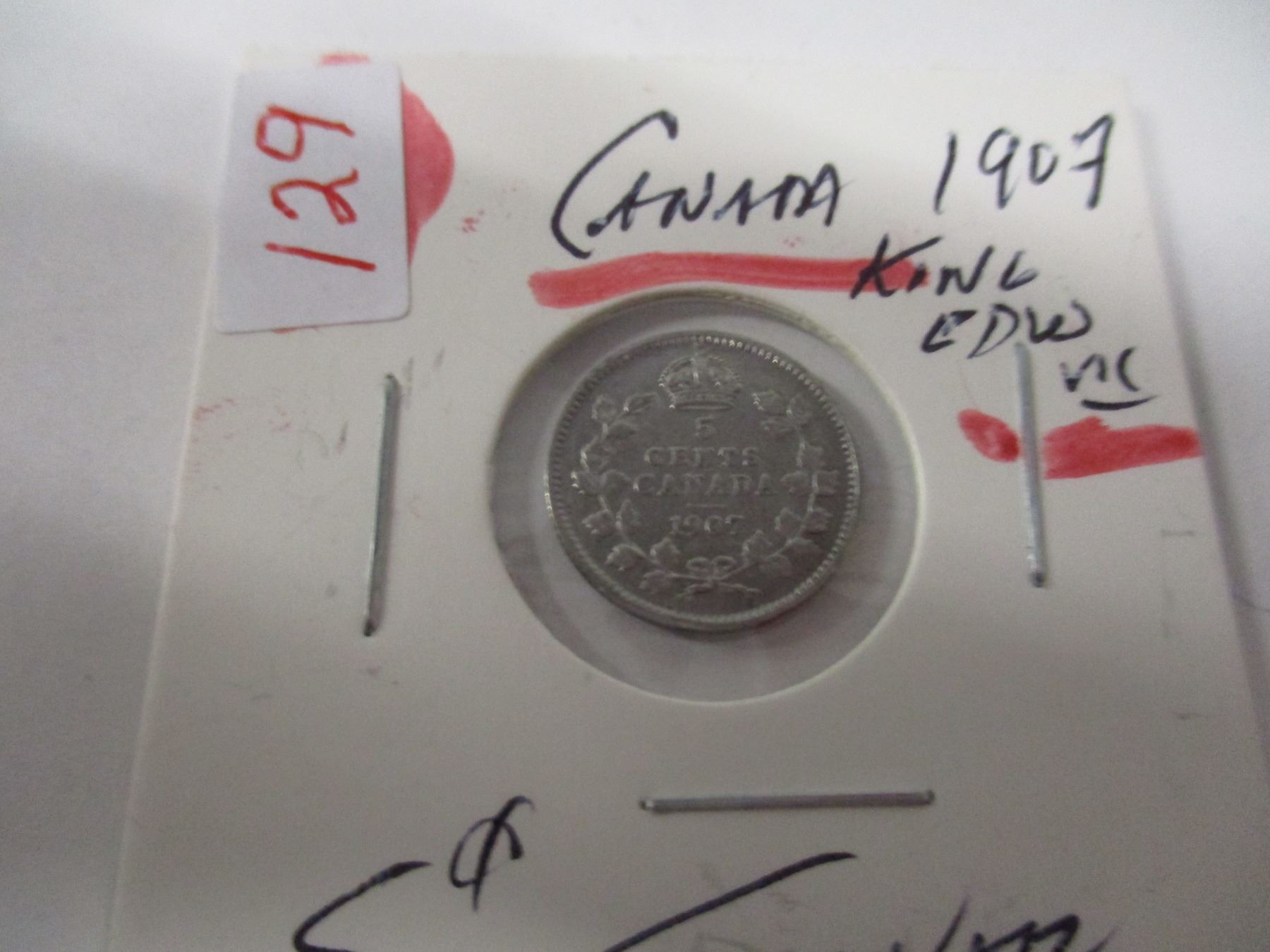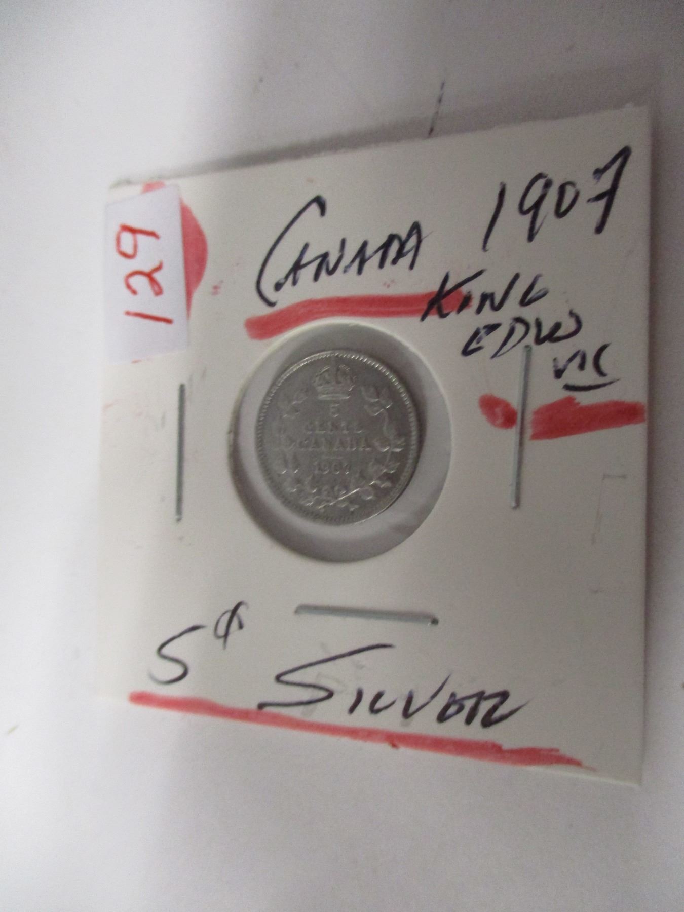 Lot 129 1907 CANADA KING EDWARD VII SILVER FIVE CENT