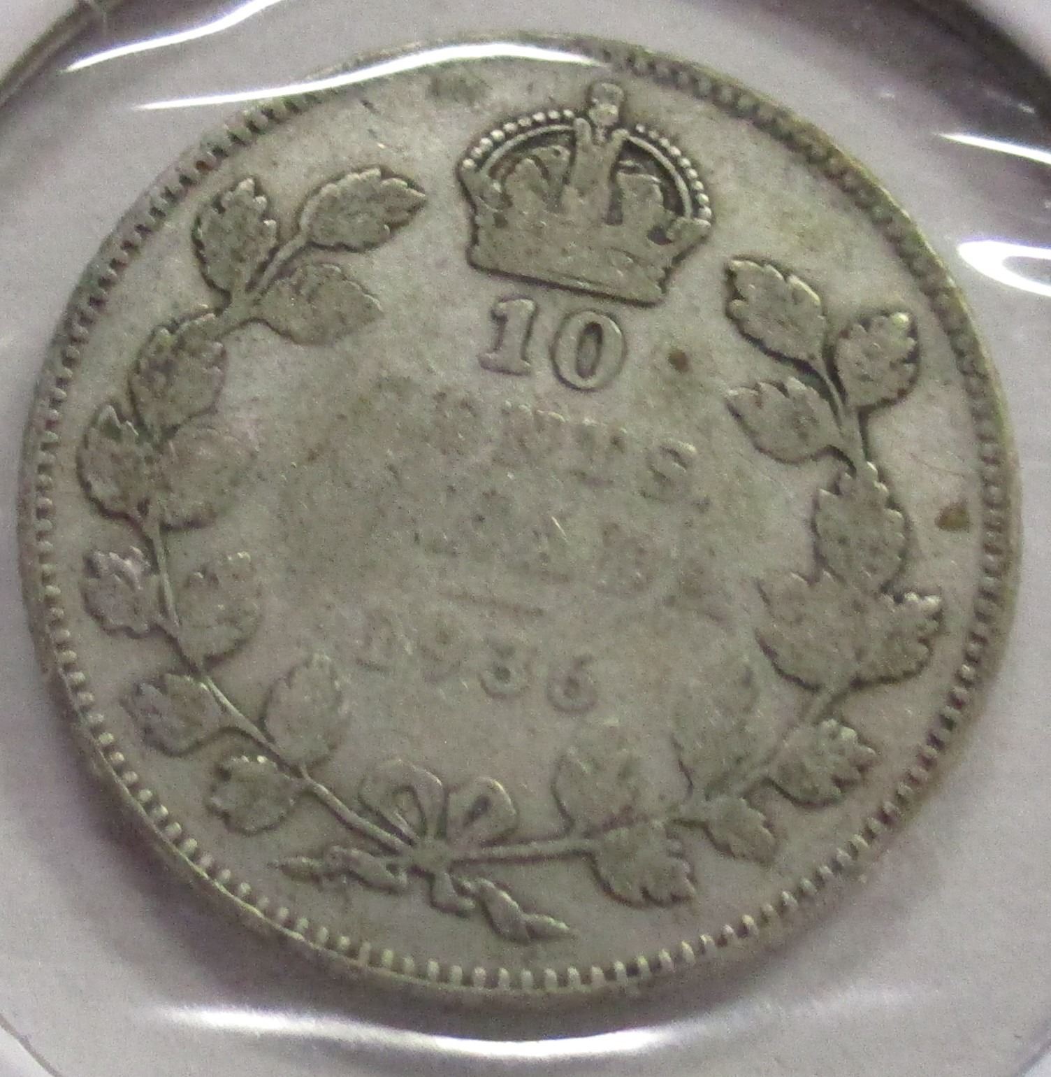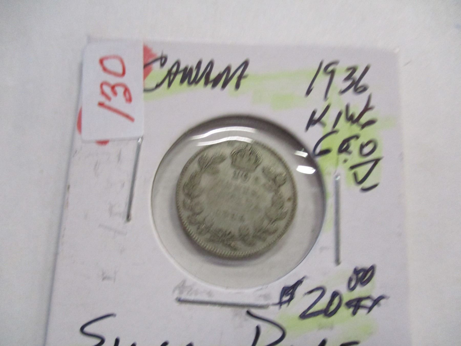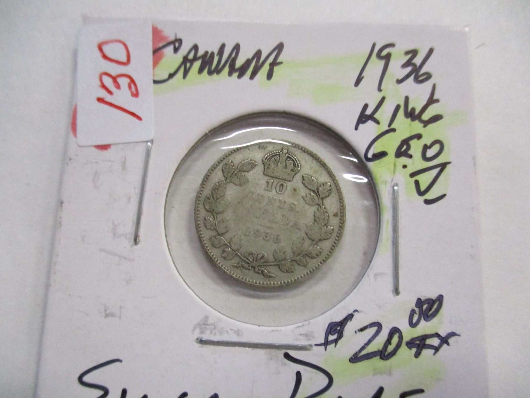 Lot 130 1936 CANADA KING GEORGE V SILVER DIME