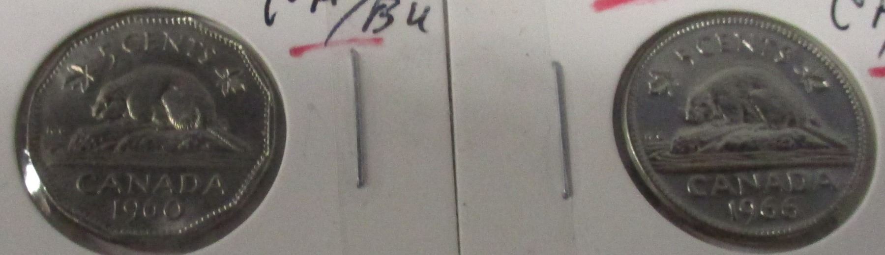 Lot 136 1960 CH/BU (12 SIDED) & 1966 CH/BU SMOOTH SIDE CANADA NICKELS