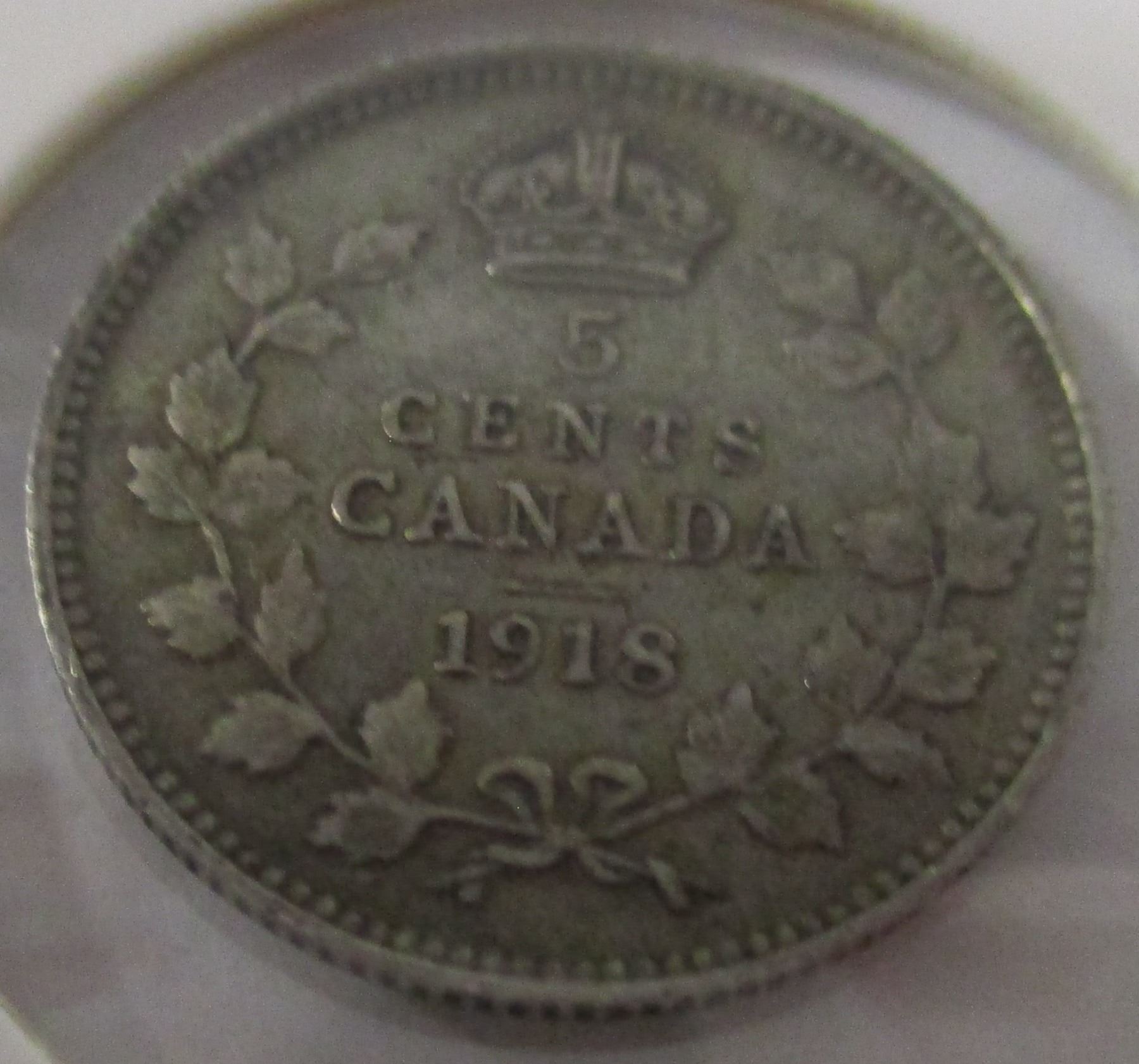 Lot 146 1918 CANADA KING GEORGE V SILVER FIVE CENT