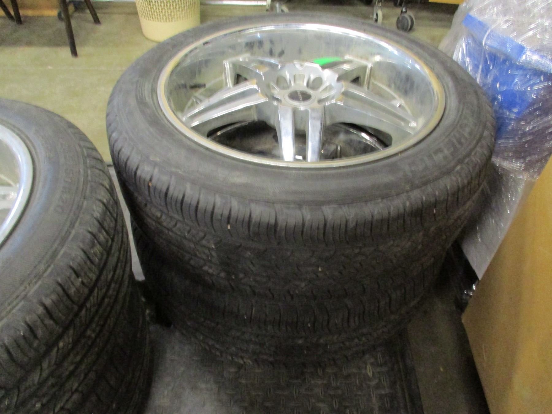 4 - MICHELIN P245-50R20 TIRES (90% TREAD LEFT) ON 4 - 5 BOLT HOLE ALUMINUM RIMS