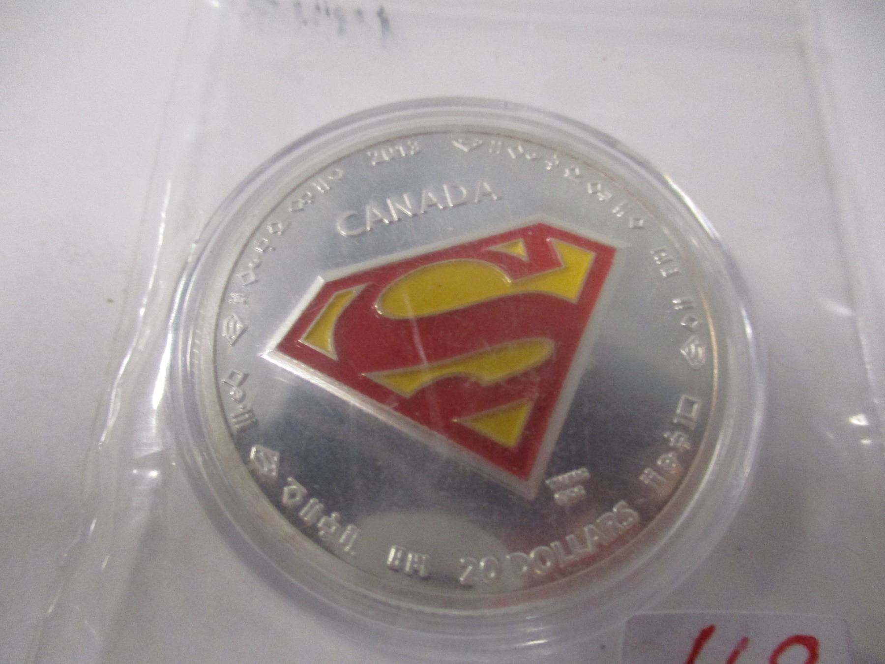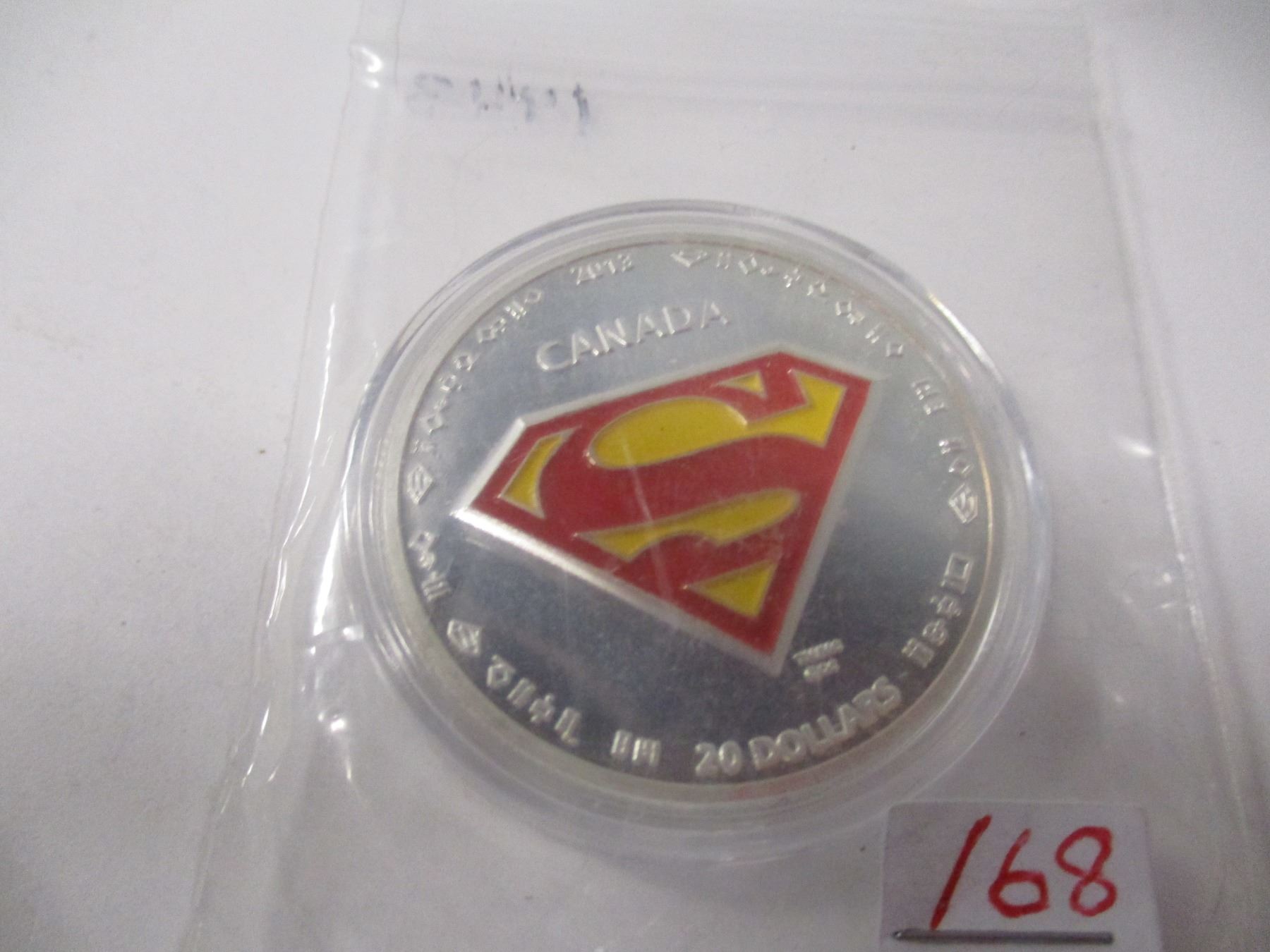 Lot 168 2013 $20 SILVER SUPERMAN COIN (SELLING AS IS - SILVER CONTENT NOT VERIFIED - NOT TESTED)