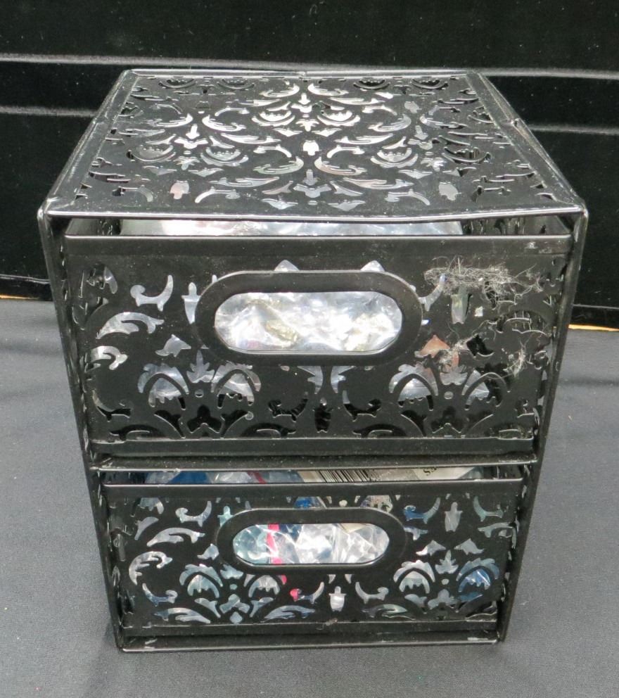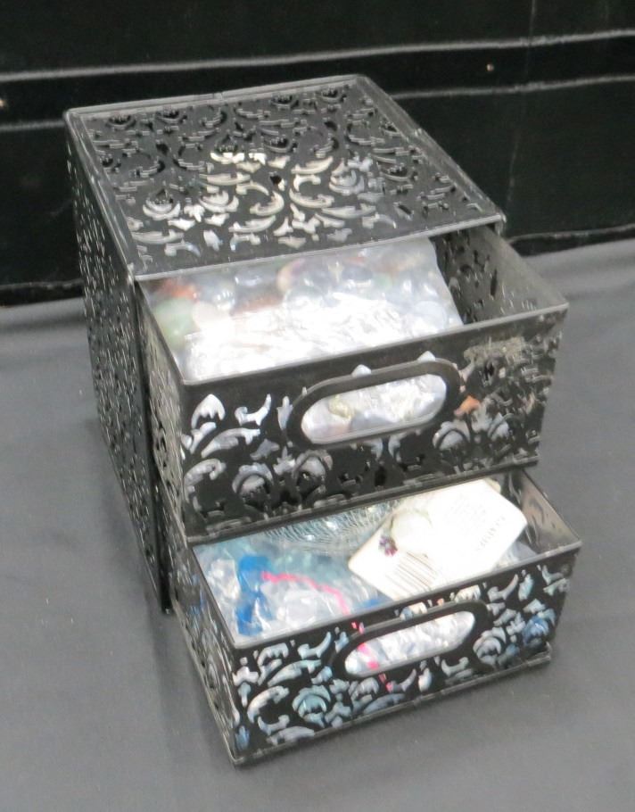 Lot 23 2 Drawer Metal Organizer 8" tall x 6.5" wide With Crafting Glass Pebbles and Acrylic Ice rocks