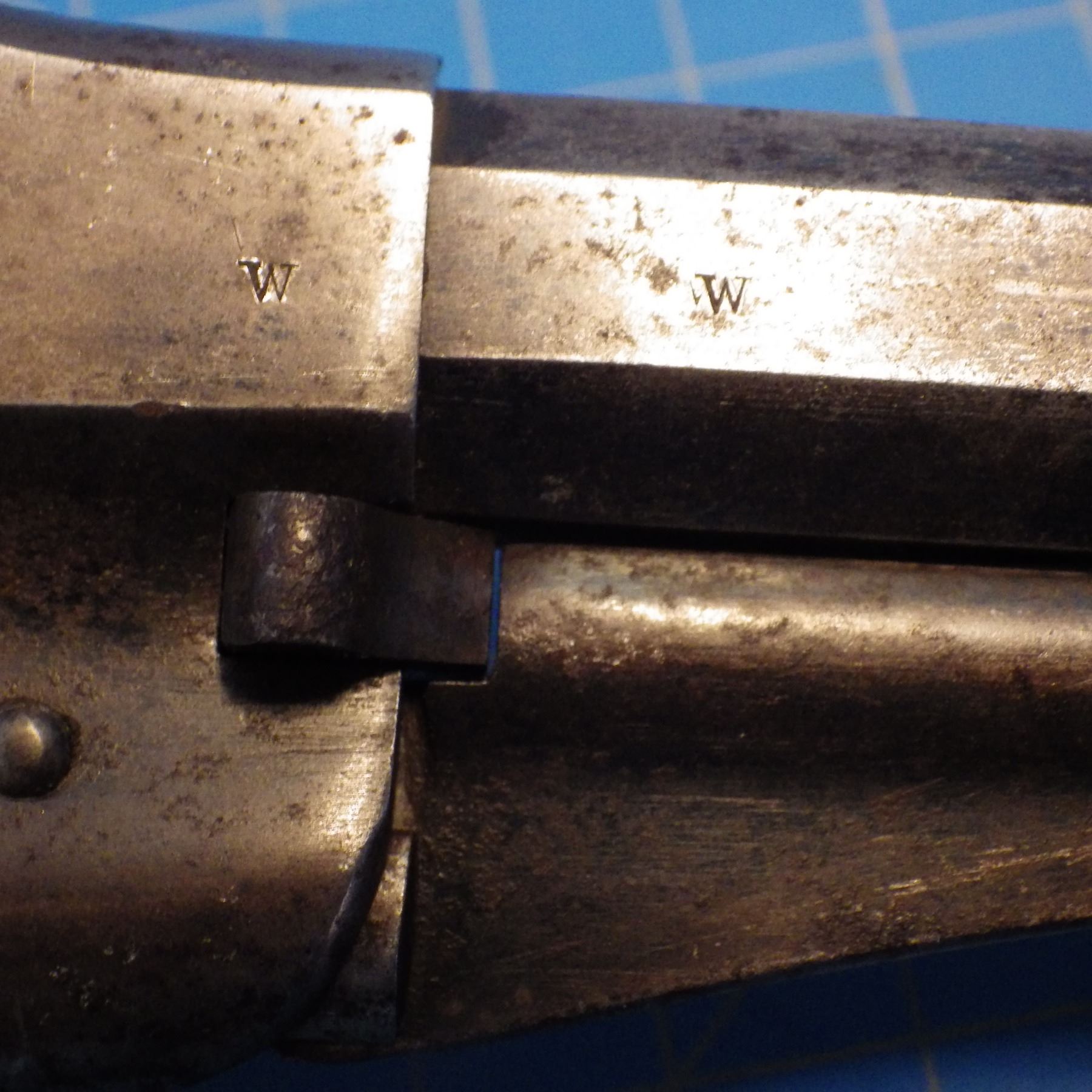 - "NEW - MODEL" or "NEW MODEL" is marked on the barrel below the manufacturer's designation. Examples exist with no model markings.