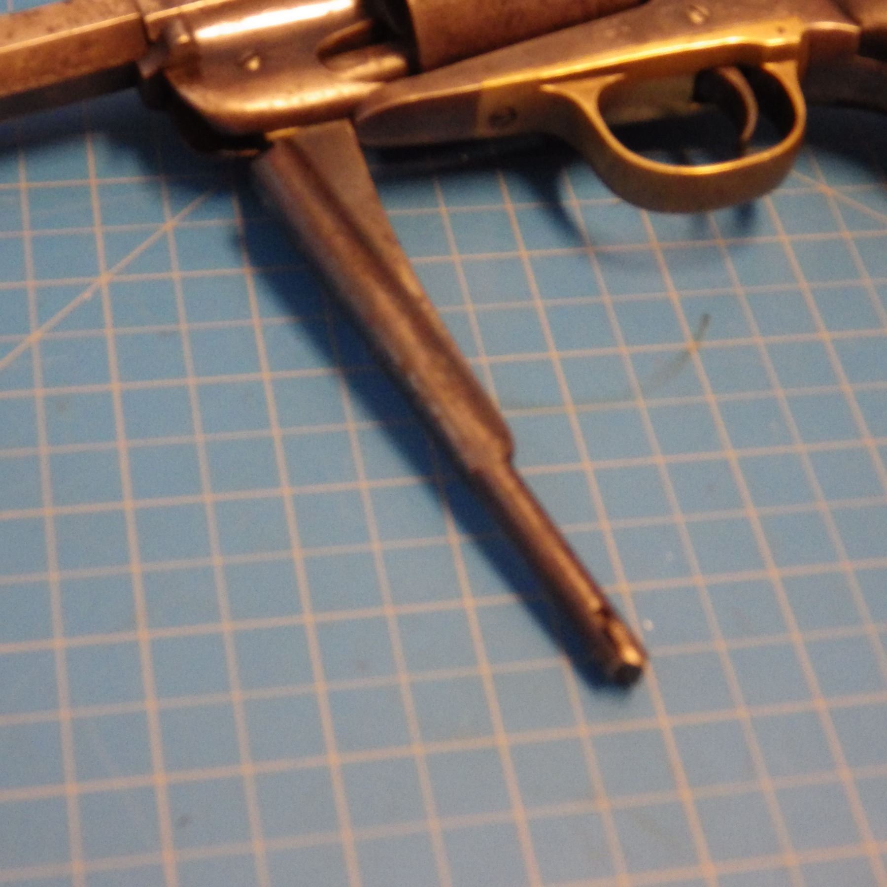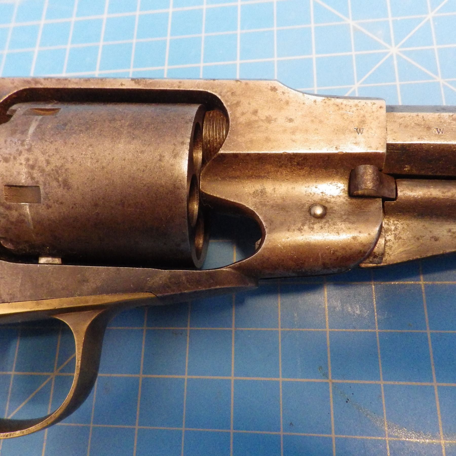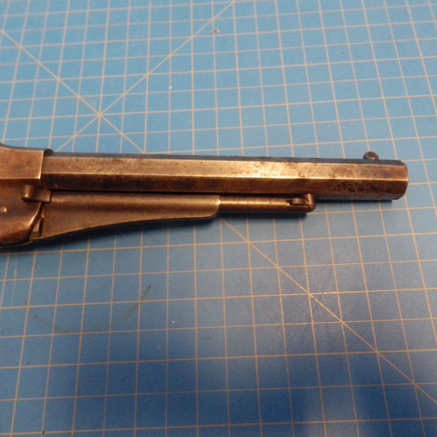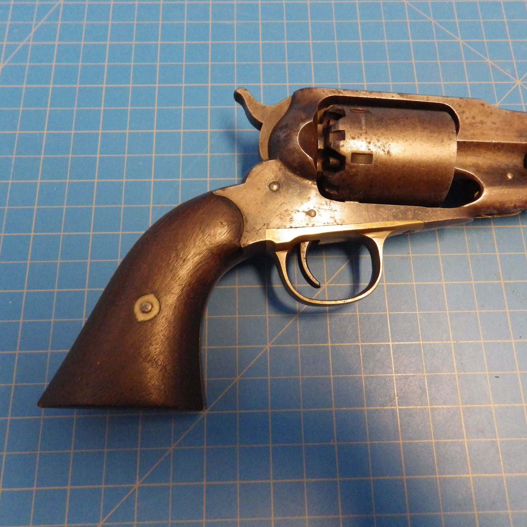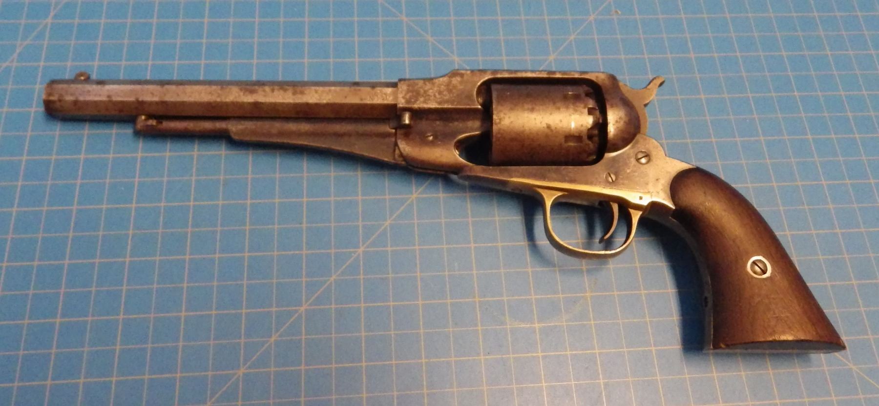 ANTIQUE PISTOL: Make: Remington , Model: New Model Army , 6 shot revolver , 44 PERCUSSION , 203 mm barrel , stamped " N.J. " on left side of barrel , ( New Jersey Civil War Era ??? ), SERIAL # 71413