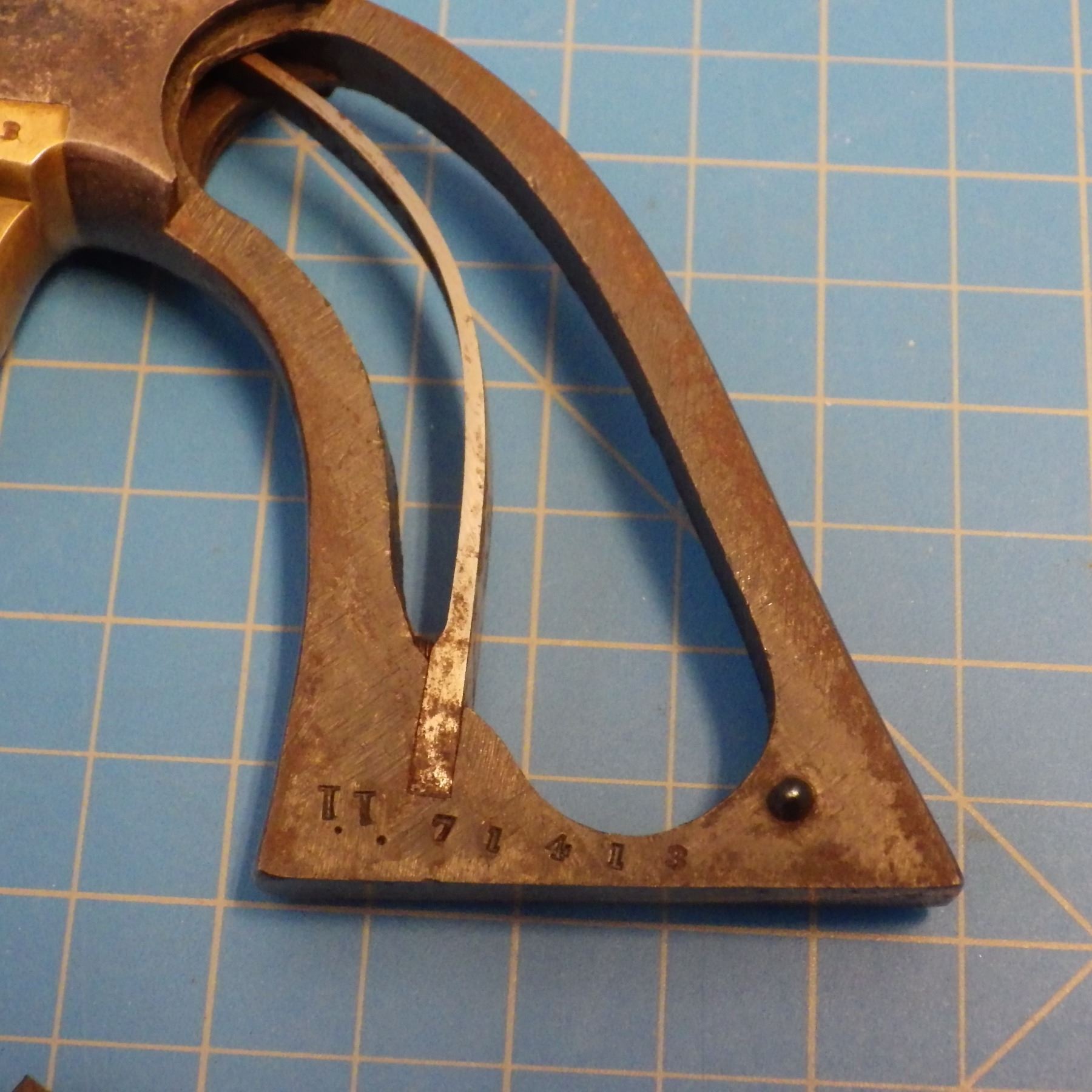 - serial number is marked on the left grip frame under the grip panel and is repeated on the bottom of the barrel.